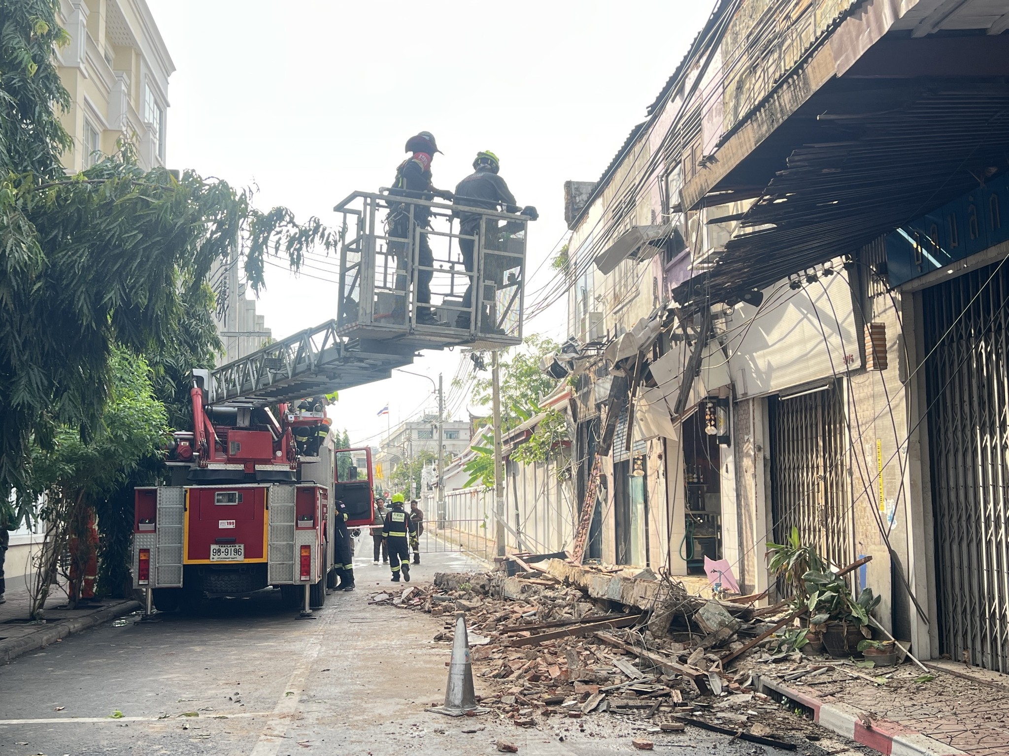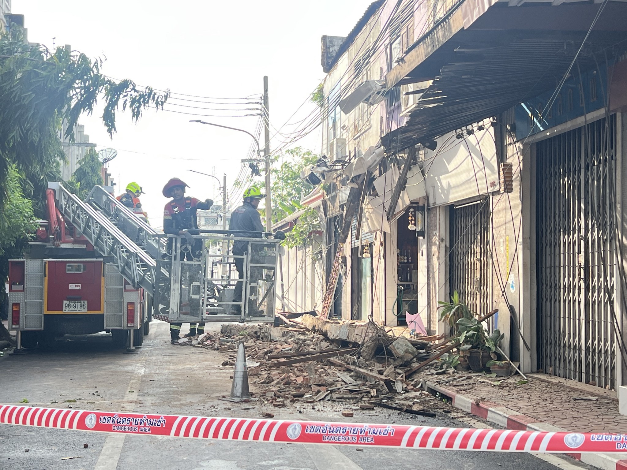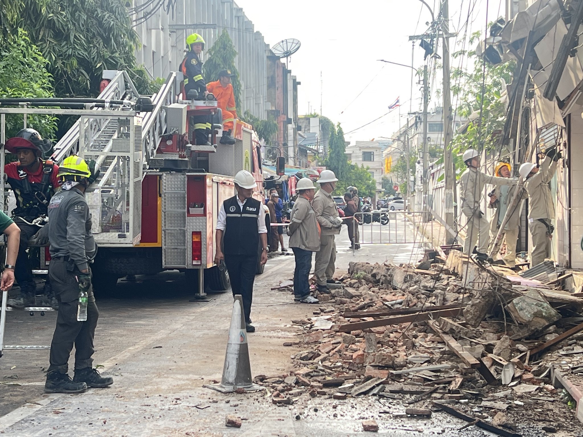 ผู้ว่าฯ ชัชชาติ กล่าวว่า สถานการณ์ล่าสุดของกันสาดอาคารทรุด เมื่อเวลาประมาณ 13.40 น. พบว่ามีผู้ติดอยู่ในอาคาร 5 คน แต่สามารถนำออกมาได้หมดแล้ว และตัดกระแสไฟภายในอาคารเรียบร้อย จากข้อมูลทราบว่ามีเศษอิฐหล่นลงมาตั้งแต่เมื่อคืน ซึ่งเหตุการณ์ดังกล่าวโชคดีมากที่ไม่มีประชาชนสัญจรอยู่ด้านล่าง
