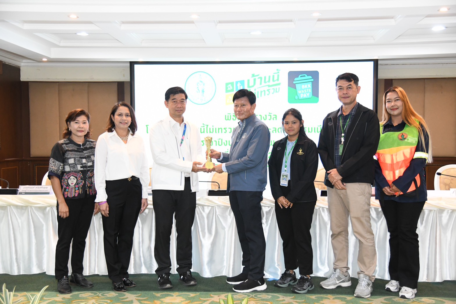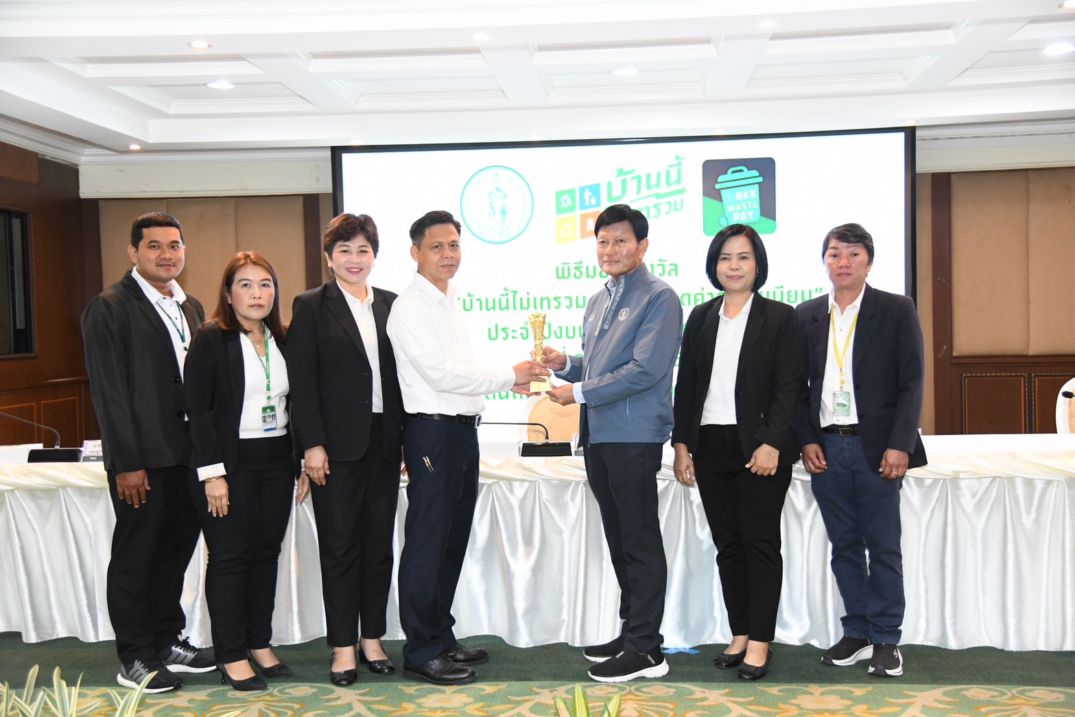 (2 ต.ค.68) เวลา 08.15 น. นายจักกพันธุ์ ผิวงาม รองผู้ว่าราชการกรุงเทพมหานคร เป็นประธานมอบโล่รางวัลโครงการ “บ้านนี้ไม่เทรวม : แยกขยะลดค่าธรรมเนียม” ดีเด่น ประจำปีงบประมาณ พ.ศ. 2568 ซึ่งกรุงเทพมหานคร โดยสำนักสิ่งแวดล้อม จัดขึ้น เพื่อสร้างความภาคภูมิใจและเป็นขวัญกำลังใจที่ทุ่มเทปฏิบัติหน้าที่ของสำนักงานเขตในการสื่อสารและลงพื้นที่สร้างความรู้ความเข้าใจให้กับประชาชนอย่างต่อเนื่อง โดยมี นายณรงค์ เรืองศรี ปลัดกรุงเทพมหานคร นายพรพรหม วิกิตเศรษฐ์ ที่ปรึกษาของผู้ว่าราชการกรุงเทพมหานคร และผู้บริหารด้านความยั่งยืนของกรุงเทพมหานคร ผู้บริหารกรุงเทพมหานคร ผู้บริหารสำนักสิ่งแวดล้อม และผู้ที่เกี่ยวข้อง ร่วมพิธี ณ ห้องรัตนโกสินทร์ ศาลาว่าการกทม. (เสาชิงช้า) เขตพระนคร