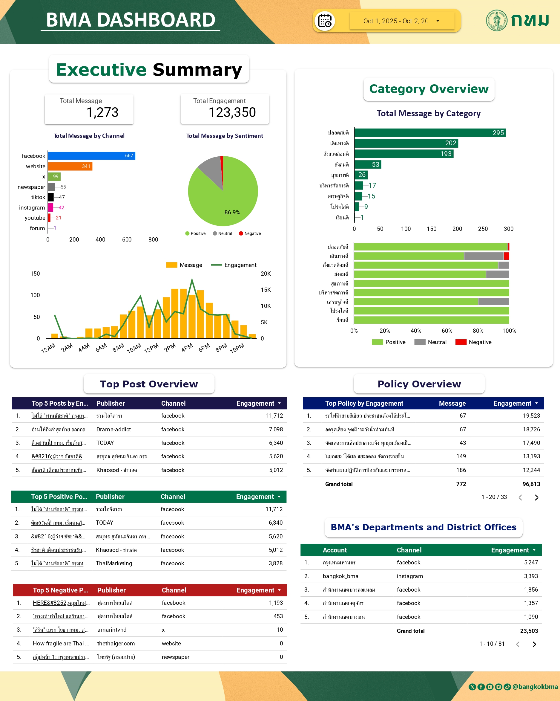 ภาพรวมการกล่าวถึงกรุงเทพมหานครในสื่อออนไลน์ วันที่ 2 ต.ค. 68