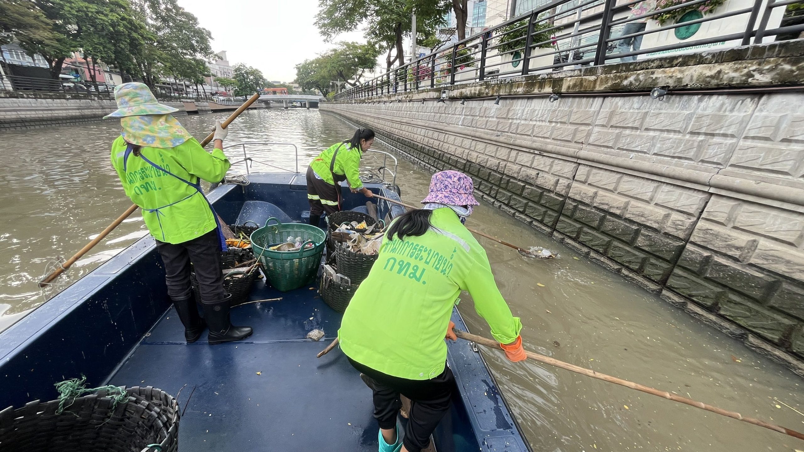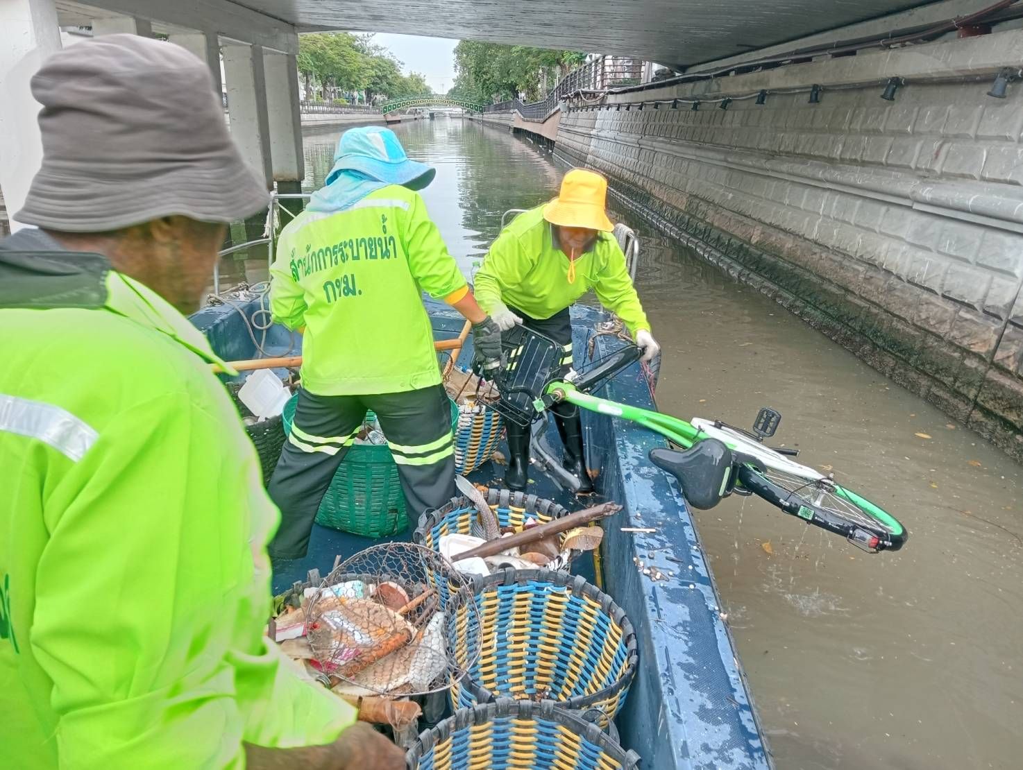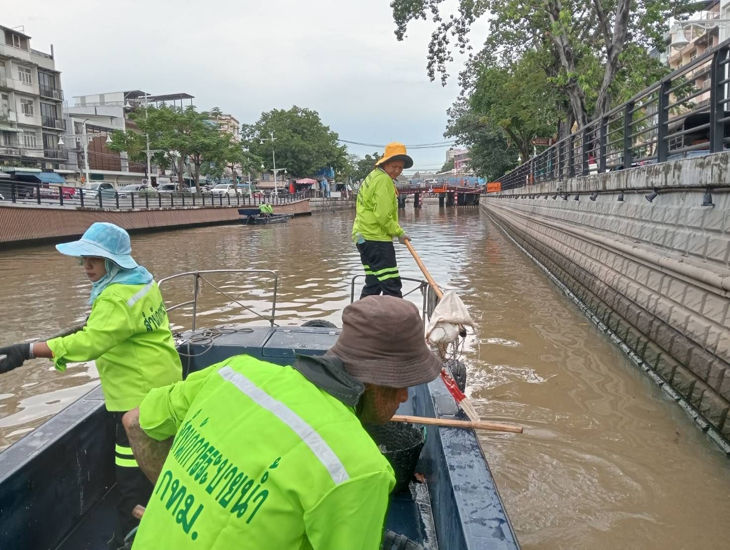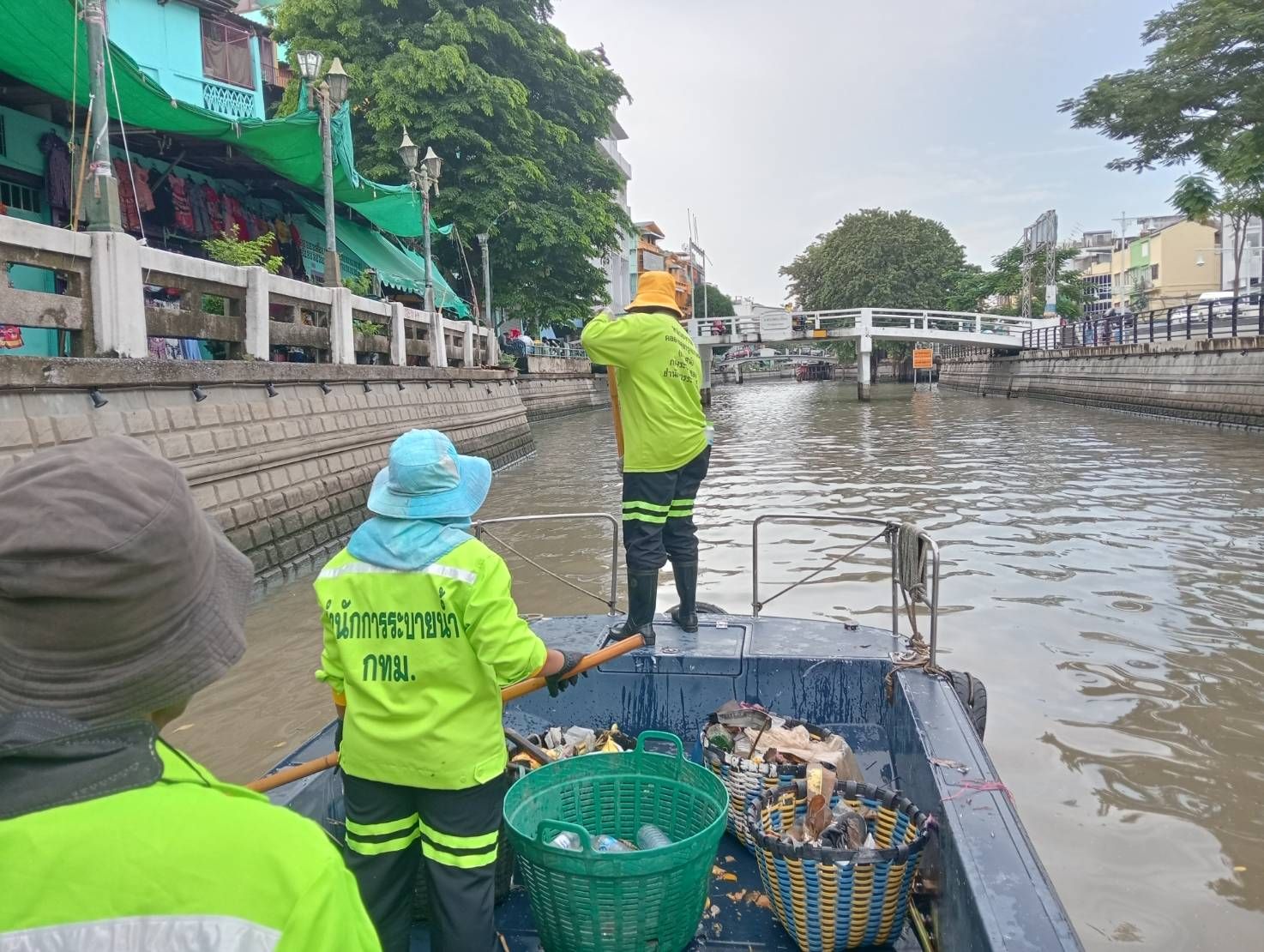 เจ้าหน้าที่ เก็บขยะและวัชพืชเก็บจาก ปตร. เทเวศร์ตลอดช่วงสะพานมัฆวานถึงสี่แยกมหานาค พื้นที่เขตดุสิตเขต เขตพระนคร เขตป้อมปราบศรัตรูพ่าย