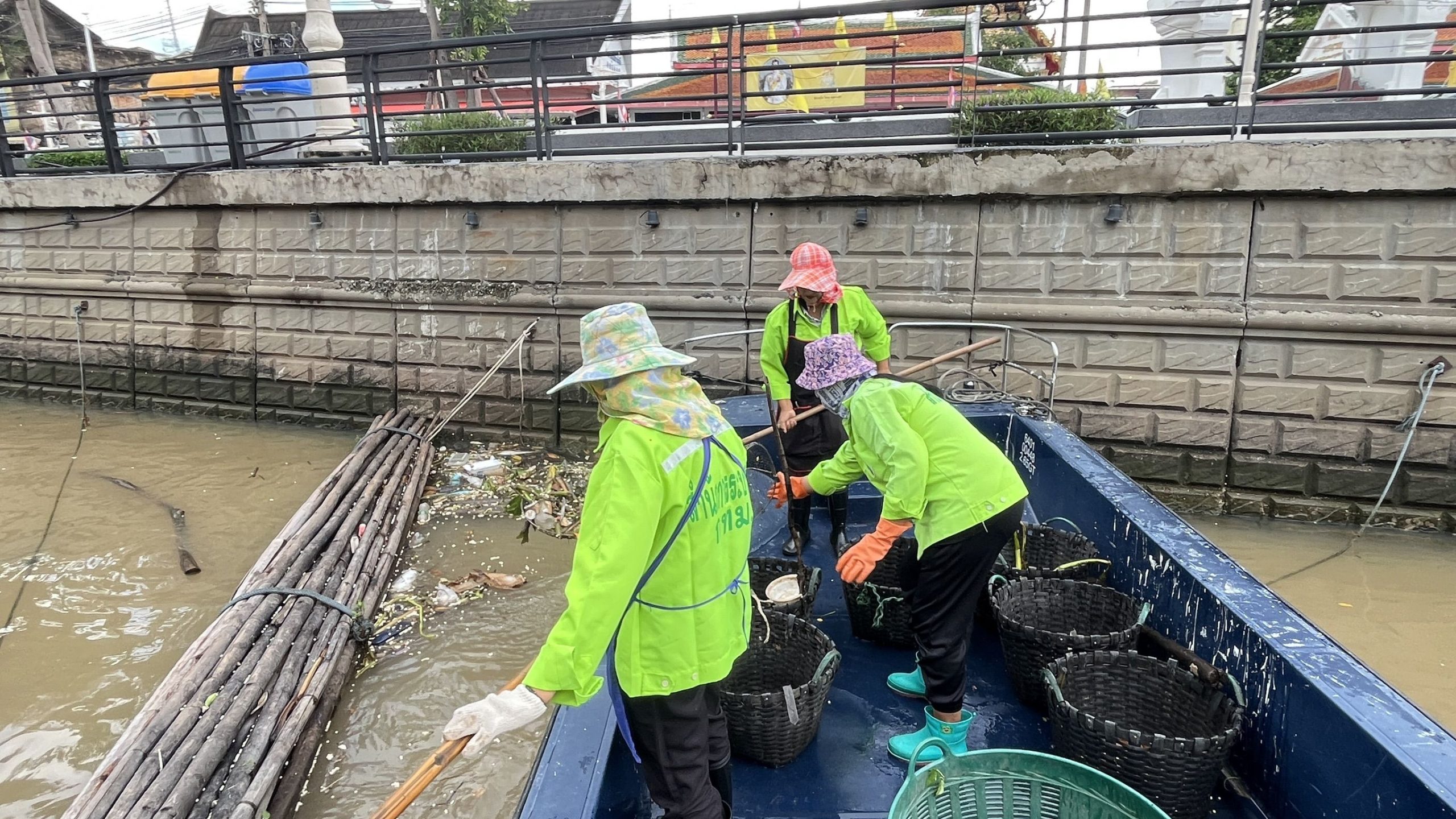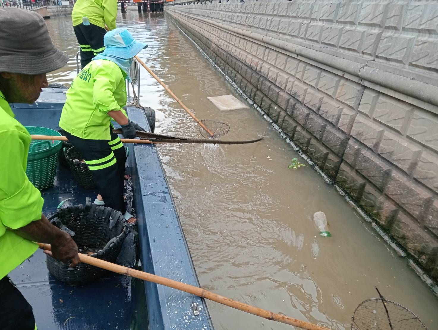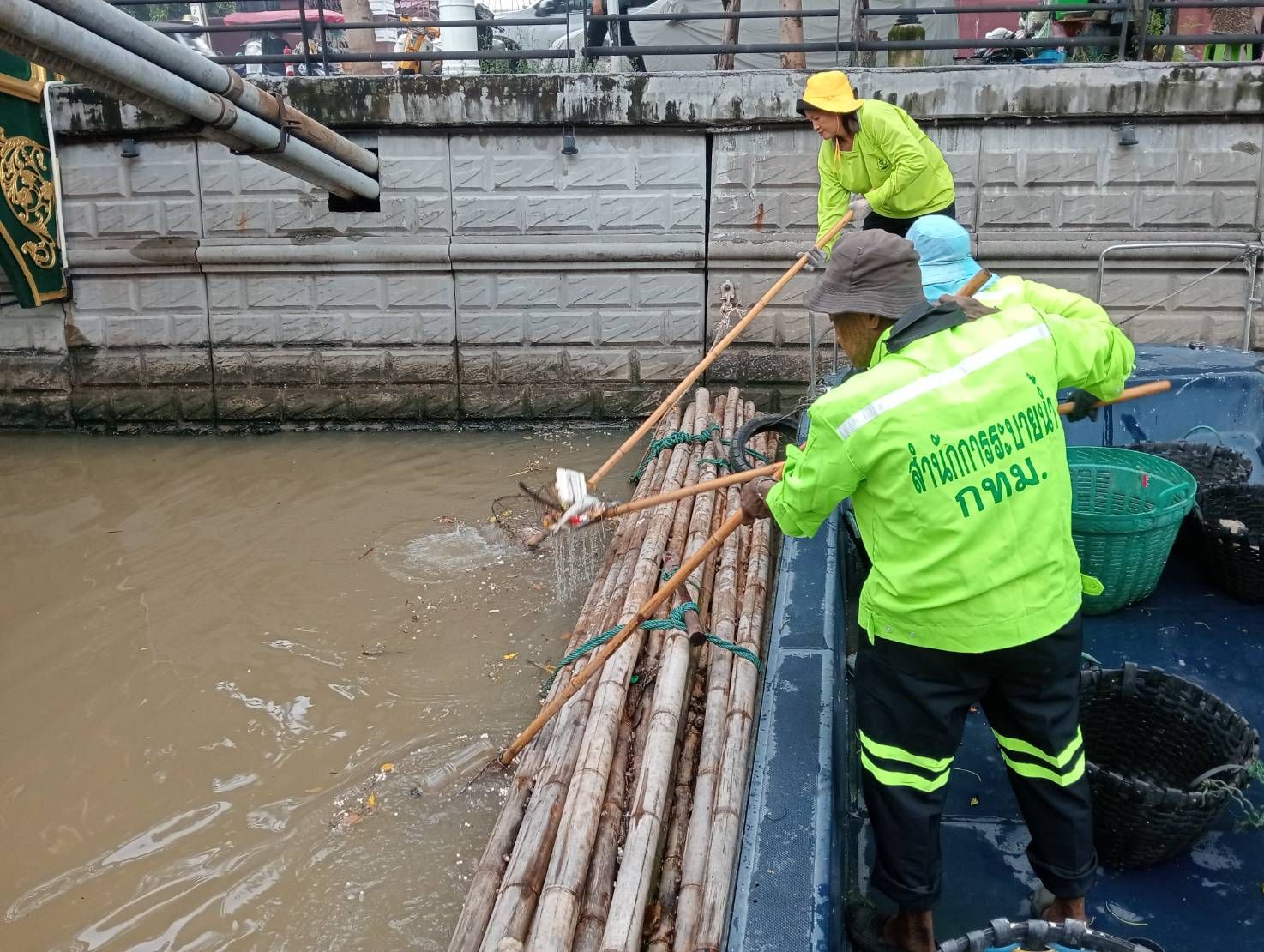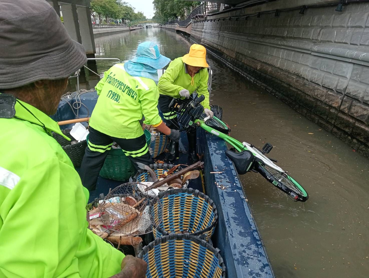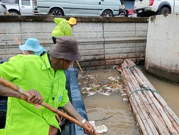 เจ้าหน้าที่ เก็บขยะและวัชพืชเก็บจาก ปตร. เทเวศร์ตลอดช่วงสะพานมัฆวานถึงสี่แยกมหานาค พื้นที่เขตดุสิตเขต เขตพระนคร เขตป้อมปราบศรัตรูพ่าย