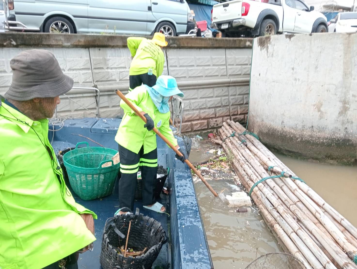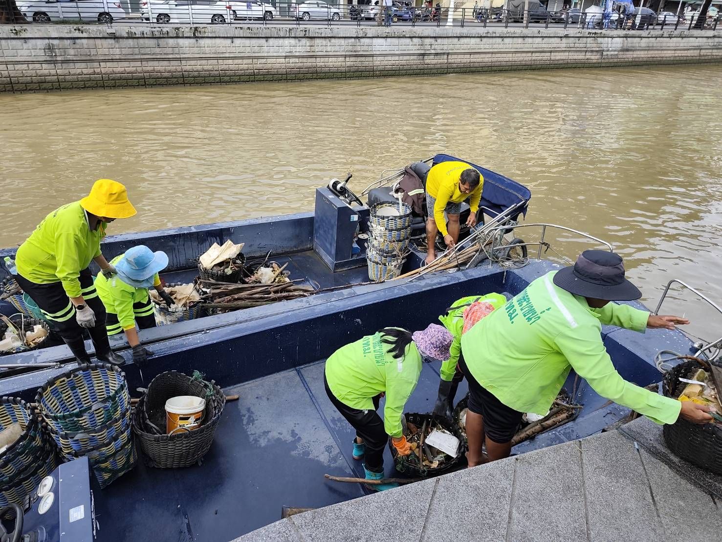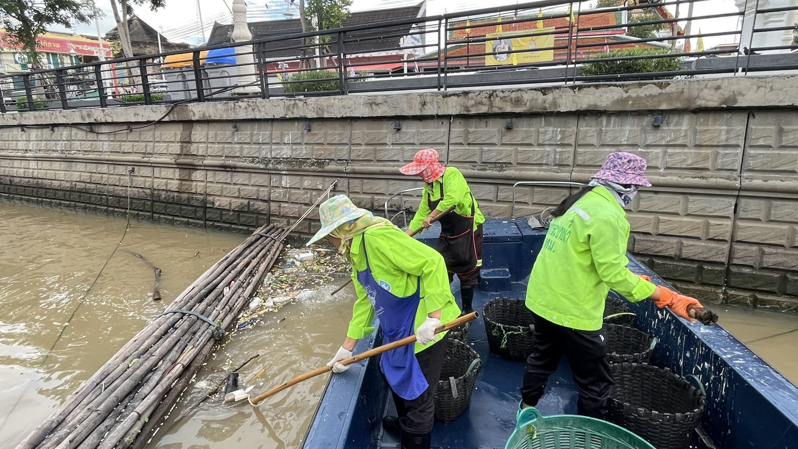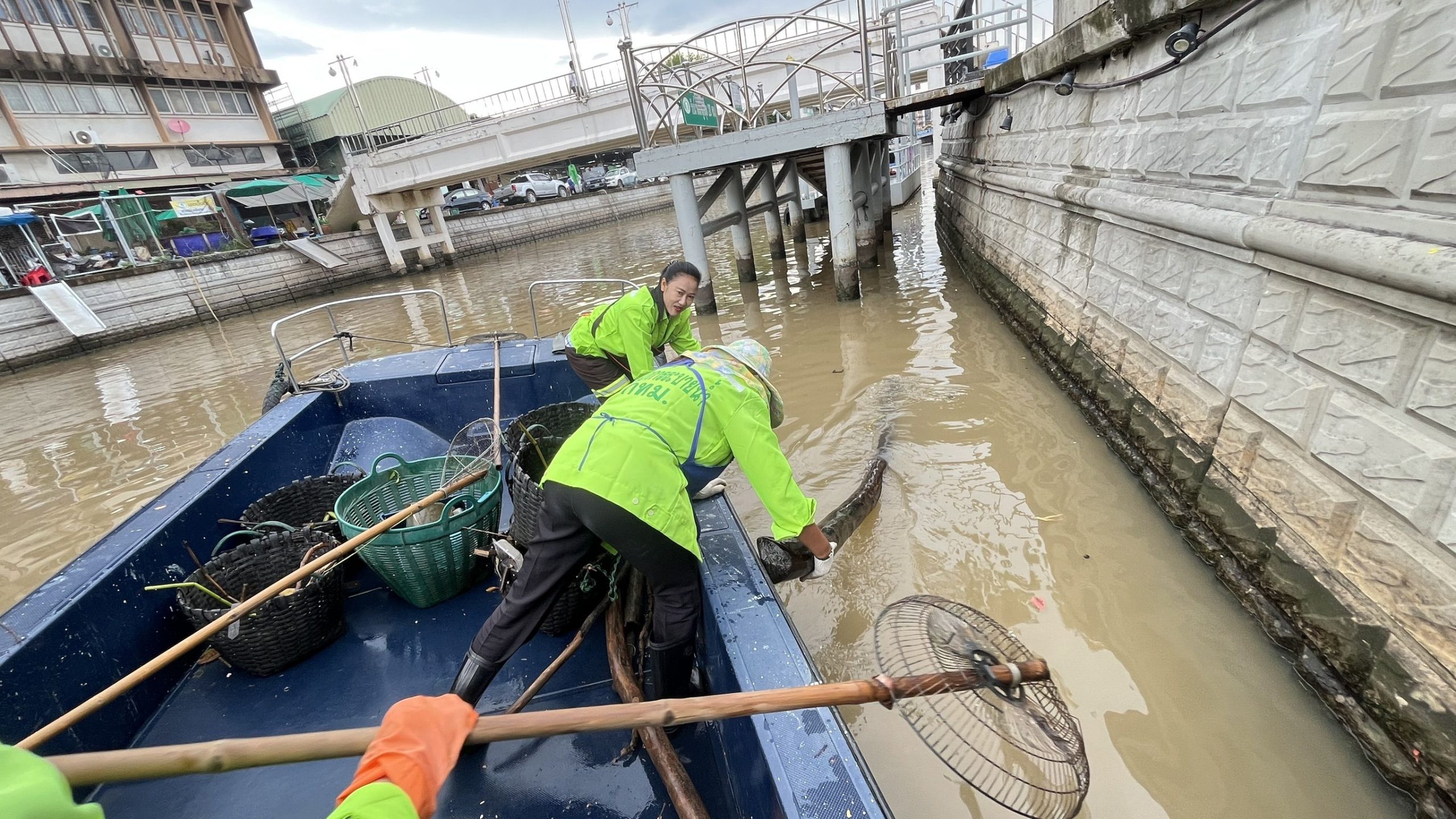 เจ้าหน้าที่ เก็บขยะและวัชพืชเก็บจาก ปตร. เทเวศร์ตลอดช่วงสะพานมัฆวานถึงสี่แยกมหานาค พื้นที่เขตดุสิตเขต เขตพระนคร เขตป้อมปราบศรัตรูพ่าย