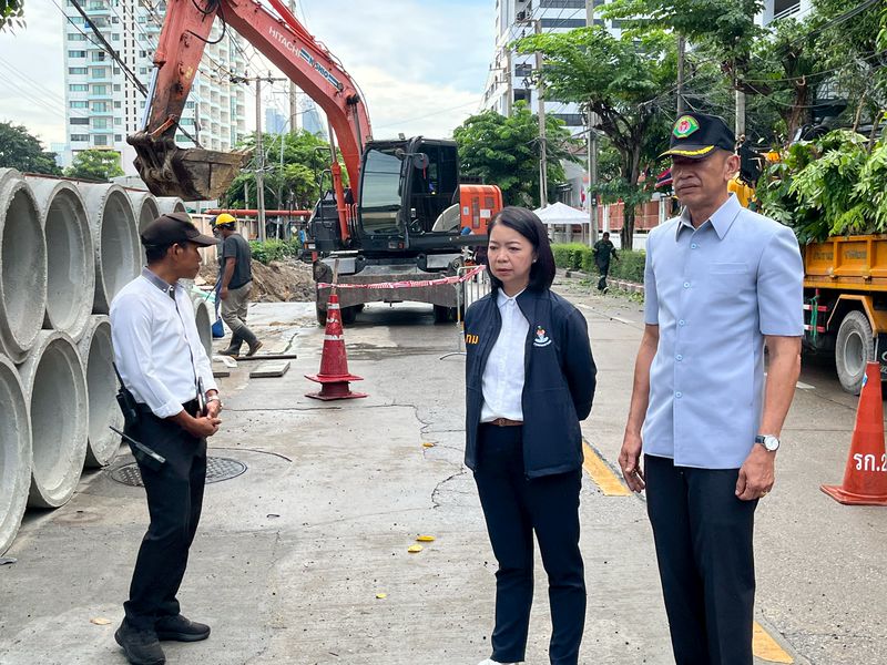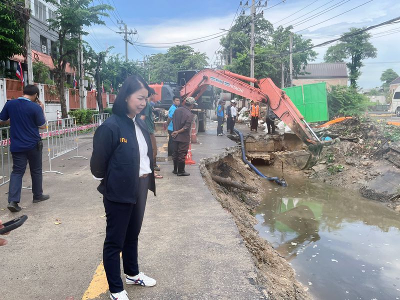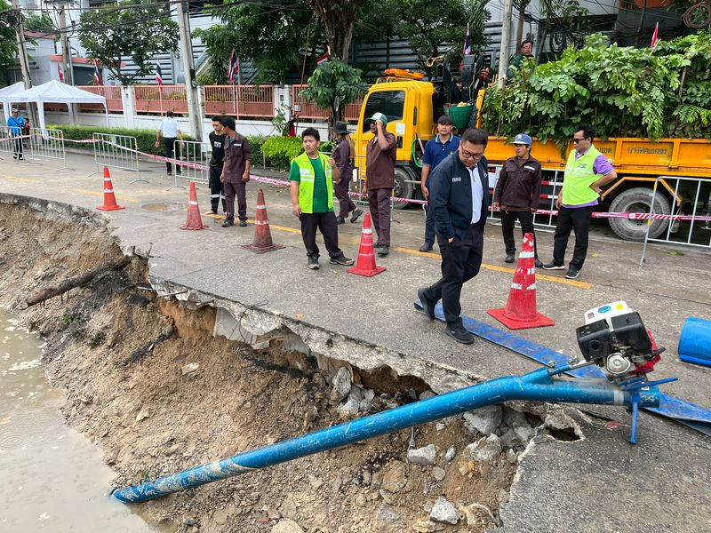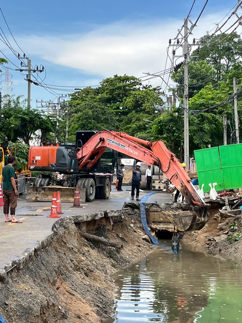 (3 ต.ค. 68) นางสาวอรชา มุ้ยเสมา ผู้อำนวยการเขตบางคอแหลม ลงพื้นที่ตรวจติดตามการกแก้ไขปัญหาผิวจราจรทรุดตัว บริเวณหน้าการไฟฟ้านครหลวงเขตยานนาวา พร้อมตรวจสอบ หารือกับผู้ที่เกี่ยวข้องถึงวิธีการและแนวทางในการซ่อมแซมถนนที่เกิดการทรุดตัว โดยขณะลงพื้นที่ เจ้าหน้าที่ได้ดำเนินการปิดกั้นท่อระบายน้ำเพื่อป้องกันการรั่วซึมของน้ำลงสู่บริเวณที่เกิดการทรุดตัวและดำเนินการสูบน้ำออกจากบริเวณที่เกิดการทรุดตัว ทั้งนี้จะดำเนินการวางท่อพร้อมบ่อพัก เพื่อดำเนินการแก้ไขฟื้นคืนสภาพพื้นที่ดังกล่าวในขั้นตอนต่อไป