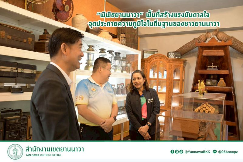 (3 ต.ค. 68) สำนักงานเขตยานนาวา นำโดย ผอ.อิทธิพล อิงประสาร ผู้อำนวยการเขตยานนาวา พร้อมด้วยผู้ช่วยฯ สลิลทิพย์ ฝอยทับทิม ผู้ช่วยผู้อำนวยการเขต นางสาวสุชัญญา กัจฉัปนันทน์ หัวหน้าฝ่ายพัฒนาชุมชนและสวัสดิการสังคม และคณะเจ้าหน้าที่ ได้เข้าร่วมเยี่ยมชม “พิพิธยานนาวา” พิพิธภัณฑ์ท้องถิ่นเขตยานนาวา ซึ่งตั้งอยู่ภายในโรงเรียนผู้สูงอายุยานนาวา วัดทองบน ถนนพระรามที่ 3 แขวงบางโพงพาง เขตยานนาวา โดยมี ผอ.ลิขิต ลิ้มรสรวย ผู้อำนวยการโรงเรียนผู้สูงอายุยานนาวา นำชม พร้อมคณะนักเรียนโรงเรียนผู้สูงอายุ และจิตอาสารวมใจภักดิ์