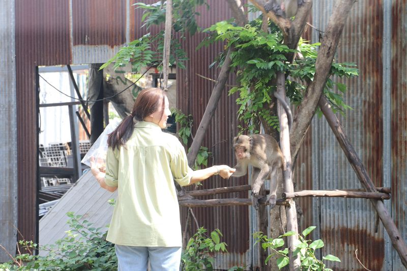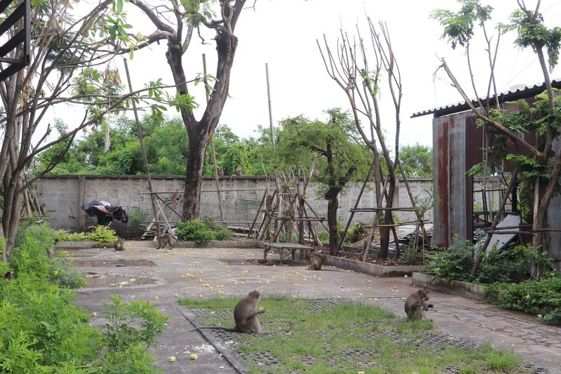 บริเวณที่มีลิงเพื่อปรับเปลี่ยนพฤติกรรมให้มารับอาหารจุดเดียว ลดการรบกวนบ้านเรือน ซึ่งดำเนินการมาอย่างต่อเนื่อง