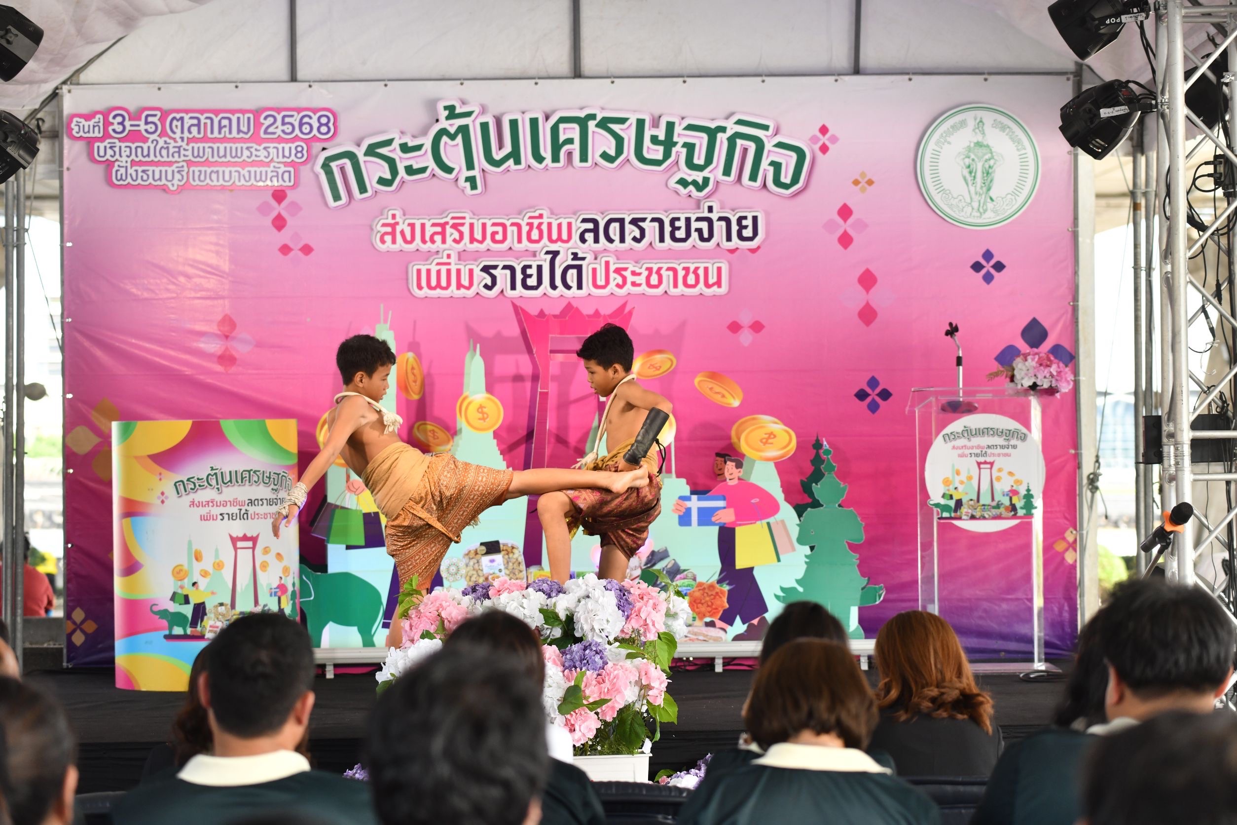 (3 ต.ค. 68) นางสาวกนกวรรณ เอี่ยมลิ้ม รองปลัดกรุงเทพมหานคร เป็นประธานในพิธีเปิดงานโครงการกระตุ้นเศรษฐกิจ ส่งเสริมอาชีพ ลดรายจ่าย เพิ่มรายได้ประชาชน ณ บริเวณใต้สะพานพระราม 8 ฝั่งธนบุรี เขตบางพลัด โดยมี พันตำรวจเอกภิญโญ ป้อมสถิตย์ สมาชิกสภากรุงเทพมหานคร (สก.) เขตบางพลัด นางสาวมานิตา รุจะศิริ ผู้อำนวยการเขตบางพลัด ผู้บริหารสำนักพัฒนาสังคม ผู้บริหารเขตบางพลัด ผู้บริหารเขตกลุ่มเขตกรุงธนเหนือ ประชาชน และผู้เกี่ยวข้องร่วมพิธีเปิดงาน
