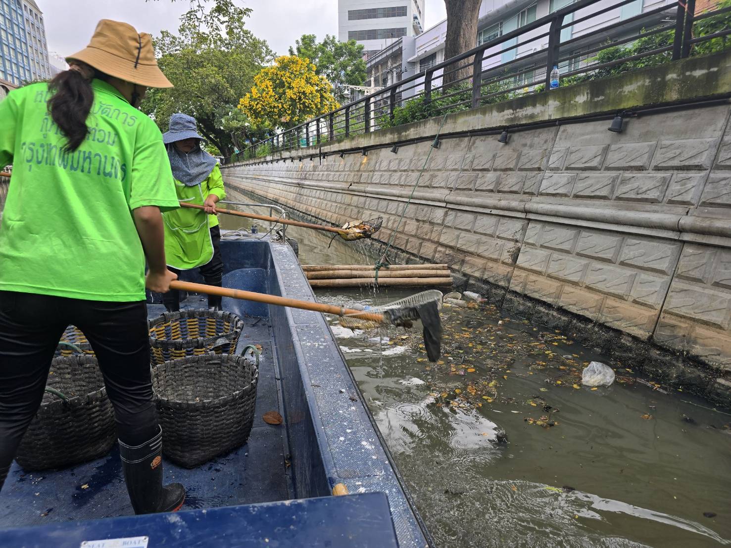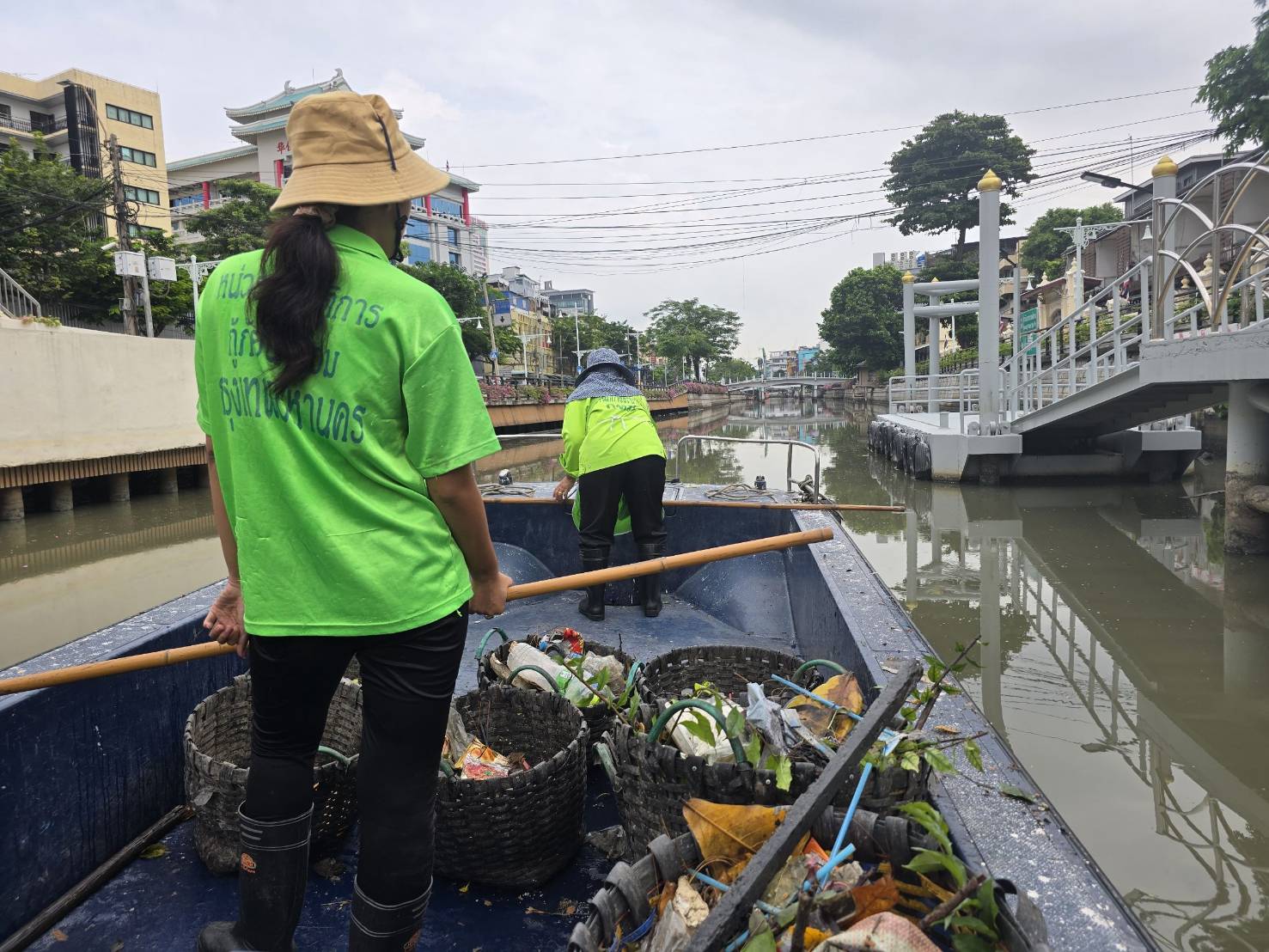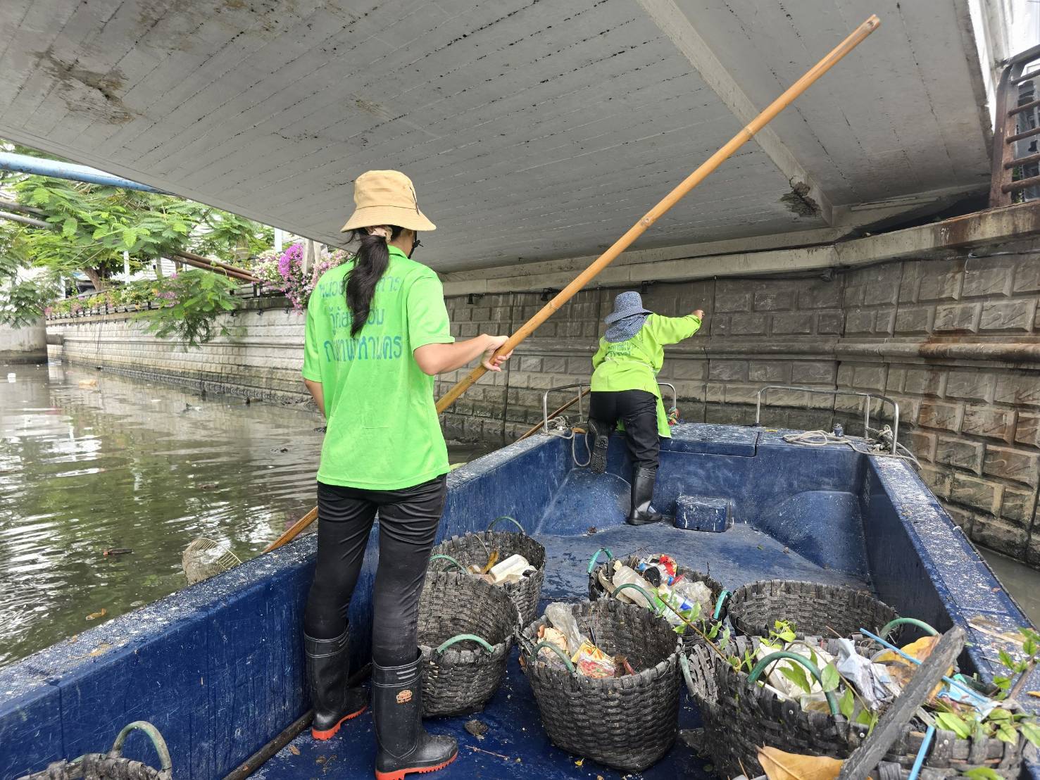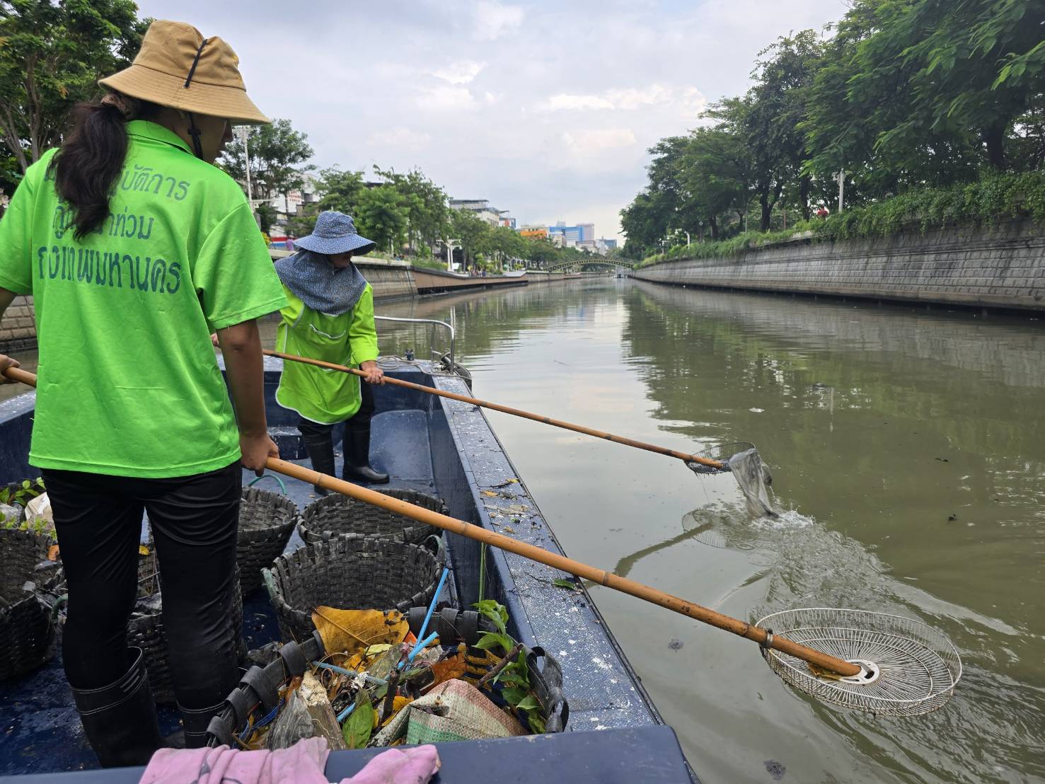 เจ้าหน้าที่ เก็บขยะช่วงสถานีสูบน้ำกรุงเกษมสะพานเจริญสวัสดิ์-สะพานนพวงศ์-สะพานกษัตริย์ศึกถึงสี่แยกมหานาค พื้นที่เขตปทุมวันและเขตป้อมปราบศรัตรูพ่าย