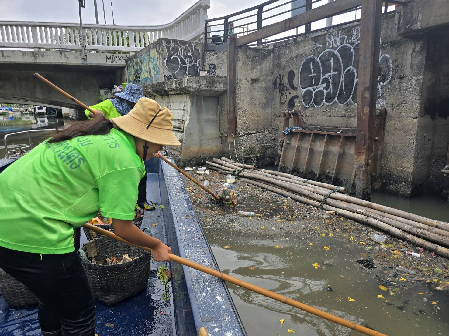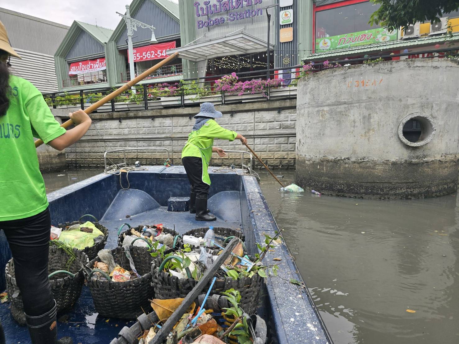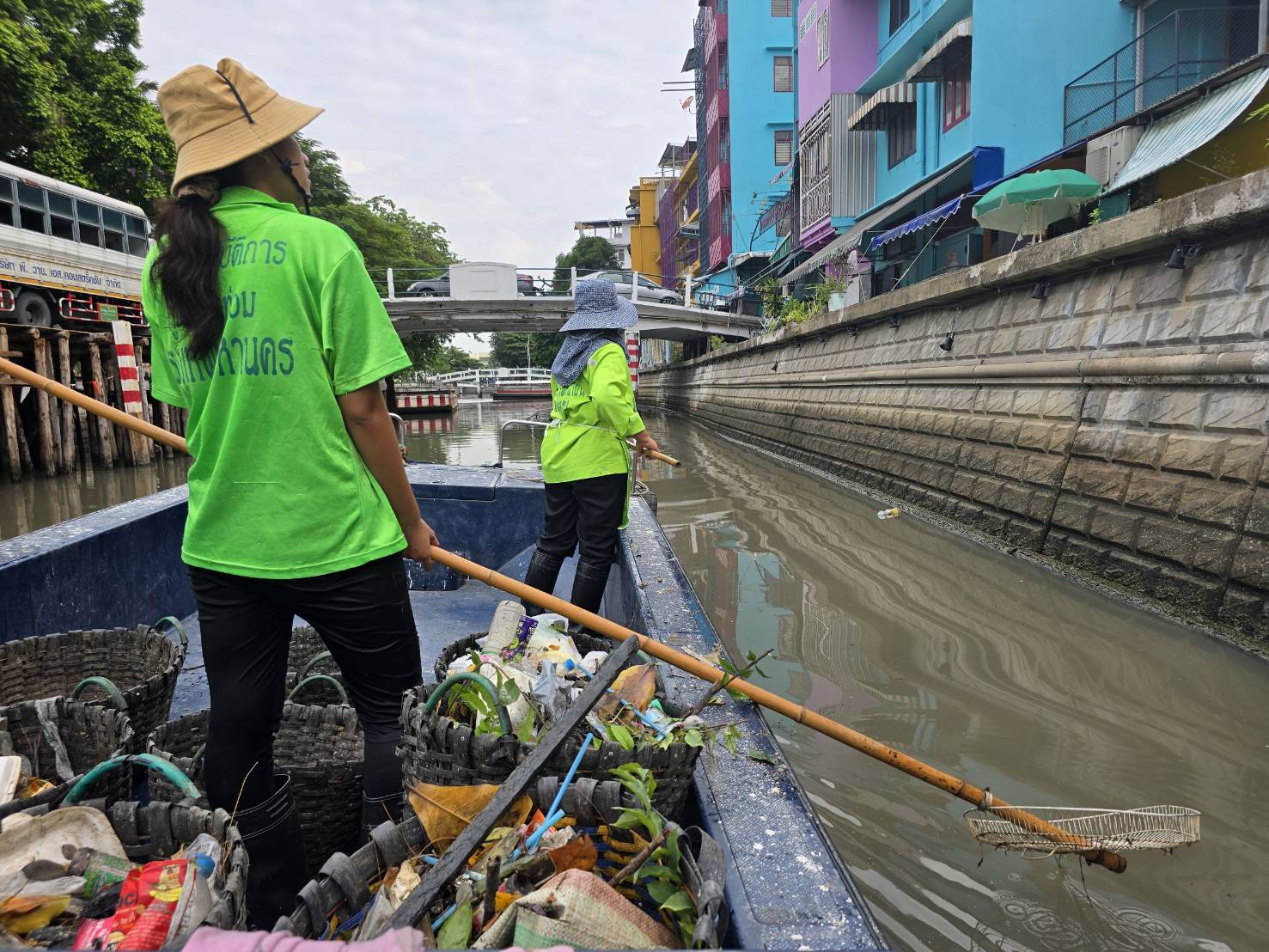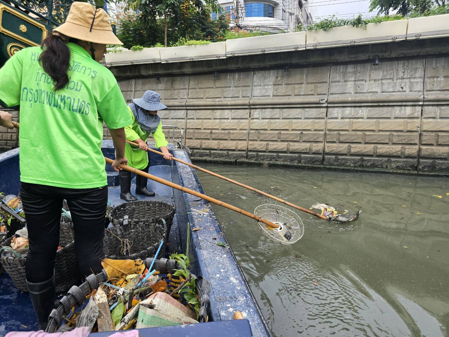 เจ้าหน้าที่ เก็บขยะช่วงสถานีสูบน้ำกรุงเกษมสะพานเจริญสวัสดิ์-สะพานนพวงศ์-สะพานกษัตริย์ศึกถึงสี่แยกมหานาค พื้นที่เขตปทุมวันและเขตป้อมปราบศรัตรูพ่าย