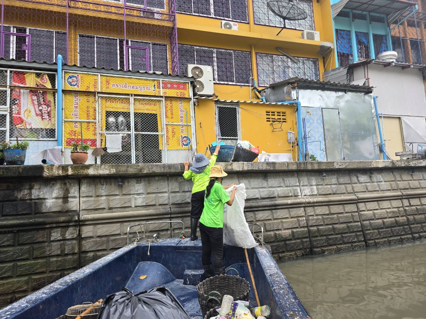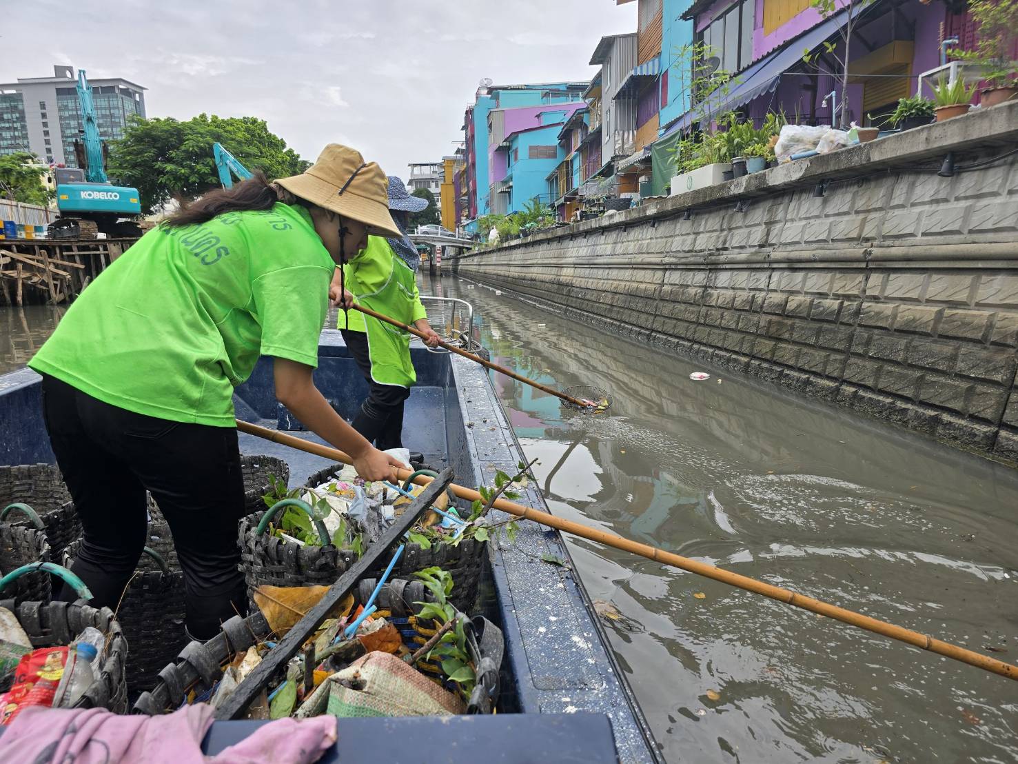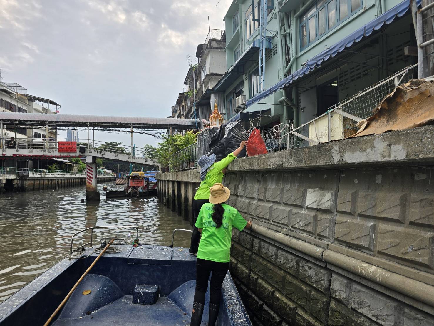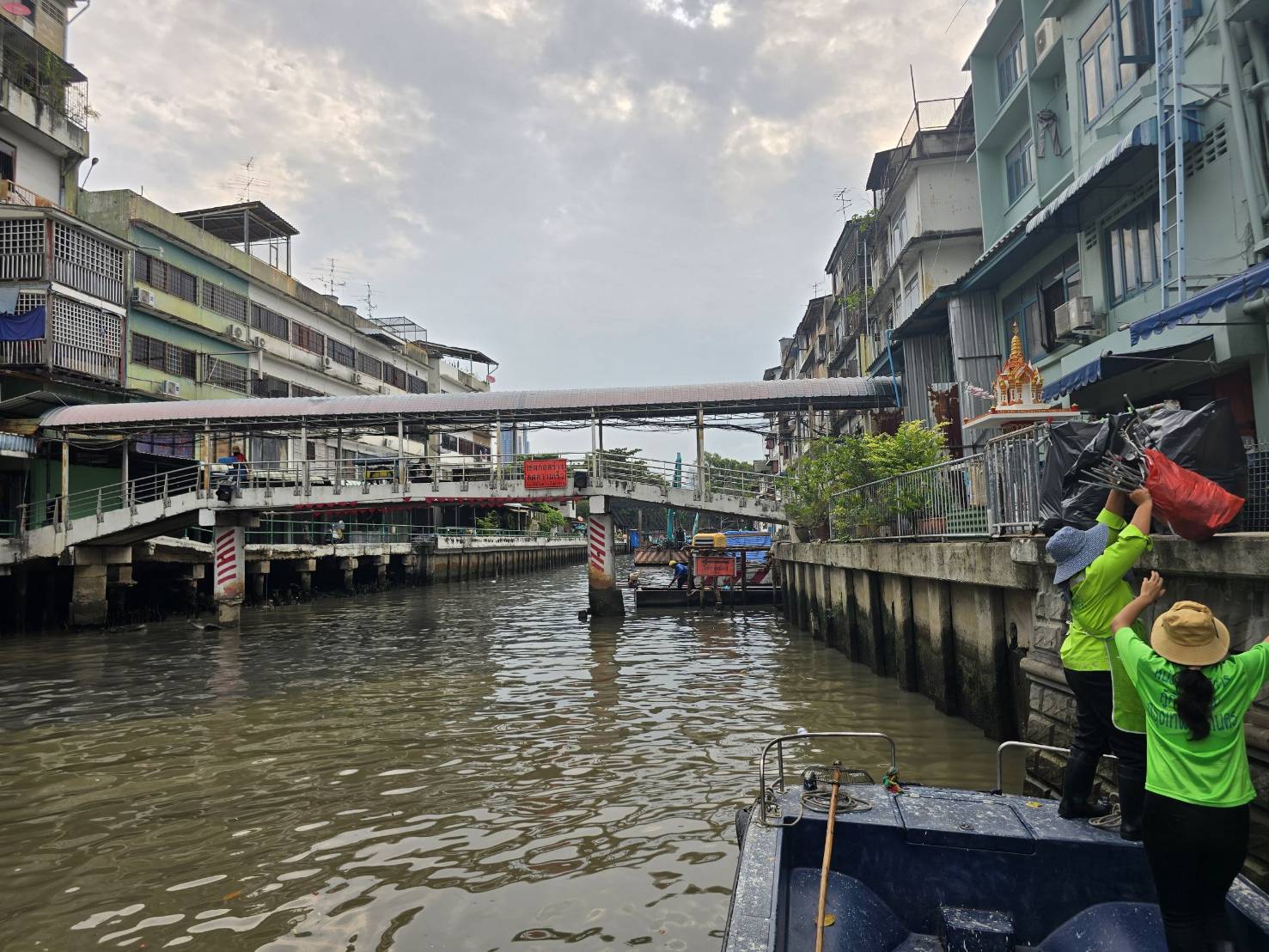 เจ้าหน้าที่ เก็บขยะช่วงสถานีสูบน้ำกรุงเกษมสะพานเจริญสวัสดิ์-สะพานนพวงศ์-สะพานกษัตริย์ศึกถึงสี่แยกมหานาค พื้นที่เขตปทุมวันและเขตป้อมปราบศรัตรูพ่าย