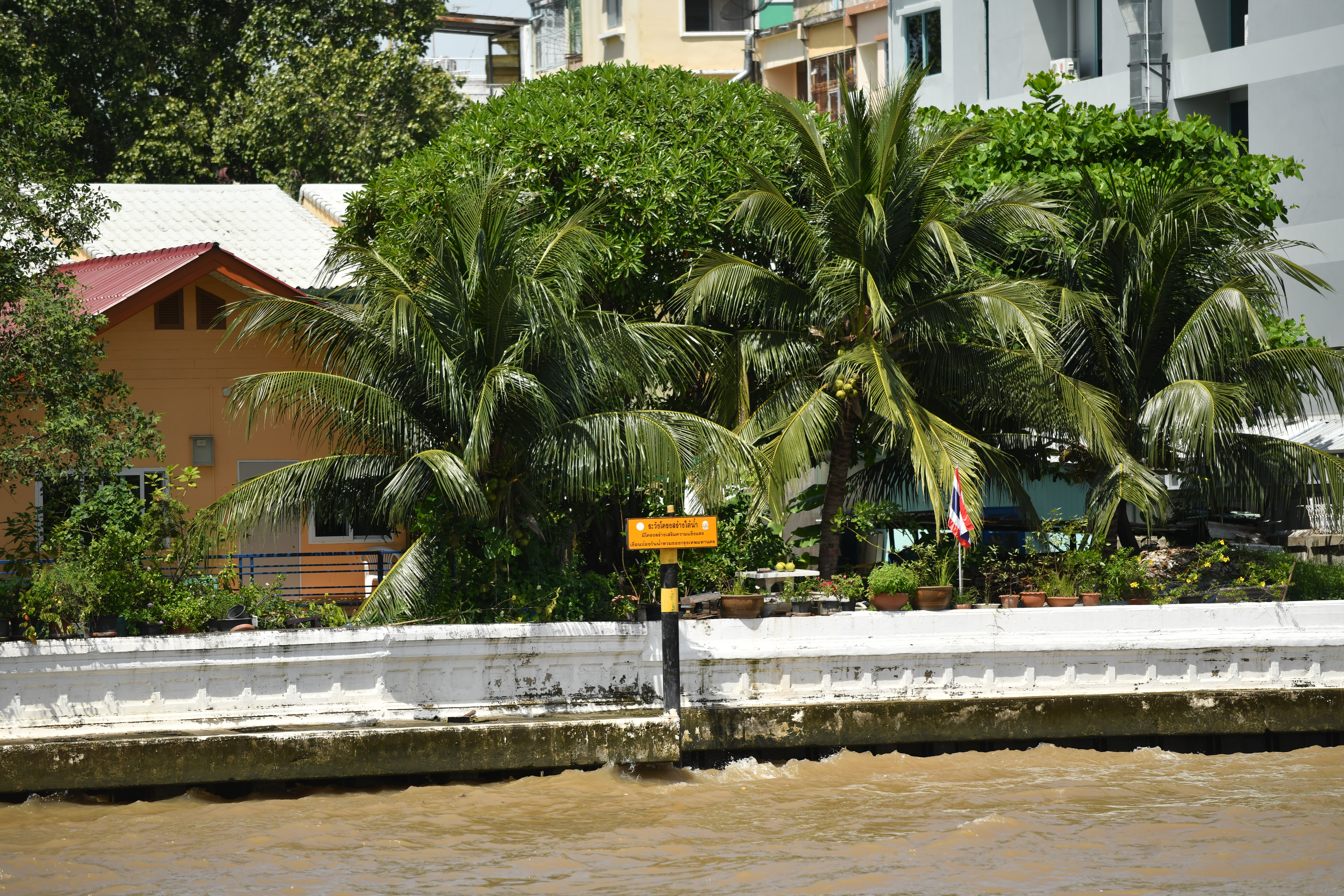 ซึ่งเป็นเส้นทางหลักในการระบายน้ำจากพื้นที่เหนือกรุงเทพมหานคร ลงสู่อ่าวไทย การบริหารจัดการน้ำเหนือที่ไหลลงมา มีผลโดยตรงต่อระดับน้ำในกรุงเทพมหานคร นอกจากนี้เมื่อเกิดน้ำทะเลหนุนสูง ระดับน้ำในแม่น้ำเจ้าพระยาจะสูงขึ้นด้วย เพื่อป้องกันปัญหาน้ำท่วมเนื่องจากน้ำหลากจากแม่น้ำเจ้าพระยาไหลเข้าท่วมพื้นที่ กรุงเทพมหานครจึงก่อสร้างแนวป้องกันน้ำท่วมริมแม่น้ำเจ้าพระยา คลองบางกอกน้อย คลองมหาสวัสดิ์ คลองชักพระ และคลองพระโขนง มีความยาวริมตลิ่งประมาณ 88 กิโลเมตร ซึ่งแบ่งเป็นแนวป้องกันตนเองของเอกชนหรือหน่วยงานอื่น ความยาวประมาณ 3.65 กิโลเมตร แนวฟันหลอ 4.35 กิโลเมตร และเป็นแนวป้องกันน้ำท่วมของกรุงเทพมหานคร ซึ่งก่อสร้างโดยสำนักการระบายน้ำ ความยาวประมาณ 80 กิโลเมตร มีระดับความสูงดังนี้ - ริมแม่น้ำเจ้าพระยา ช่วงสะพานพระราม 7 ถึงสะพานกรุงธนบุรี ความสูง +3.50 ม.(รทก.)