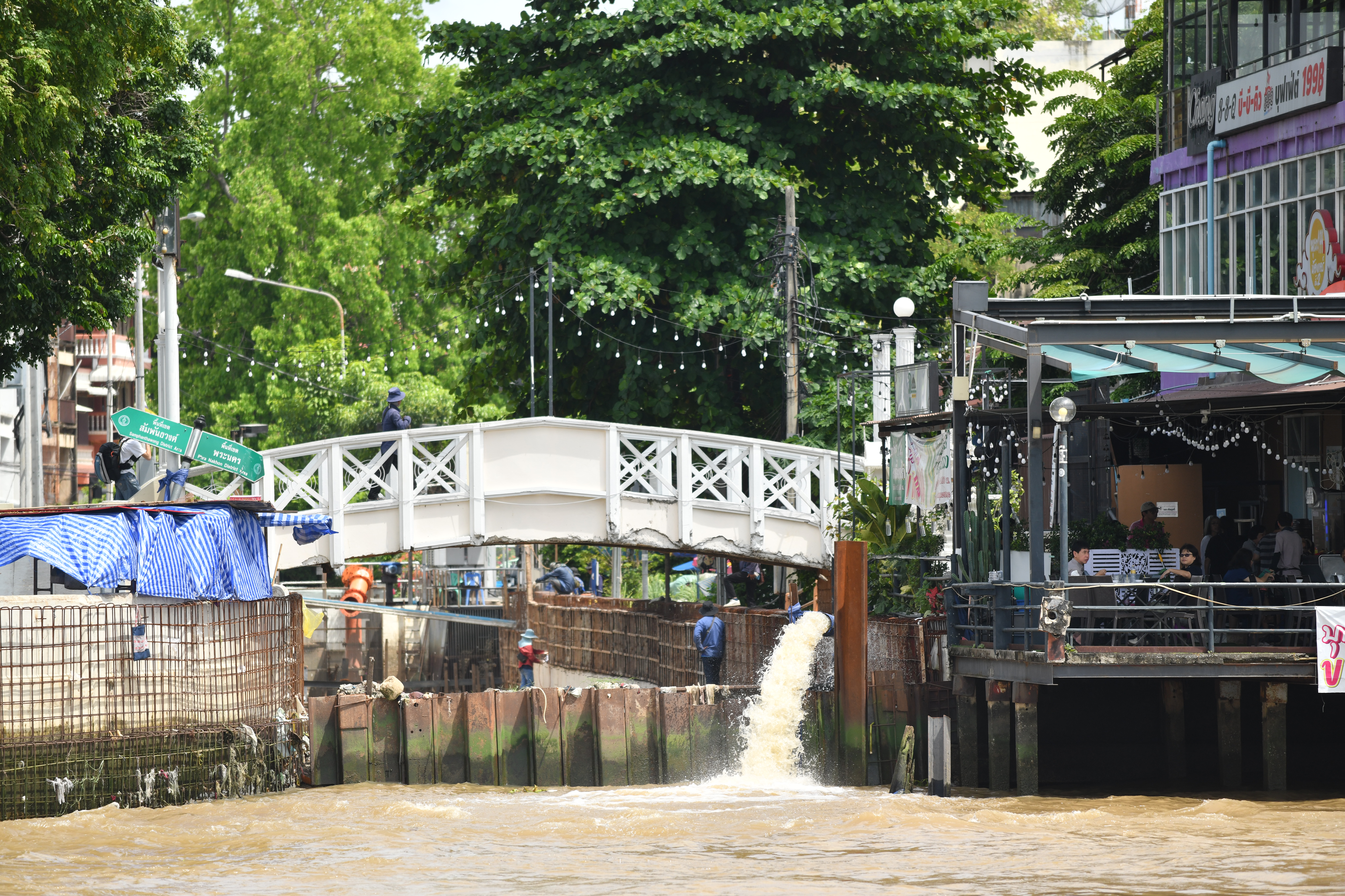 ในการนี้ นายวิศณุ ทรัพย์สมพล รองผู้ว่าราชการกรุงเทพมหานคร นายจิระเดช กรุณกฤตกุล รองปลัดกรุงเทพมหานคร นายเอกวรัญญู อัมระปาล โฆษกของกรุงเทพมหานคร พร้อมด้วยคณะผู้บริหารกรุงเทพมหานคร สำนักการระบายน้ำ สำนักงานเขตพระนคร สำนักงานเขตบางกอกใหญ่ สำนักงานเขตบางกอกน้อย ศูนย์อำนวยการน้ำแห่งชาติ สำนักงานทรัพยากรน้ำแห่งชาติ และหน่วยงานที่เกี่ยวข้อง ร่วมลงพื้นที่