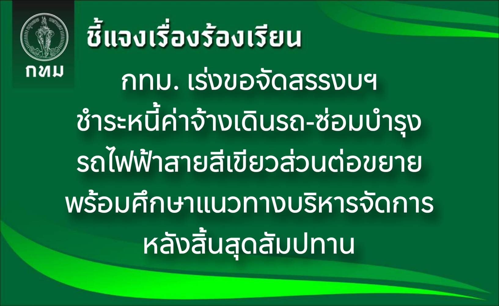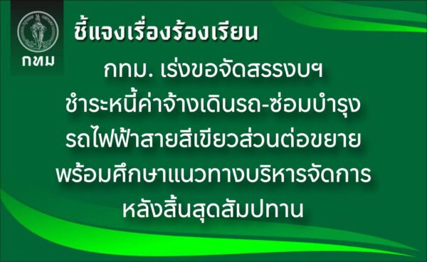 นายสิทธิพร สมคิดสรรพ์ ผู้อำนวยการสำนักการจราจรและขนส่ง (สจส.) กทม. กล่าวถึงการดำเนินการของ กทม. ภายหลังศาลปกครองกลางมีคำพิพากษาให้ กทม. ร่วมกับบริษัท กรุงเทพธนาคม จำกัด (KT) ชำระหนี้ค่าจ้างเดินรถและซ่อมบำรุงโครงการรถไฟฟ้าสายสีเขียวส่วนต่อขยายที่ 1 จำนวน 2,895,049,026.25 บาท พร้อมดอกเบี้ยของต้นเงินจำนวน 2,771,356,222.15 บาท และส่วนต่อขยายที่ 2 จำนวน 8,173,420,912.28 บาท พร้อมดอกเบี้ยของต้นเงินจำนวน 7,848,122,792 บาท คิดตามอัตราดอกเบี้ย MLR+1 นับตั้งแต่วันฟ้องเป็นต้นไปจนกว่าจะชำระเสร็จสิ้น โดยให้ชำระหนี้ทั้งหมดภายใน 180 วันนับแต่วันที่คดีถึงที่สุด ซึ่งเป็นค่าจ้างเดินรถและซ่อมบำรุงตั้งแต่เดือน มิ.ย. 64 ถึง ต.ค. 65 ว่า กทม. ได้ประสานสำนักบังคับคดีปกครอง สำนักงานศาลปกครอง เพื่อคำนวณยอดหนี้ทั้งหมดพร้อมดอกเบี้ย และมอบหมายให้ KT เจรจากับบริษัท ระบบขนส่งมวลชนกรุงเทพ จำกัด (มหาชน) เพื่อขอปรับลดดอกเบี้ย นอกจากนี้ สจส. ได้จัดทำคำของบประมาณรายจ่ายเพิ่มเติมประจำปี พ.ศ. 2569 วงเงิน 32,625,106,200 บาท ซึ่งครอบคลุมค่าจ้างเดินรถและซ่อมบำรุงที่ค้างชำระทั้งในส่วนที่ศาลมีคำพิพากษาจนถึงเดือน ส.ค. 68 ปัจจุบันอยู่ระหว่างเสนอสภา กทม. พิจารณาให้ความเห็นชอบร่างข้อบัญญัติดังกล่าว