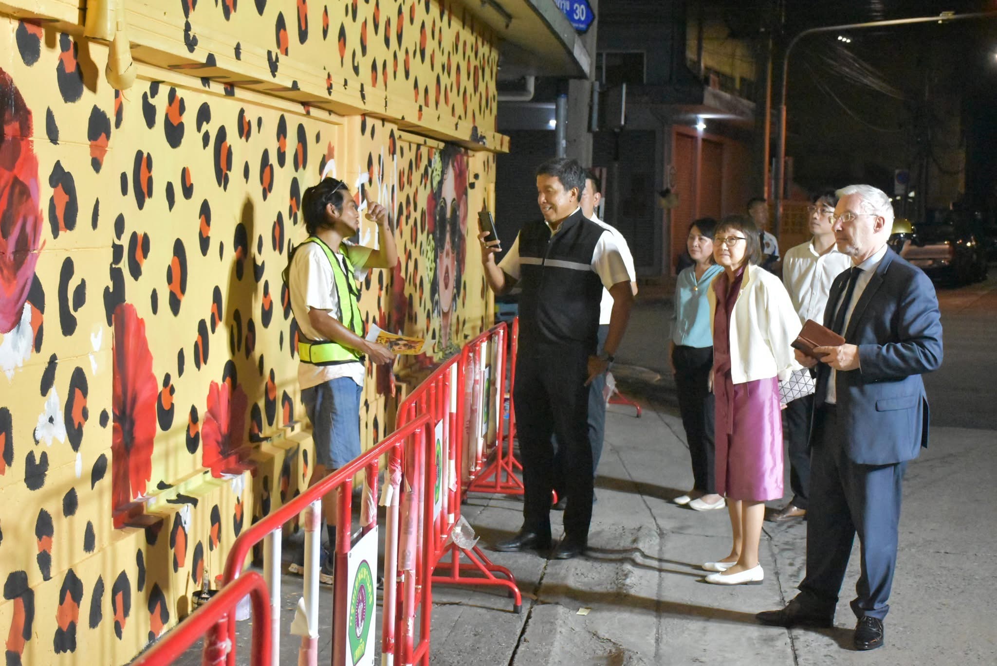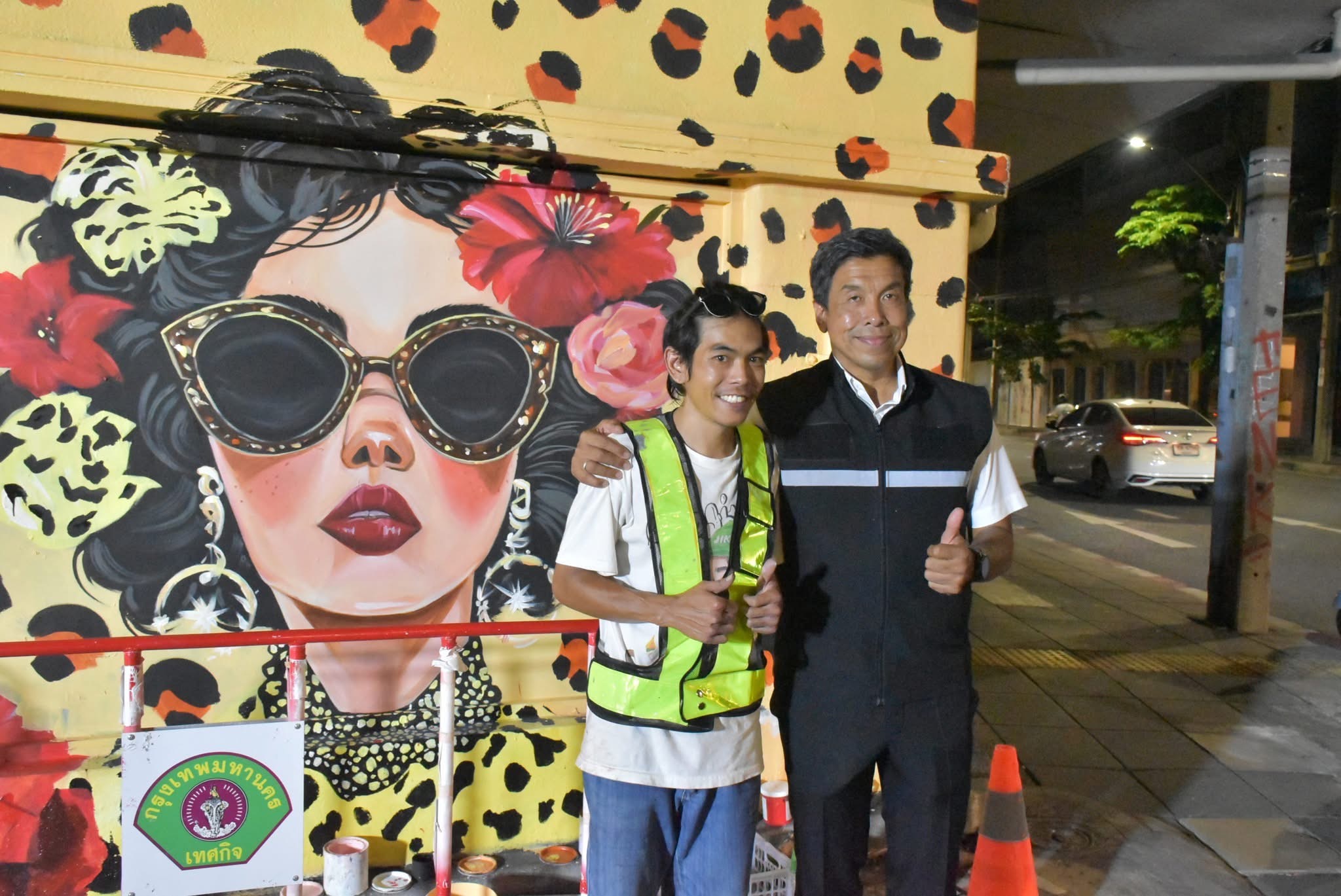 (8 ต.ค. 68) นายชัชชาติ สิทธิพันธุ์ ผู้ว่าราชการกรุงเทพมหานคร พร้อมด้วย นายศานนท์ หวังสร้างบุญ รองผู้ว่าราชการกรุงเทพมหานคร นางพรพัน วัฒนสินธุ์ ผู้อำนวยการเขตบางรัก และหัวหน้าฝ่ายปกครอง ลงพื้นที่ซอยเจริญกรุง 30 เพื่อดูแลความเรียบร้อย และอำนวยความสะดวกให้กับศิลปิน ที่เข้าดำเนินการแก้ไขภาพผลงานศิลปะบนผนัง ซึ่งถูกกลุ่มบุคคลมือบอนมาฉีดพ่นทำลาย เมื่อวันที่ 27 ก.ย. ที่ผ่านมา