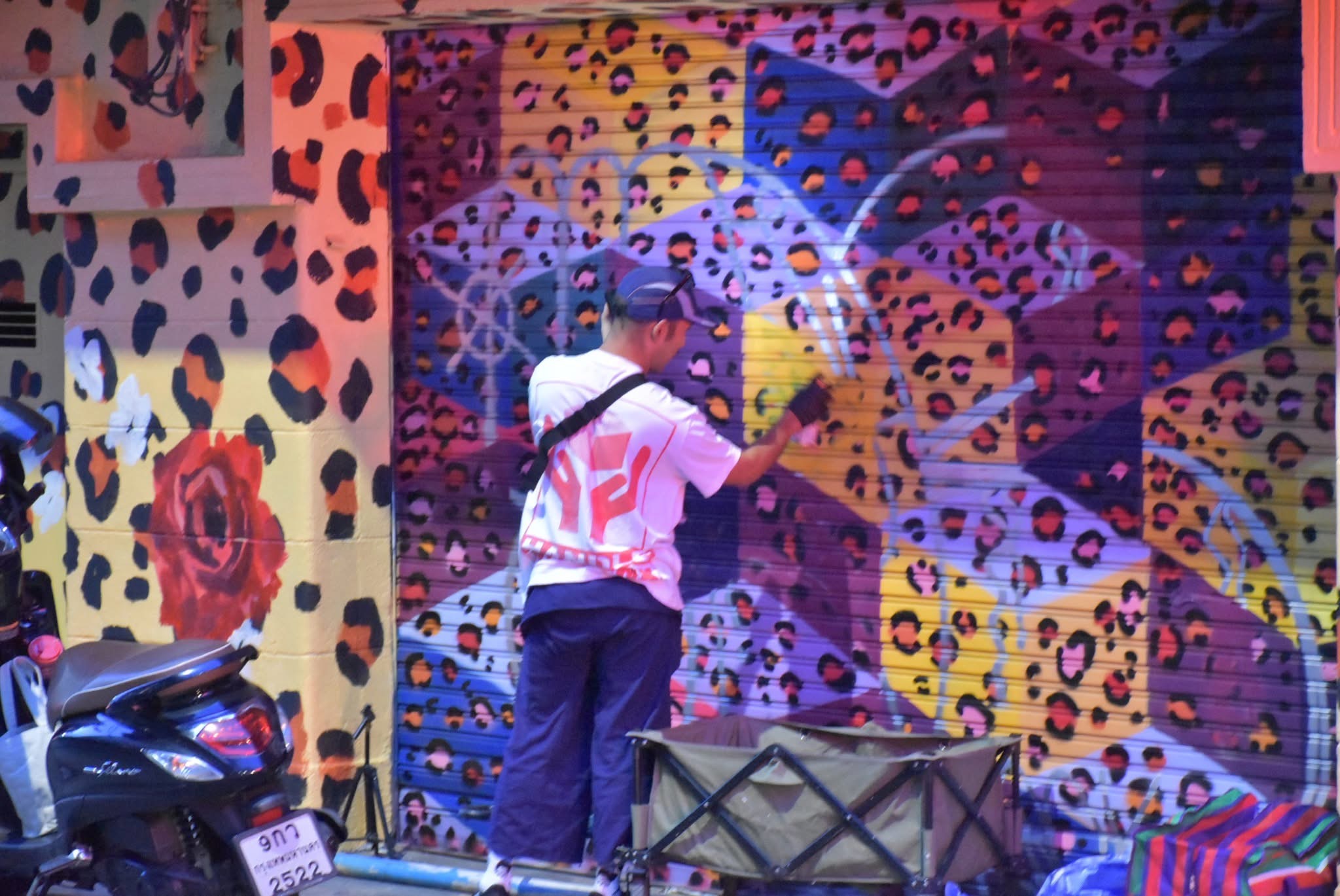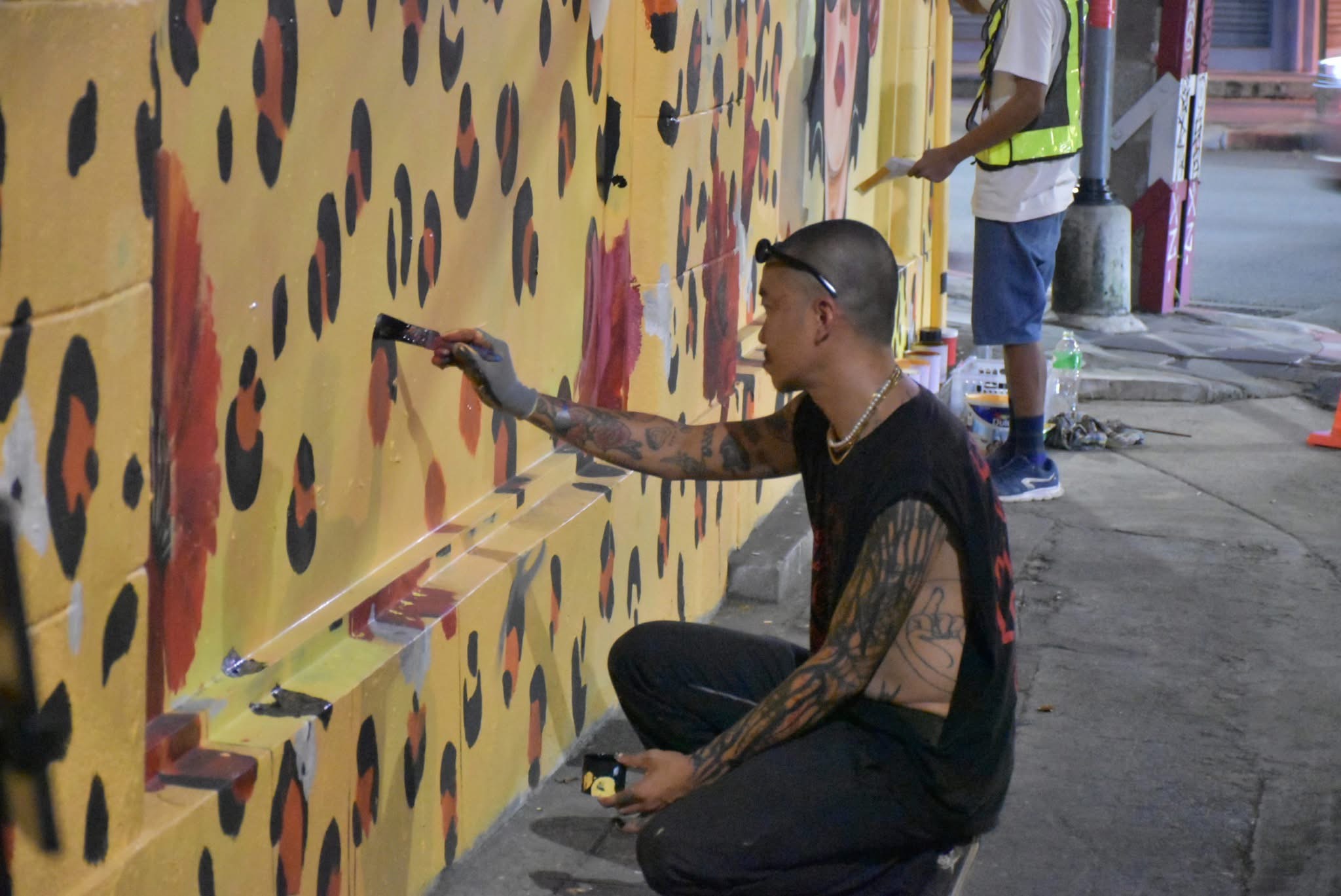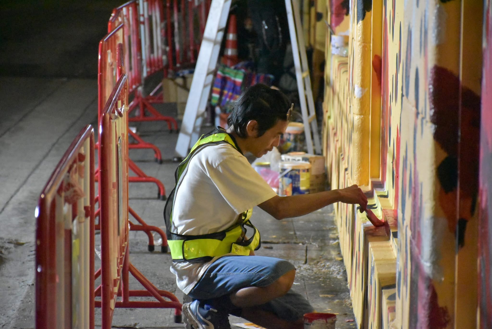 ทั้งนี้ เจ้าหน้าที่เทศกิจ ได้นำบันไดและแผงเหล็กมากั้นพื้นที่ทำงานของศิลปินเพื่อความปลอดภัยและ อปพร.เขตบางรัก ได้ติดตั้งไฟส่องสว่างตลอดพื้นที่ทำงาน