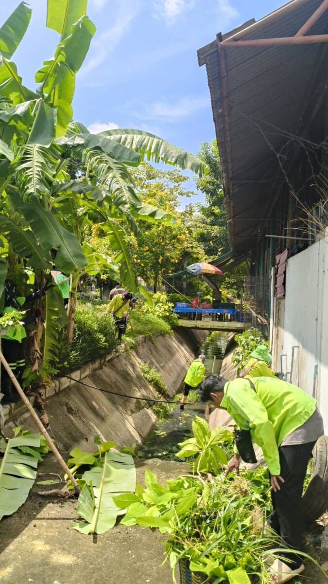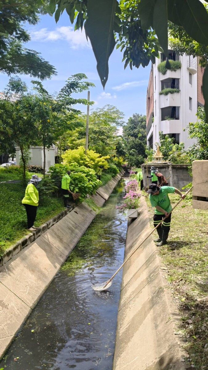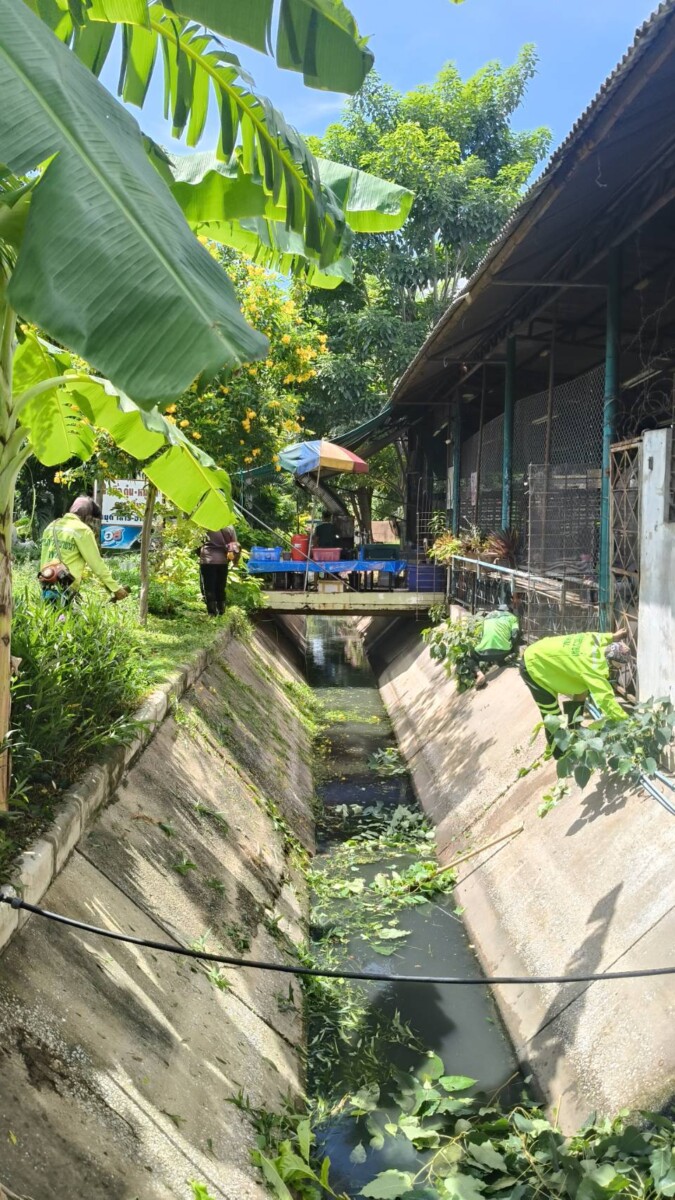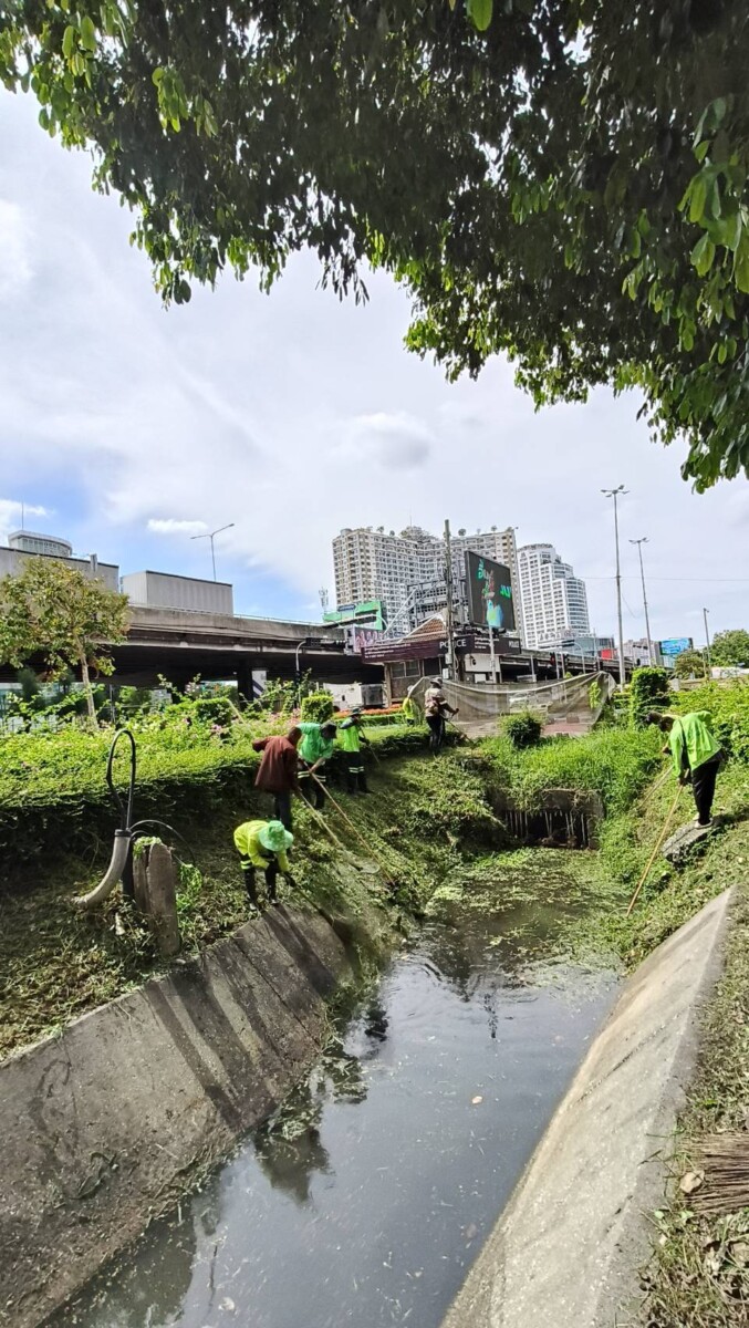 เจ้าหน้าที่เข้าดำเนินการจัดเก็บขยะกำจัดวัชพืชคลองมะนาวช่วงถนนรัชดาตัดถนนนางลิ้นจี่พื้นที่เขตยานนาวา