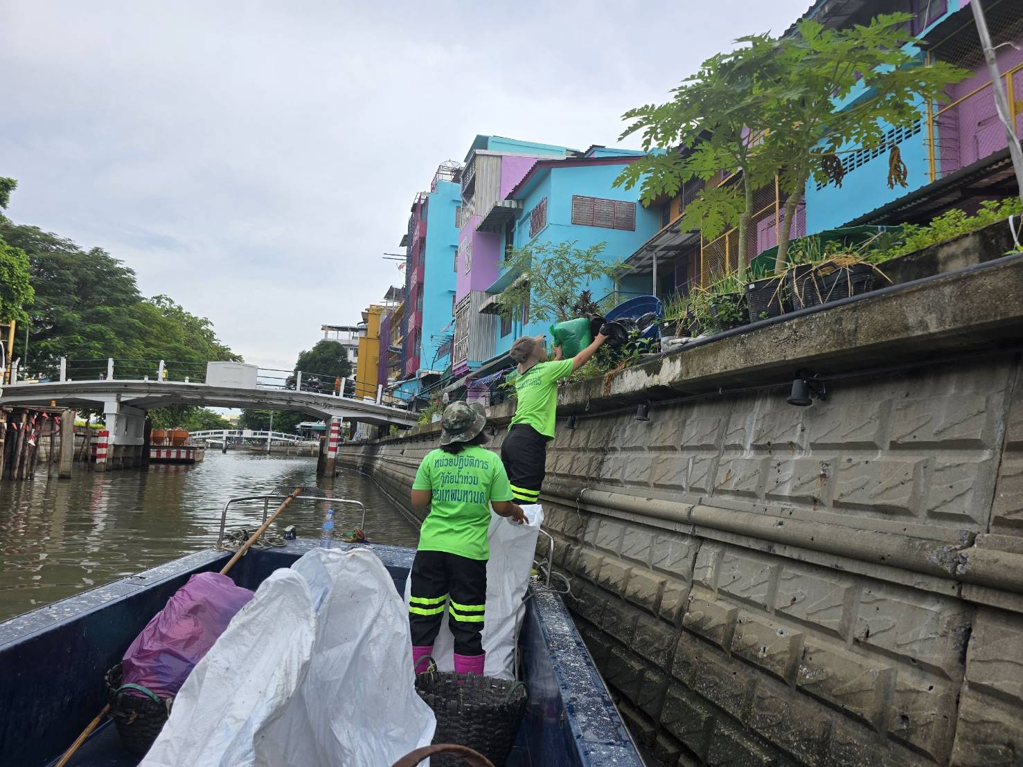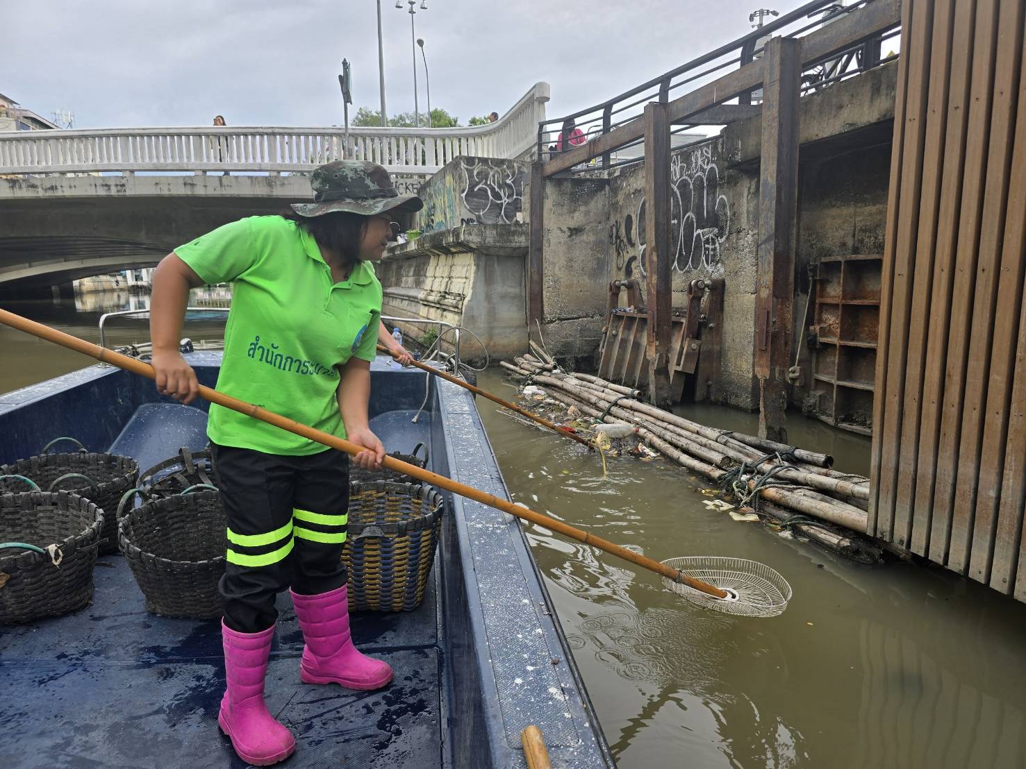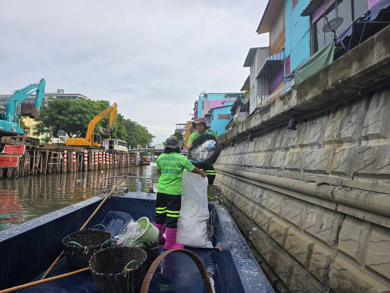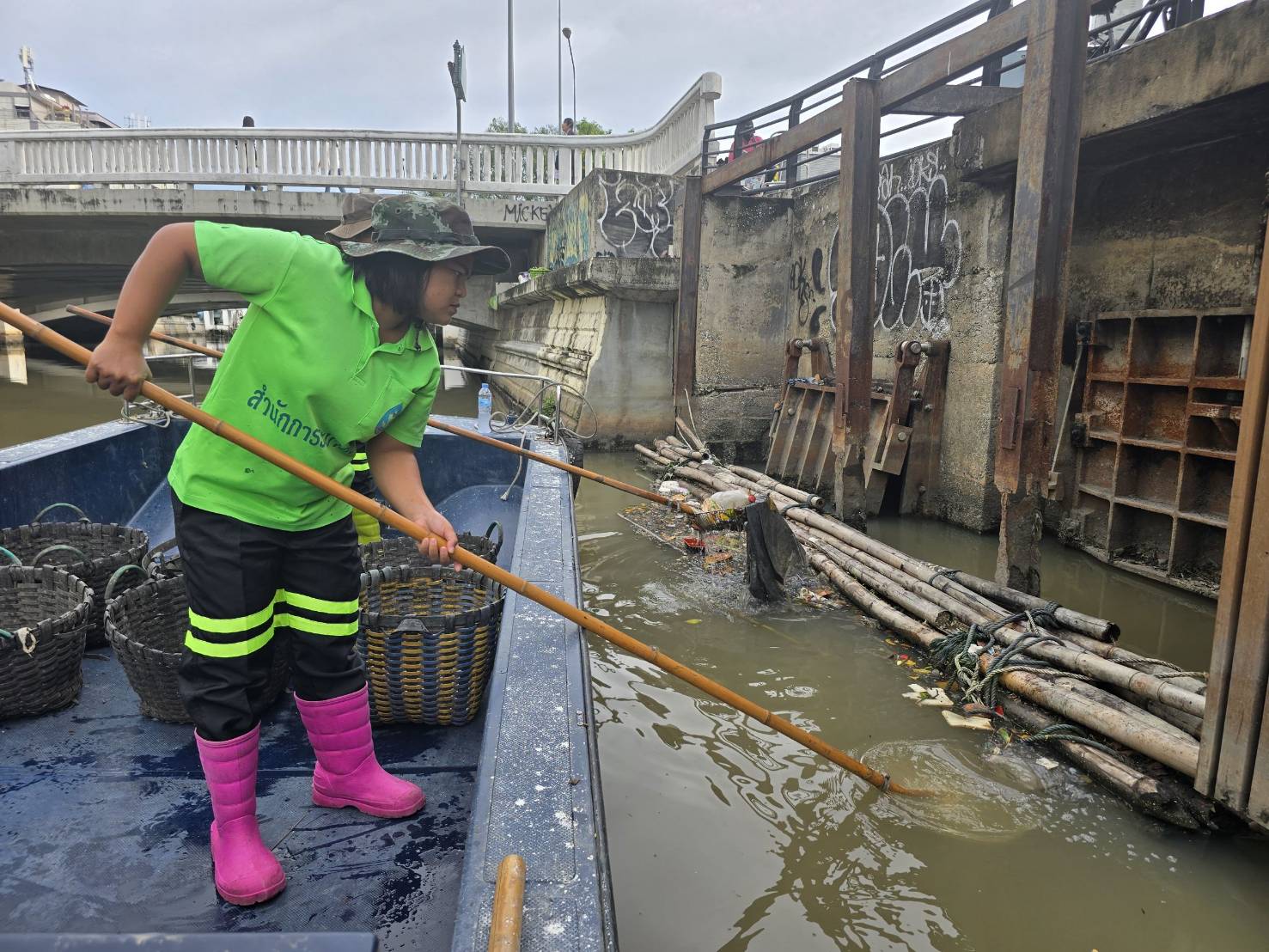 เจ้าหน้าที่ เก็บขยะช่วงสถานีสูบน้ำกรุงเกษมสะพานเจริญสวัสดิ์-สะพานนพวงศ์-สะพานกษัตริย์ศึกถึงสี่แยกมหานาค พื้นที่เขตปทุมวันและเขตป้อมปราบศรัตรูพ่าย