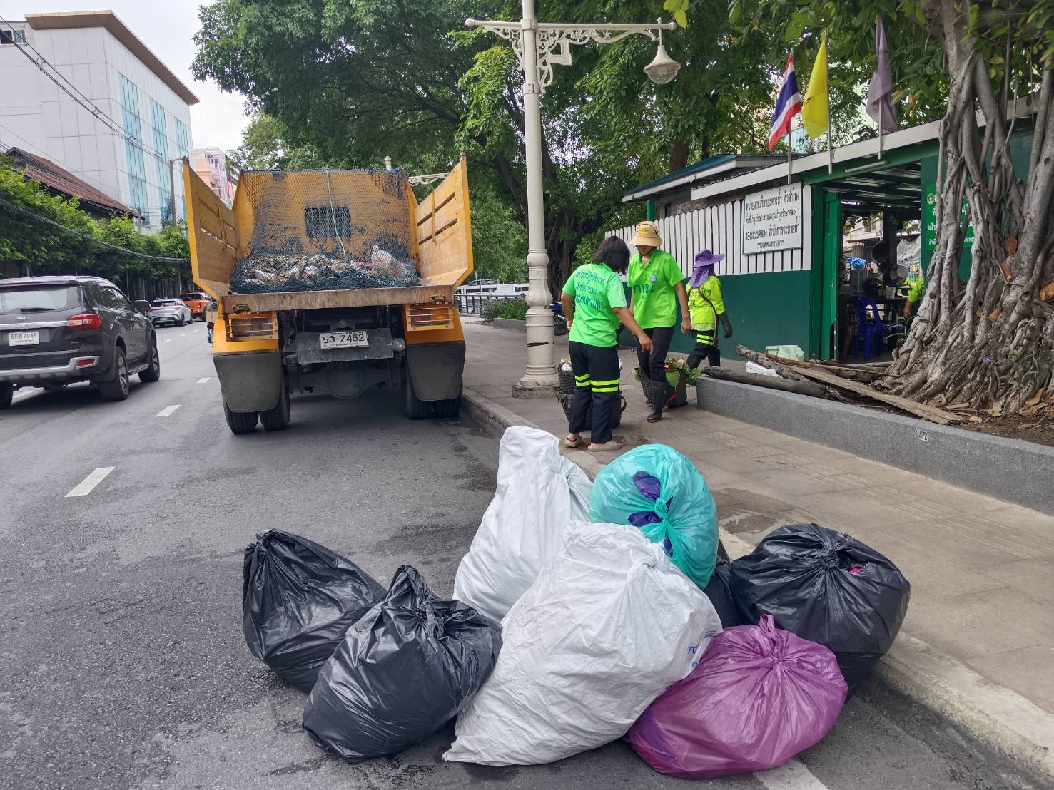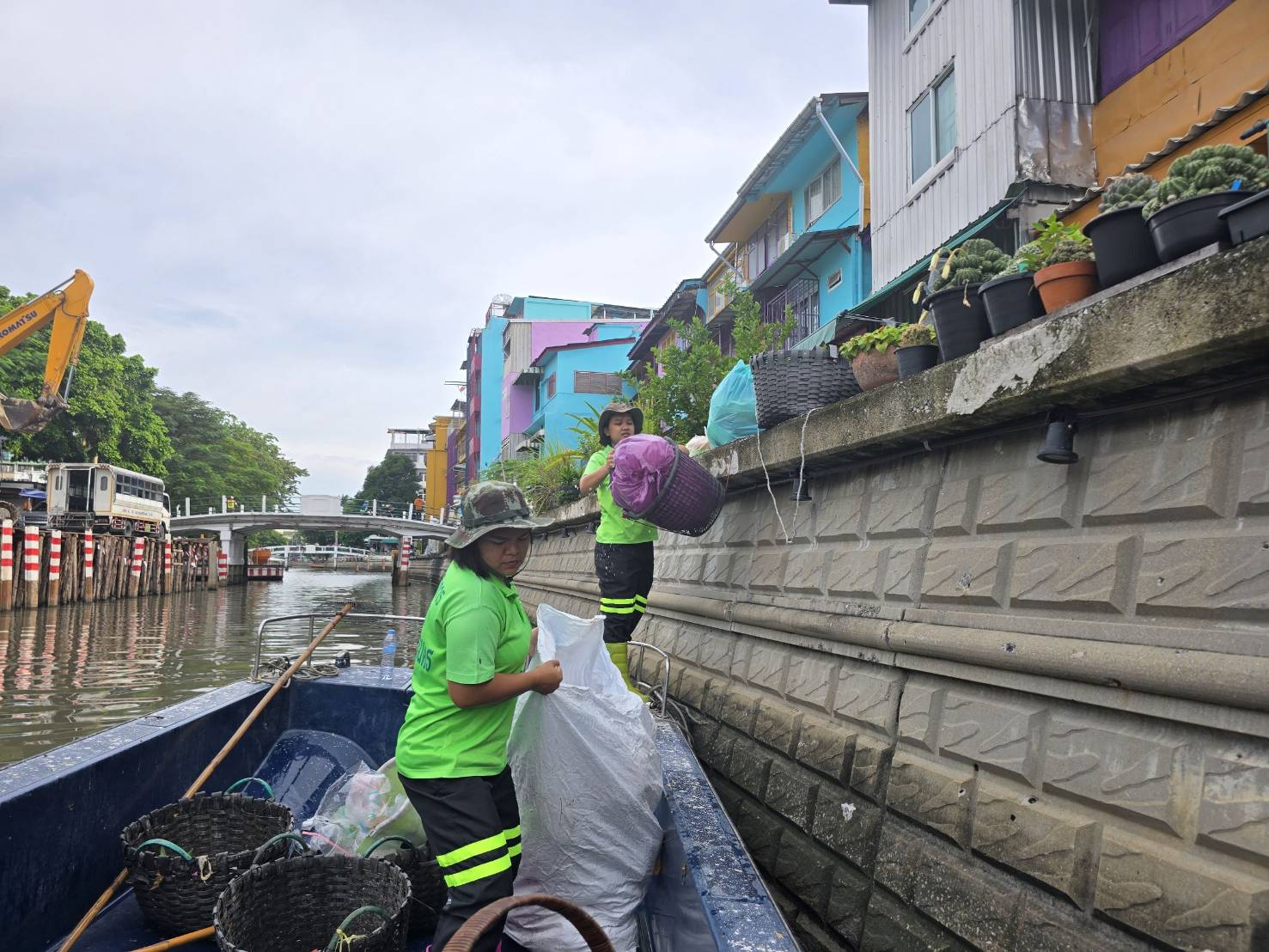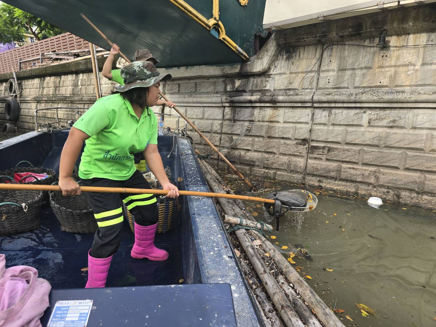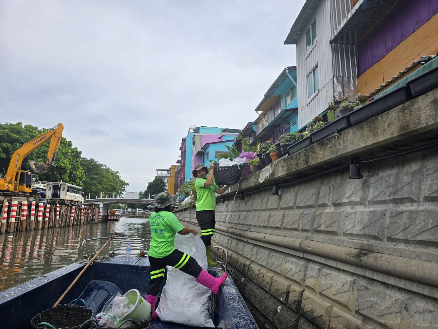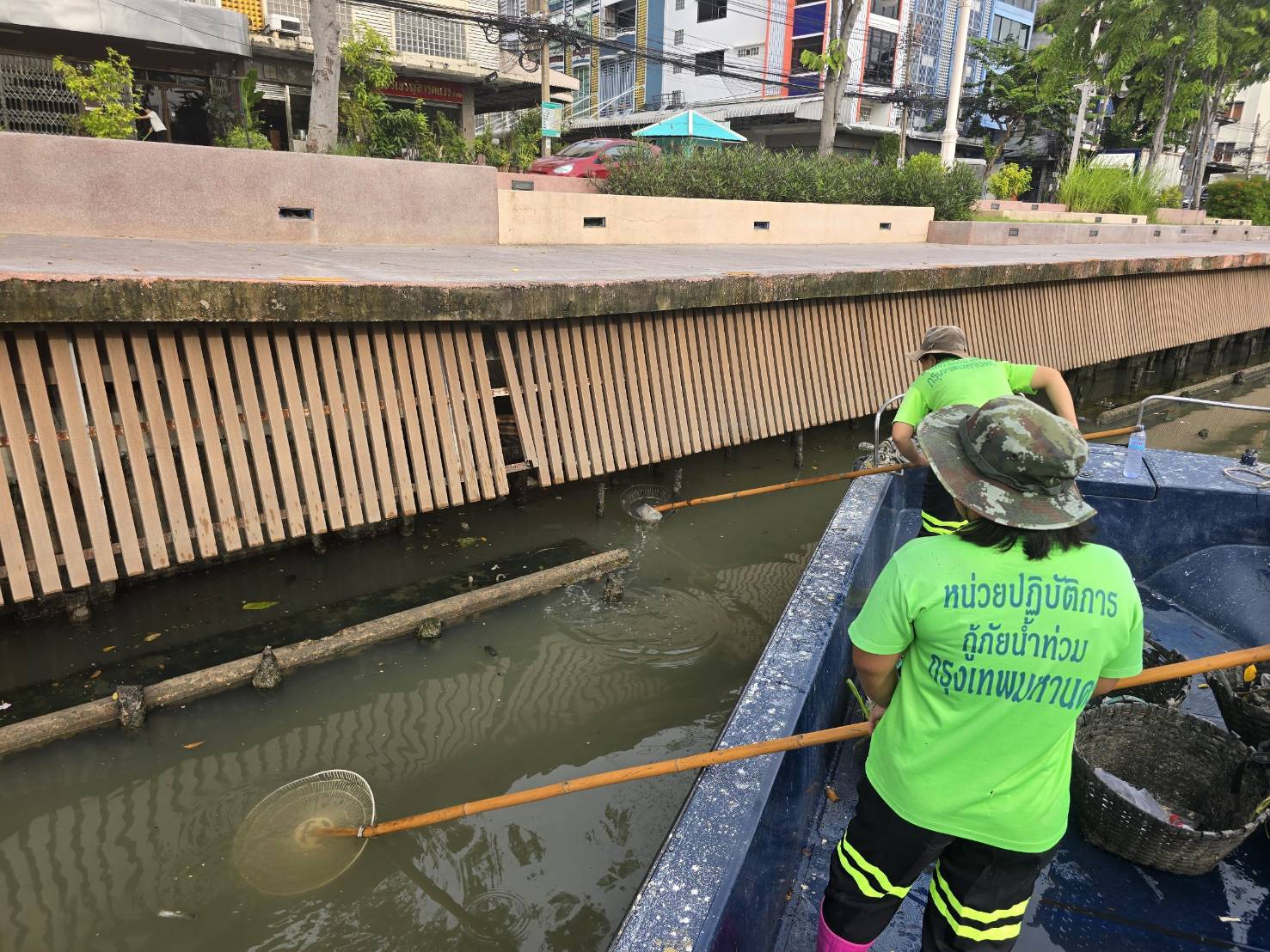 เจ้าหน้าที่ เก็บขยะช่วงสถานีสูบน้ำกรุงเกษมสะพานเจริญสวัสดิ์-สะพานนพวงศ์-สะพานกษัตริย์ศึกถึงสี่แยกมหานาค พื้นที่เขตปทุมวันและเขตป้อมปราบศรัตรูพ่าย