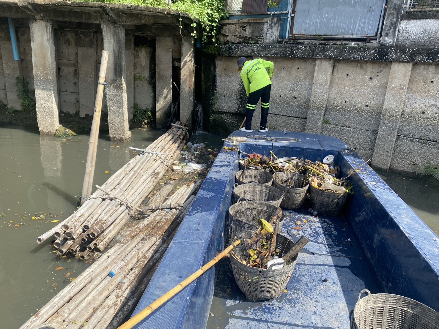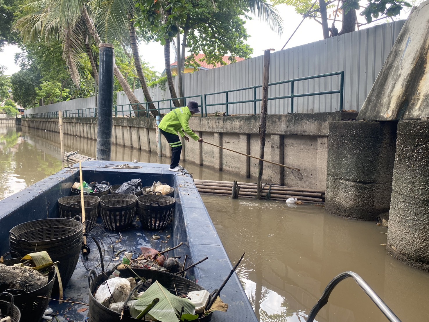 เจ้าหน้าที่ ดำเนินการตักขยะกำจัดวัชพืชคลองสามเสน เขตดุสิต