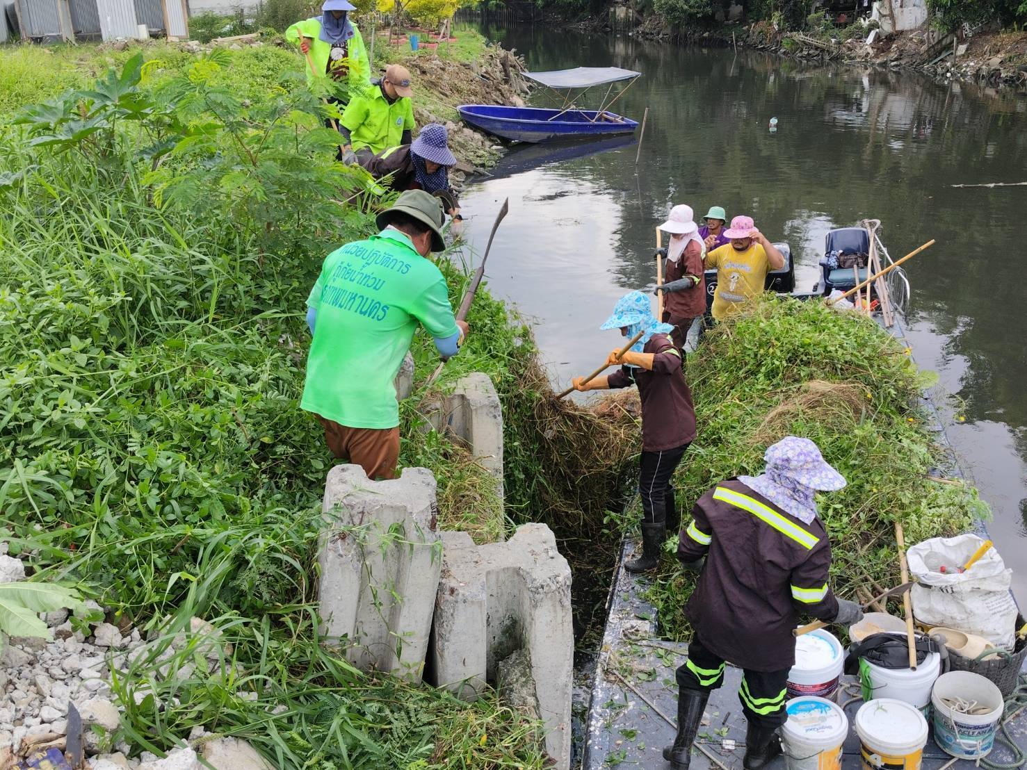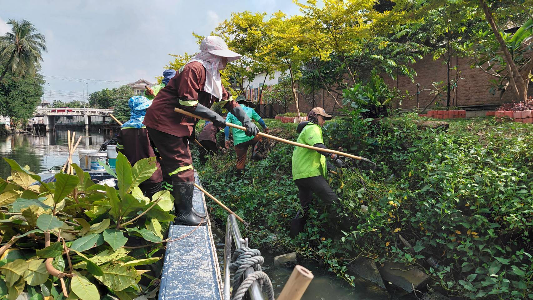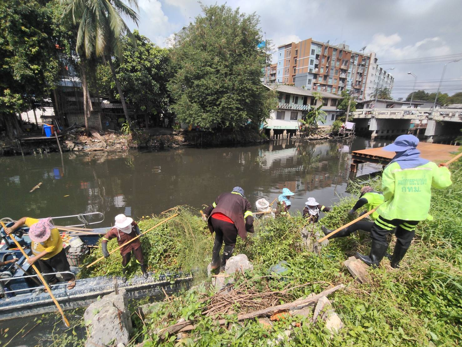 เจ้าหน้าที่ ตัดหญ้าและวัชพืชคลองลาดพร้าว ช่วงซอยลาดพร้าว64 พื้นที่เขตวังทองหลาง
