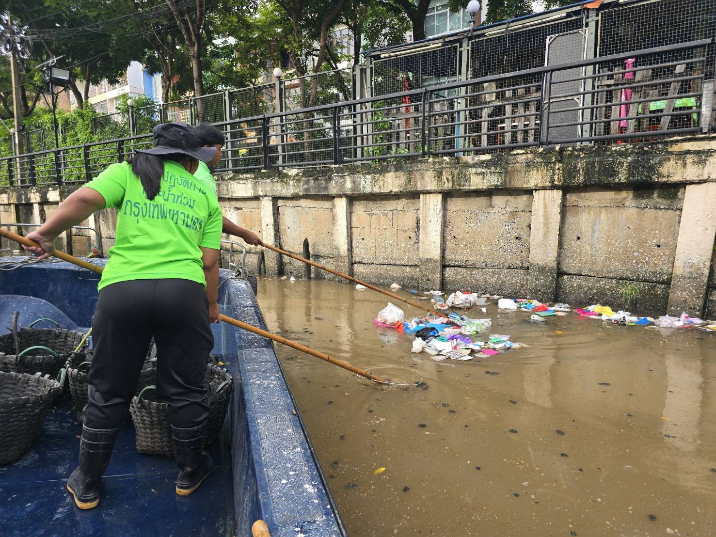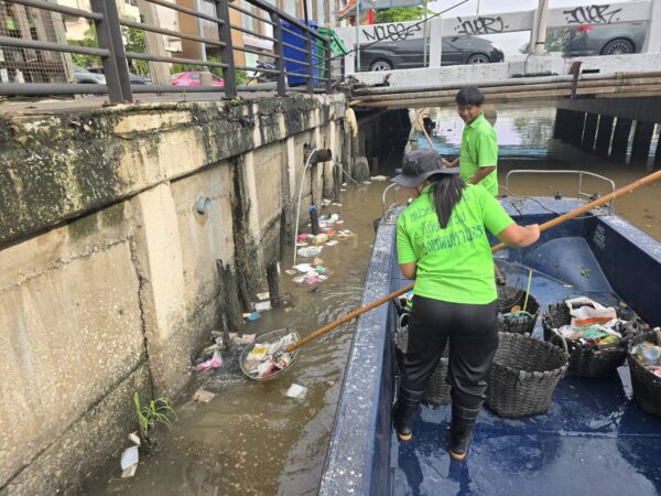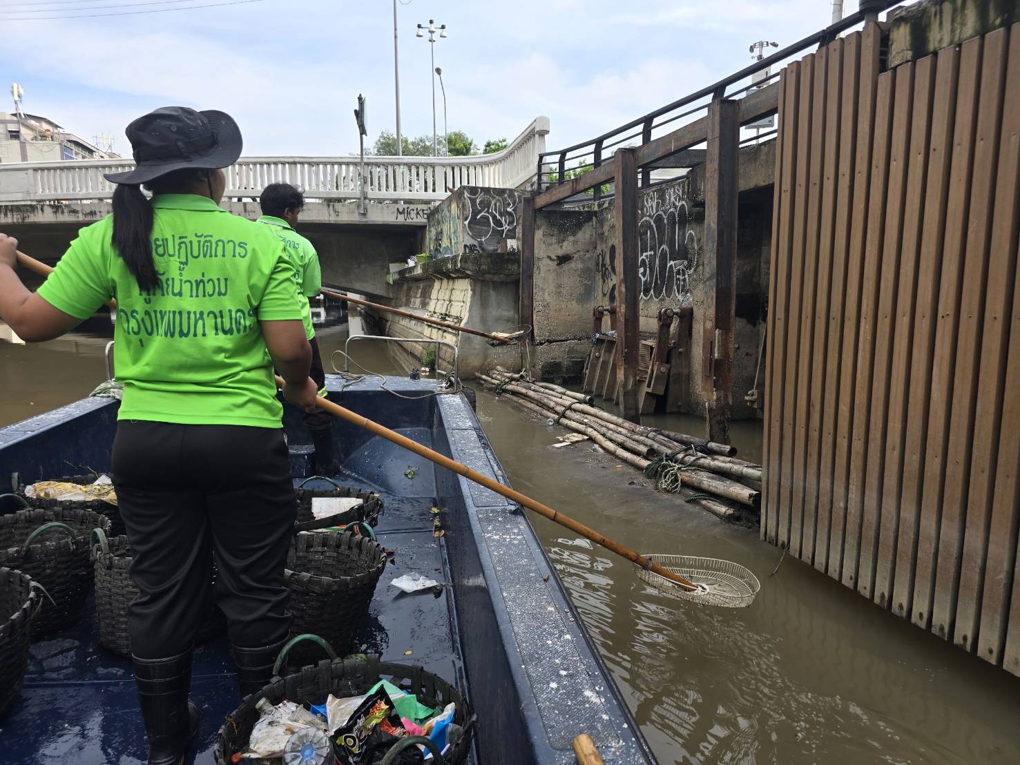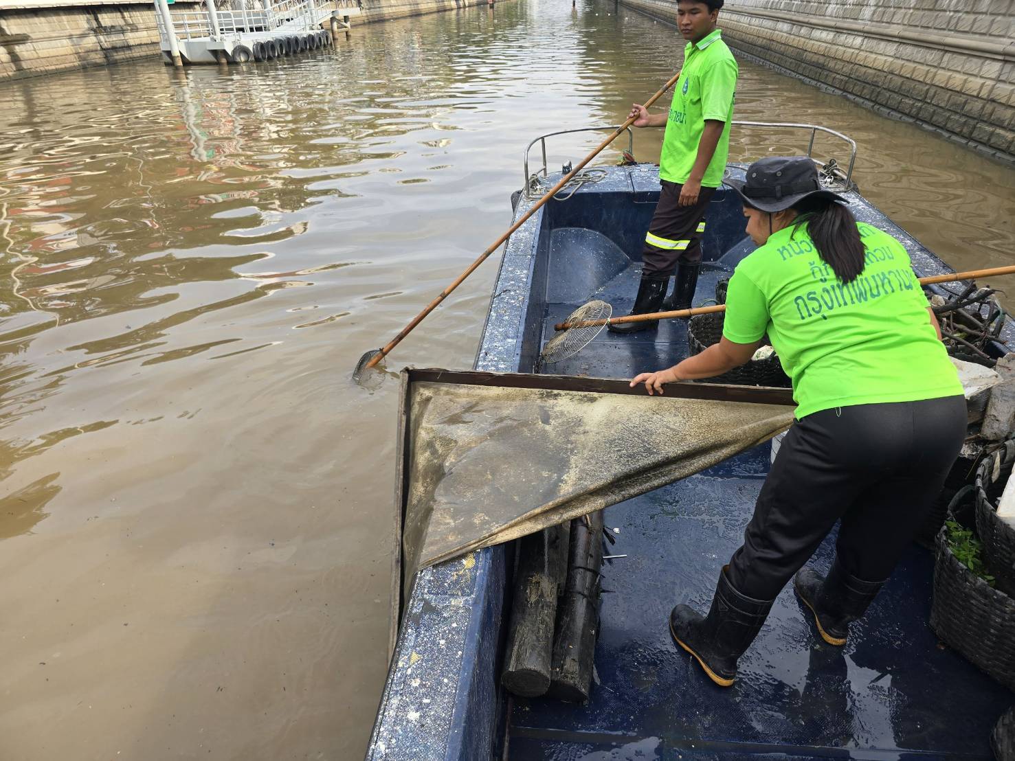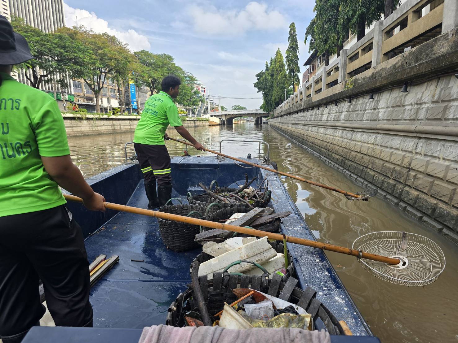 เจ้าหน้าที่ เก็บขยะช่วงสถานีสูบน้ำกรุงเกษมสะพานเจริญสวัสดิ์-สะพานนพวงศ์-สะพานกษัตริย์ศึกถึงสี่แยกมหานาค เขตปทุมวัน เขตป้อมปราบศัตรูพ่าย