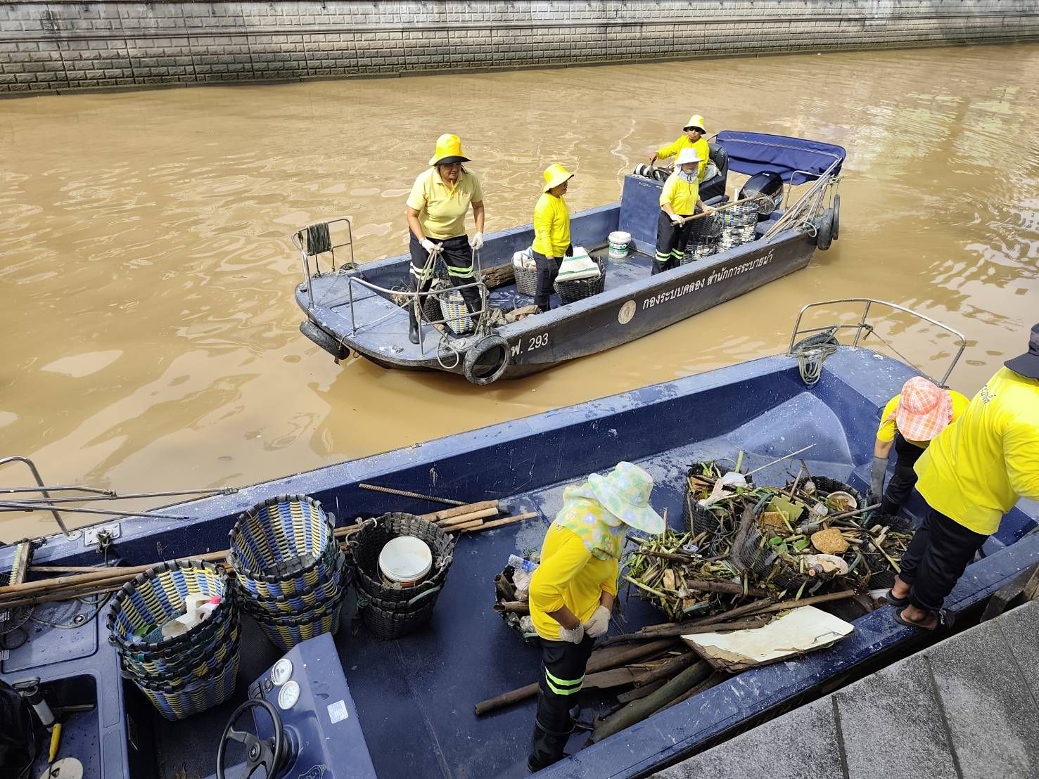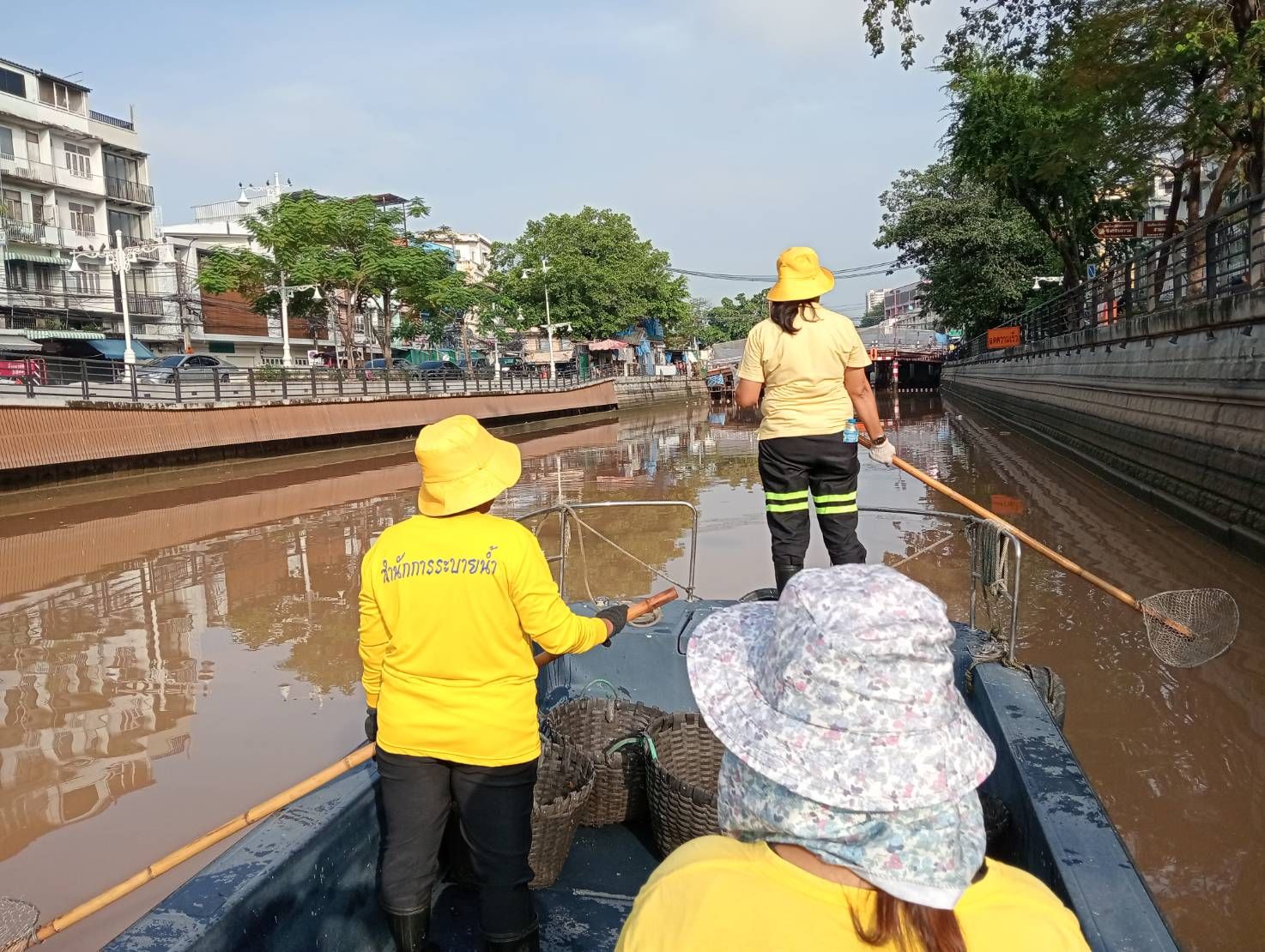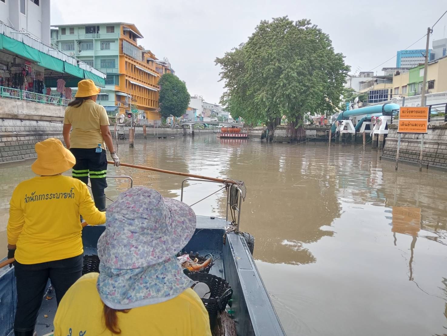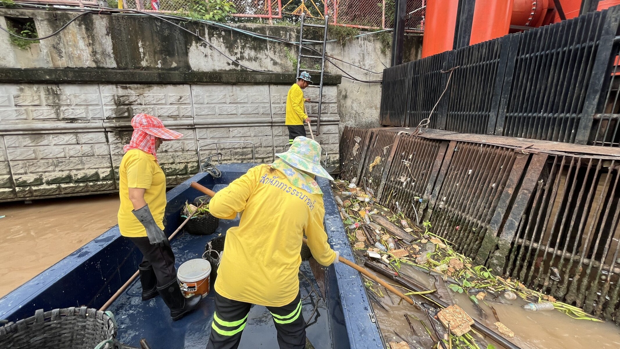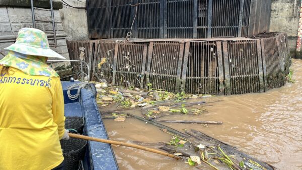เจ้าหน้าที่ ตักเก็บขยะและวัชพืชเก็บจาก ปตร.เทเวศร์ตลอดช่วงสะพานมัฆวานรังสรรค์ถึงสี่แยกมหานาค พื้นที่เขตพระนคร เขตป้อมปราบศัตรูพ่าย
