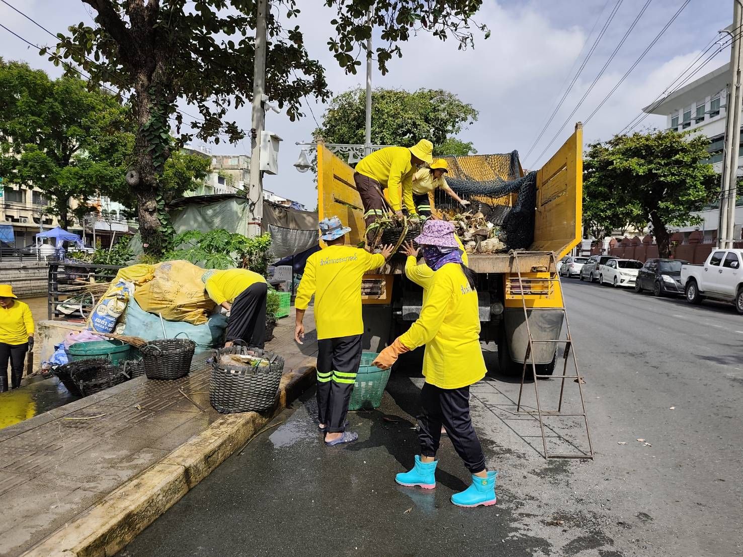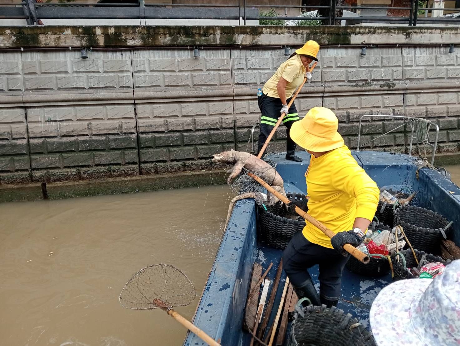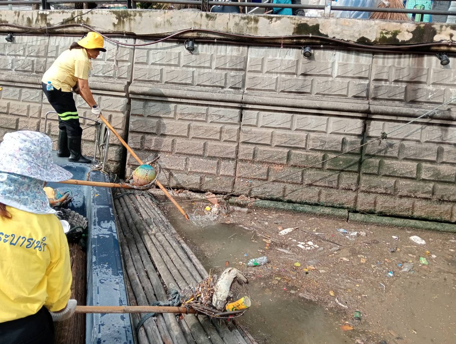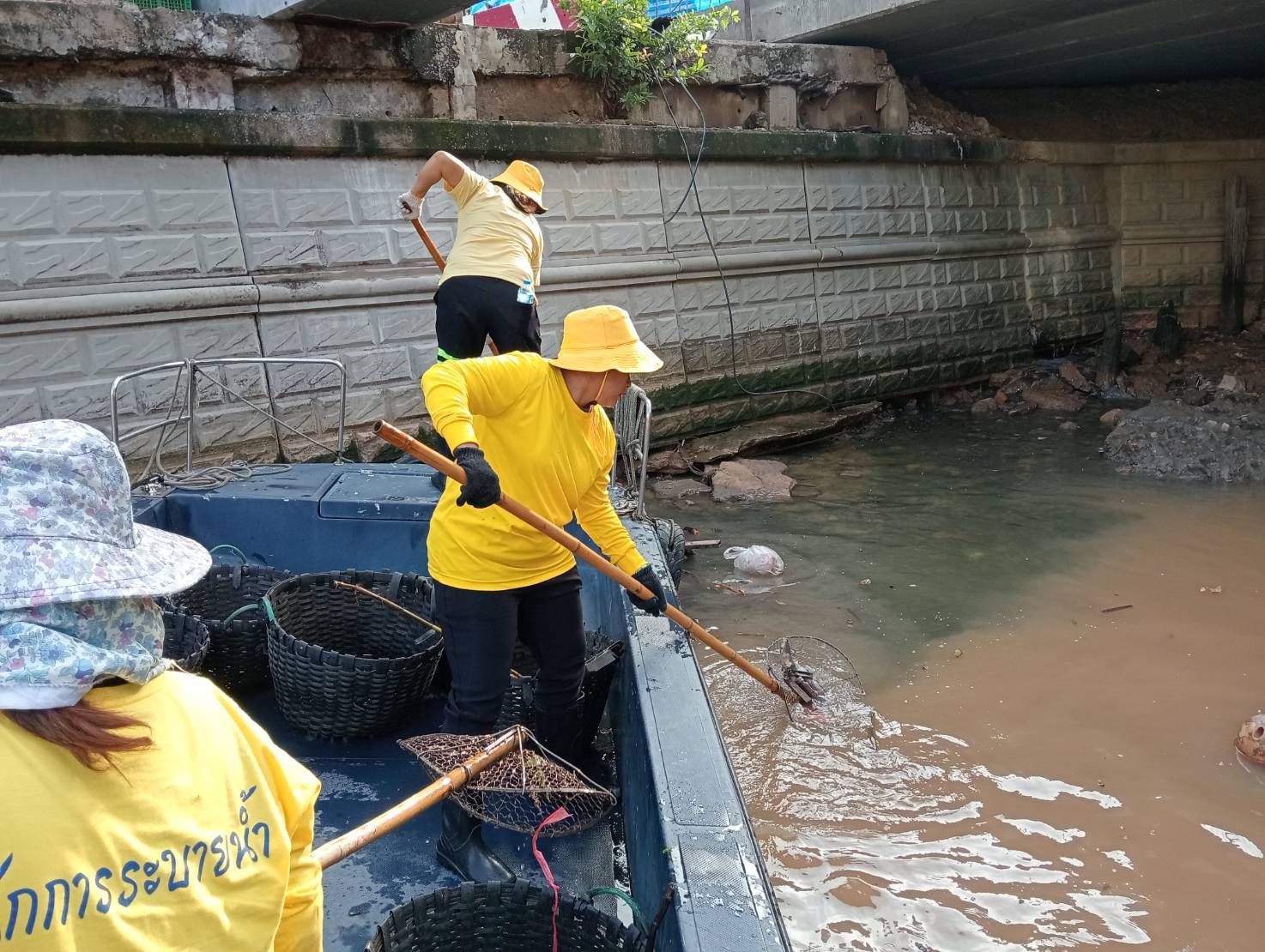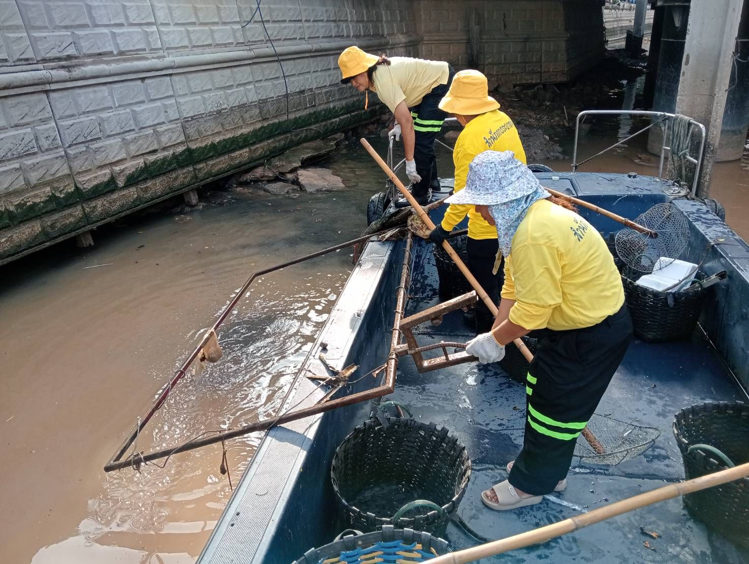 เจ้าหน้าที่ ตักเก็บขยะและวัชพืชเก็บจาก ปตร.เทเวศร์ตลอดช่วงสะพานมัฆวานรังสรรค์ถึงสี่แยกมหานาค พื้นที่เขตพระนคร เขตป้อมปราบศัตรูพ่าย