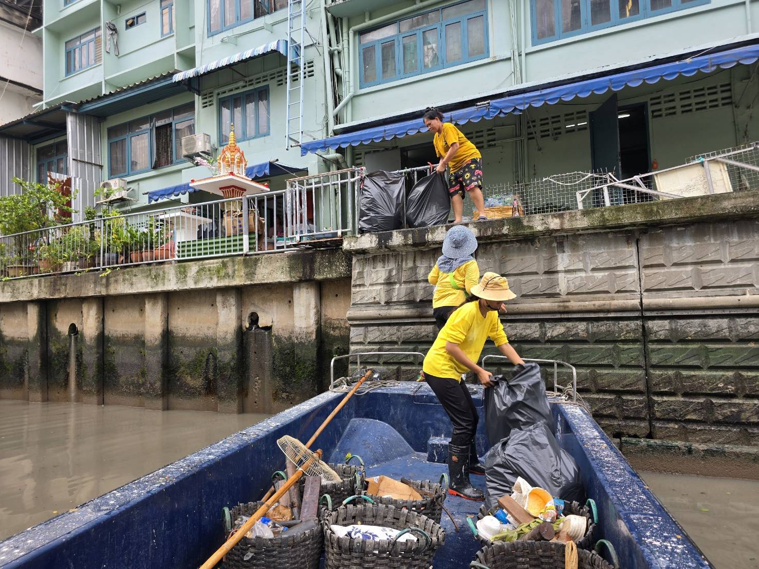 เจ้าหน้าที่ เก็บขยะช่วงสถานีสูบน้ำกรุงเกษมสะพานเจริญสวัสดิ์-สะพานนพวงศ์-สะพานกษัตริย์ศึกถึงสี่แยกมหานาค