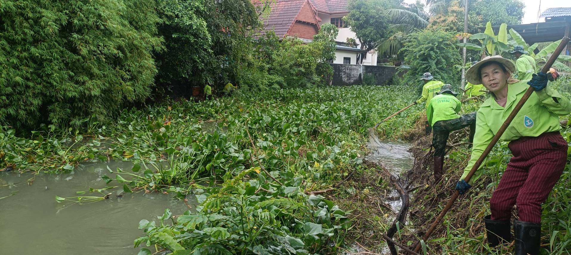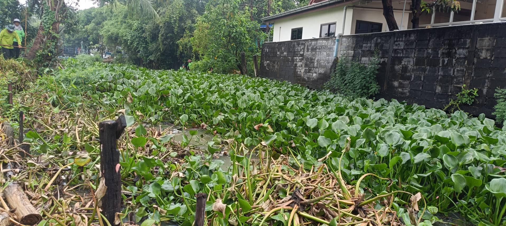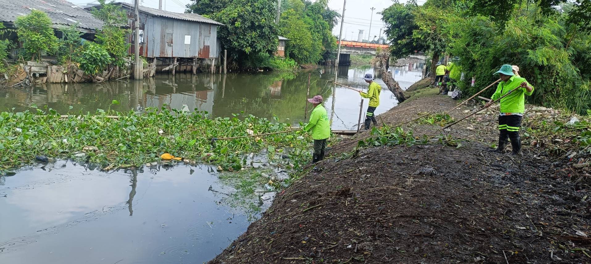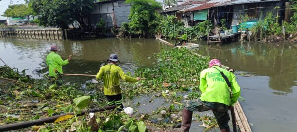 เจ้าหน้าที่ จัดเก็บขยะวัชพืชตัดหญ้า คลองจระเข้ขบ ช่วงถนนคู่ขนานกาญจนาภิเษก เขตประเวศ