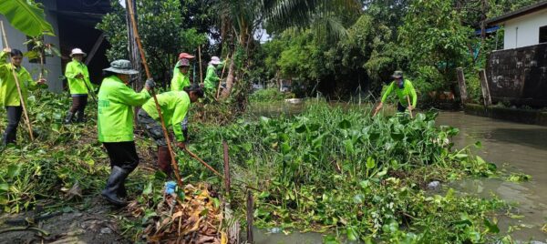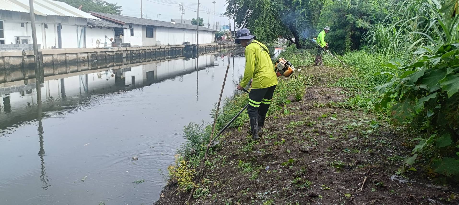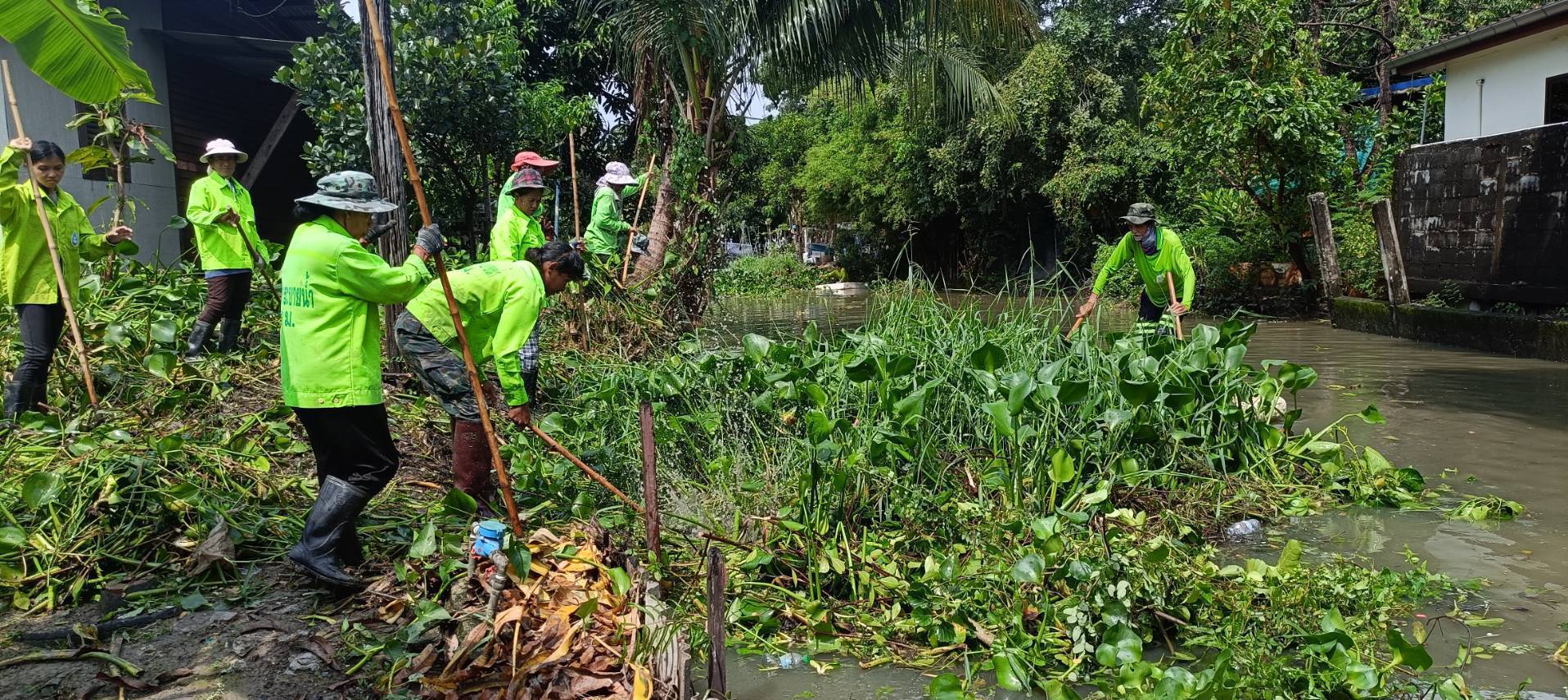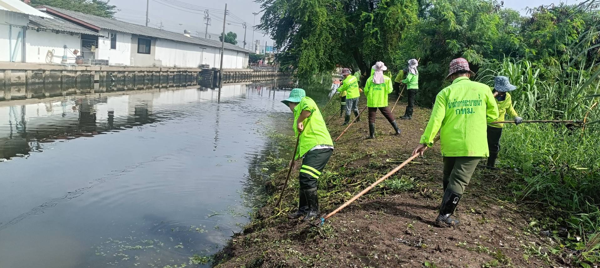 เจ้าหน้าที่ จัดเก็บขยะวัชพืชตัดหญ้า คลองจระเข้ขบ ช่วงถนนคู่ขนานกาญจนาภิเษก เขตประเวศ