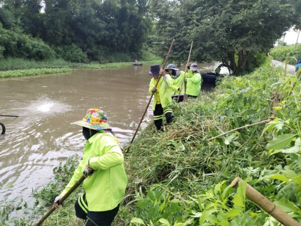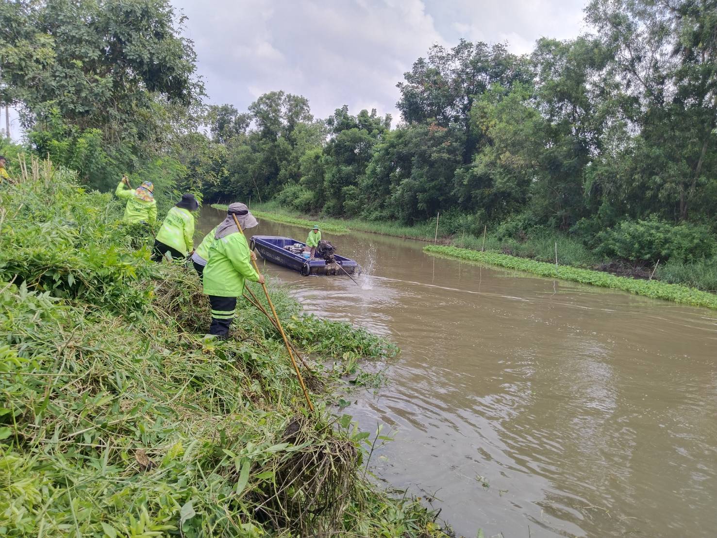 สำนักการระบายน้ำ จัดเก็บขยะและวัชพืชคลองพระราชดำริ2 บริเวณซอยวัดสุขใจ15 เขตคลองสามวา