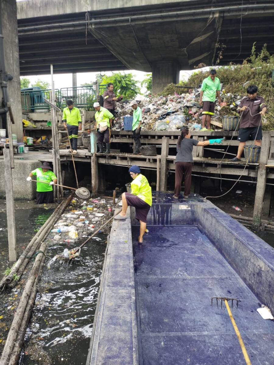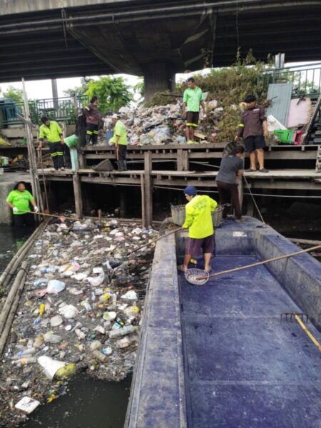 เจ้าหน้าที่ ตักขยะและวัชพืชคลองเตย(คลองหัวลำโพง)ช่วงสถานีสูบน้ำคลองเตยถึงตลาดคลองเตย พื้นที่เขตคลองเตย