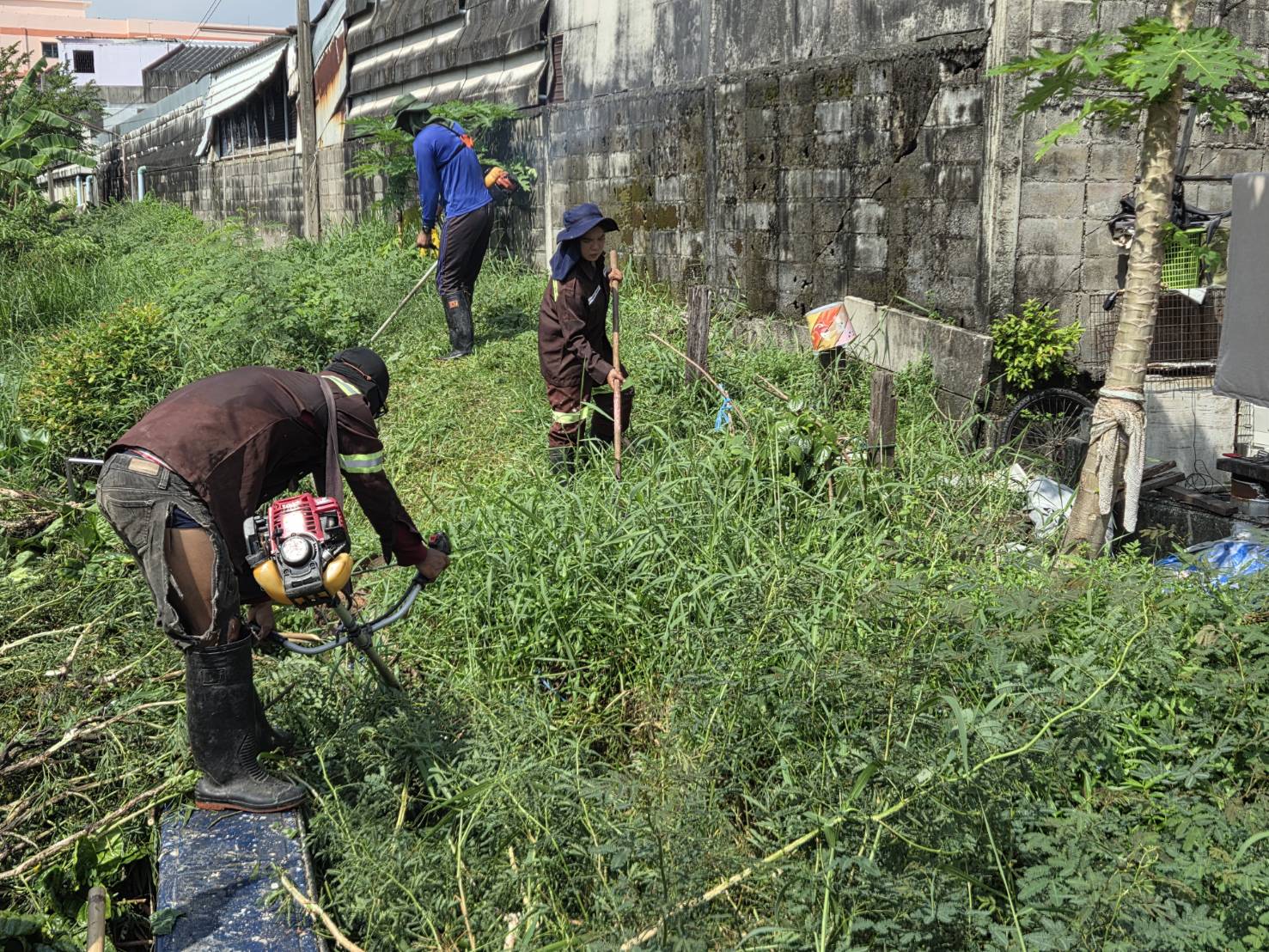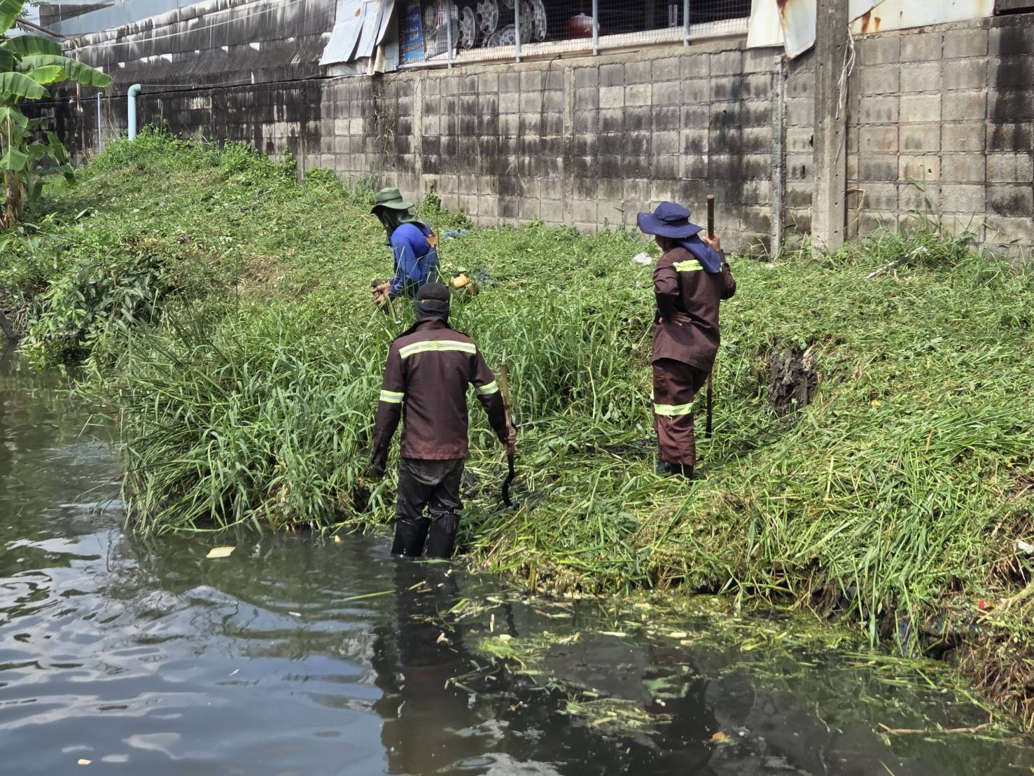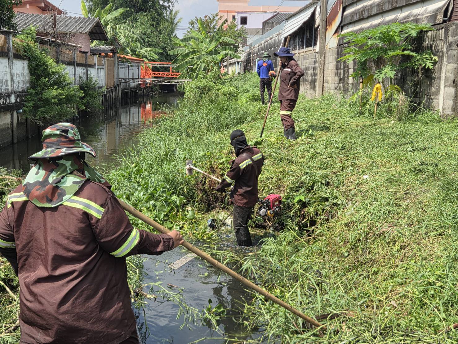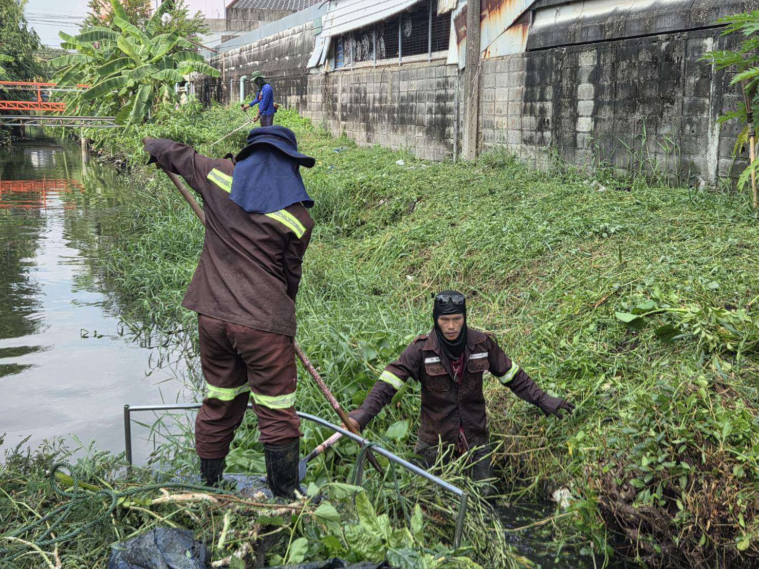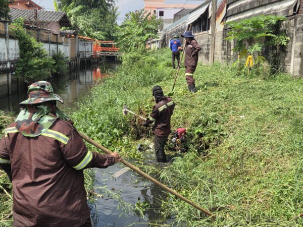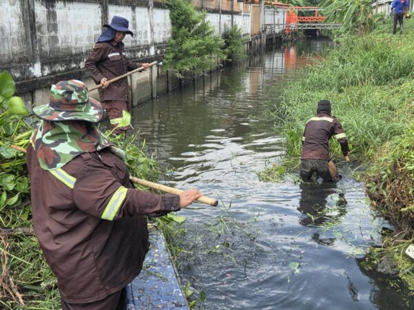 เจ้าหน้าที่ เก็บขยะตัดหญ้าและกิ่งไม้ คลองบางอ้าย เขตบางแค