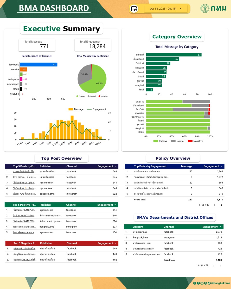 ภาพรวมการกล่าวถึงกรุงเทพมหานครในสื่อออนไลน์ วันที่ 15 ต.ค. 68