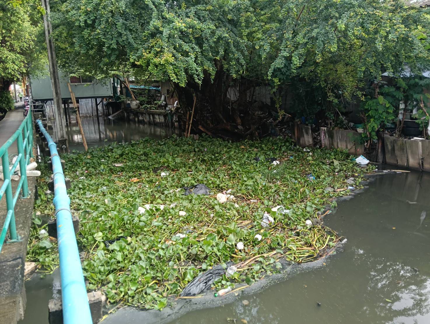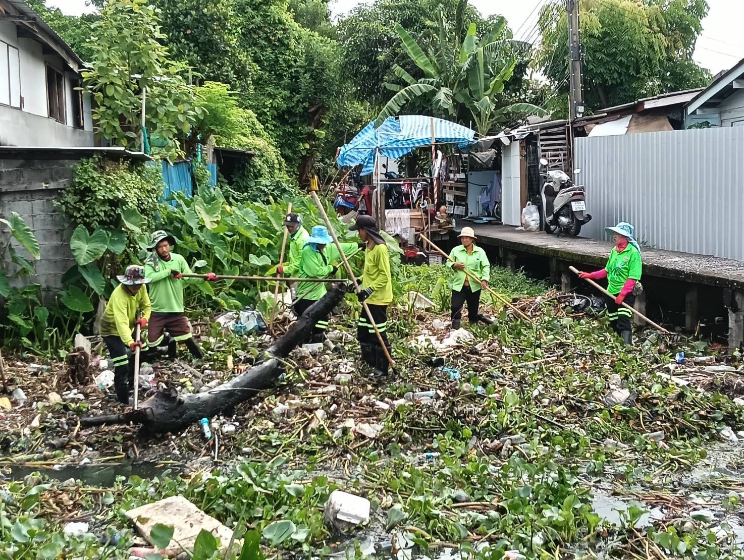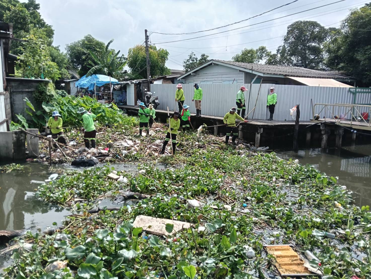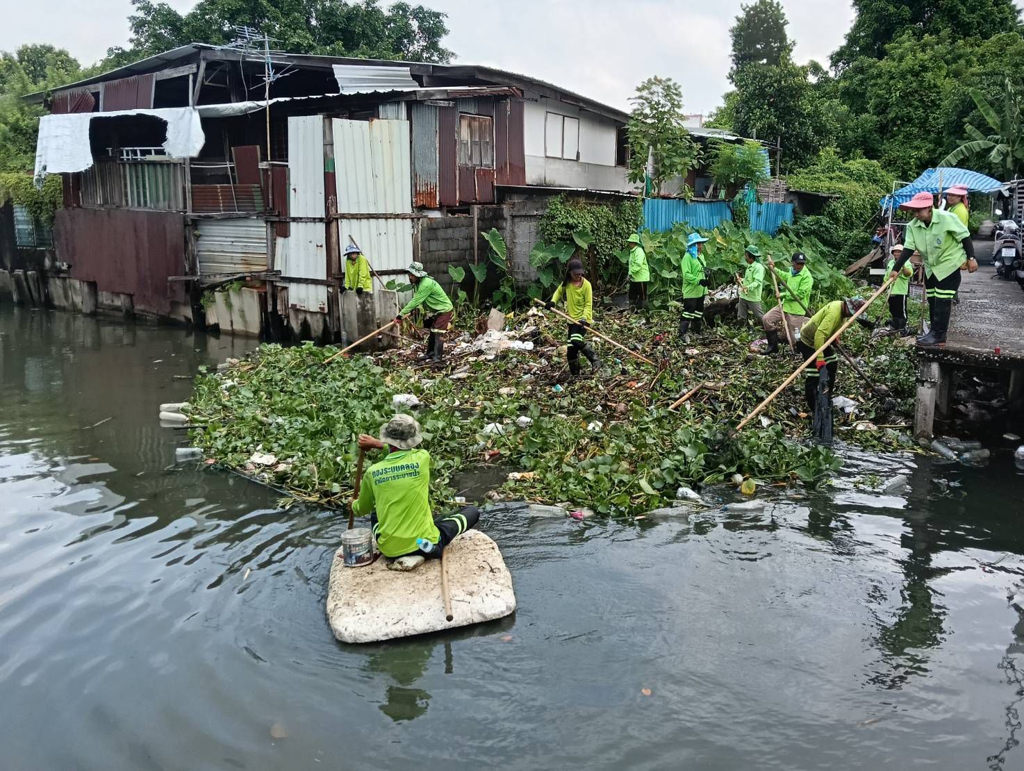 เจ้าหน้าที่ เก็บขยะวัชพืชคลองศาลาลอยบน ช่วงแพประตูระบายน้ำศาลาลอยบน เขตประเวศ