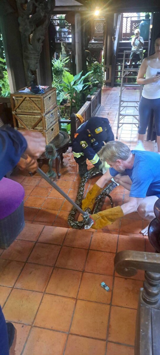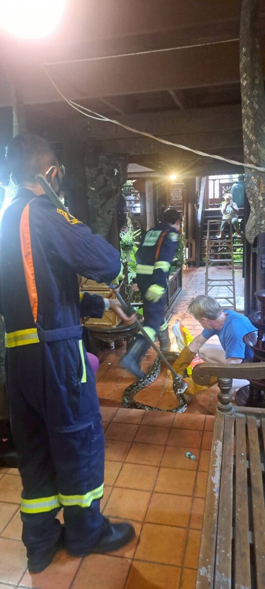 เจ้าหน้าที่จากสถานีดับเพลิงและกู้ภัยลาดยาว กปก.3 ชุดปฏิบัติการที่ 1 ออกช่วยเหลือประชาชน เป็นเหตุ 501 เป็นงูเหลือมขนาด 3.5 เมตร ที่เกิดเหตุบ้านเลขที่ 131/5 ซอยแจ้งวัฒนะ 15 แขวงทุ่งสองห้อง เขตหลักสี่ กทม. เจ้าหน้าที่ 2 นาย