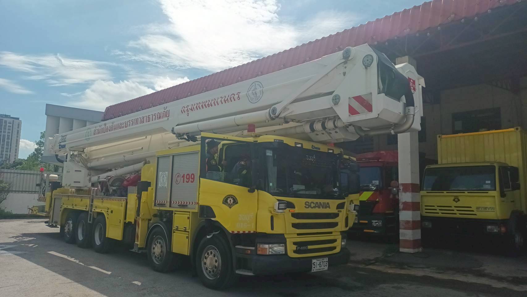 ส.ดพ.ธนบุรี กปก.5 วันที่ 15 ตุลาคม 2568 นายไชยวัฒน์ ไชยบุญเรือง หน.ส.ดพ.ธนบุรี มอบให้นายรุ่งโรจน์ บุญกา พนง.ป้องกันฯอาวุโส ควบคุมเจ้าหน้าที่ชุดปฏิบัติการที่ 4 ฝึกการใช้และตรวจเช็คบำรุงรักษา รถหอน้ำดับเพลิงพร้อมกระเช้า ขนาดความสูงไม่น้อยกว่า 90 เมตร (016-1) ภายใน ส.ดพ.บางแค เพื่อเตรียมความพร้อมในการช่วยเหลือประชาชน