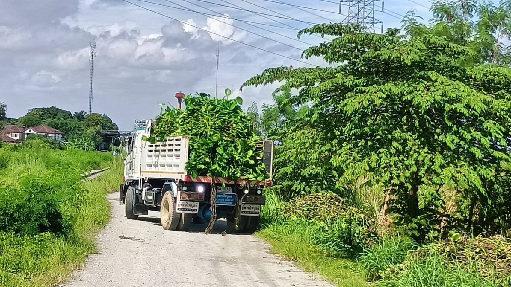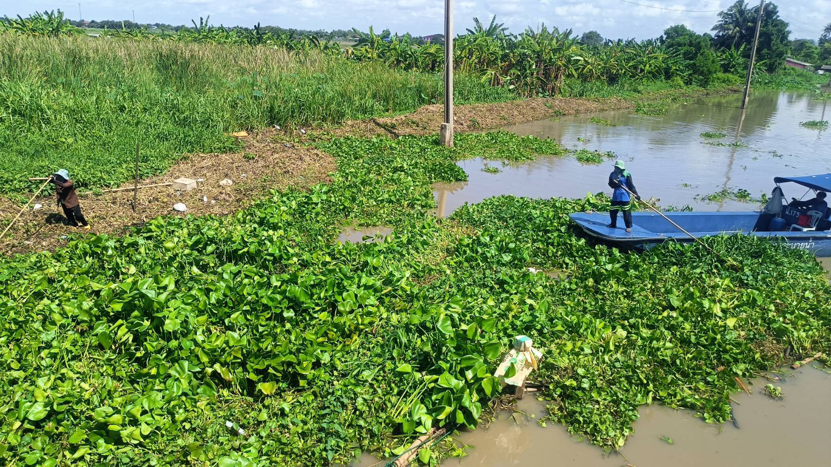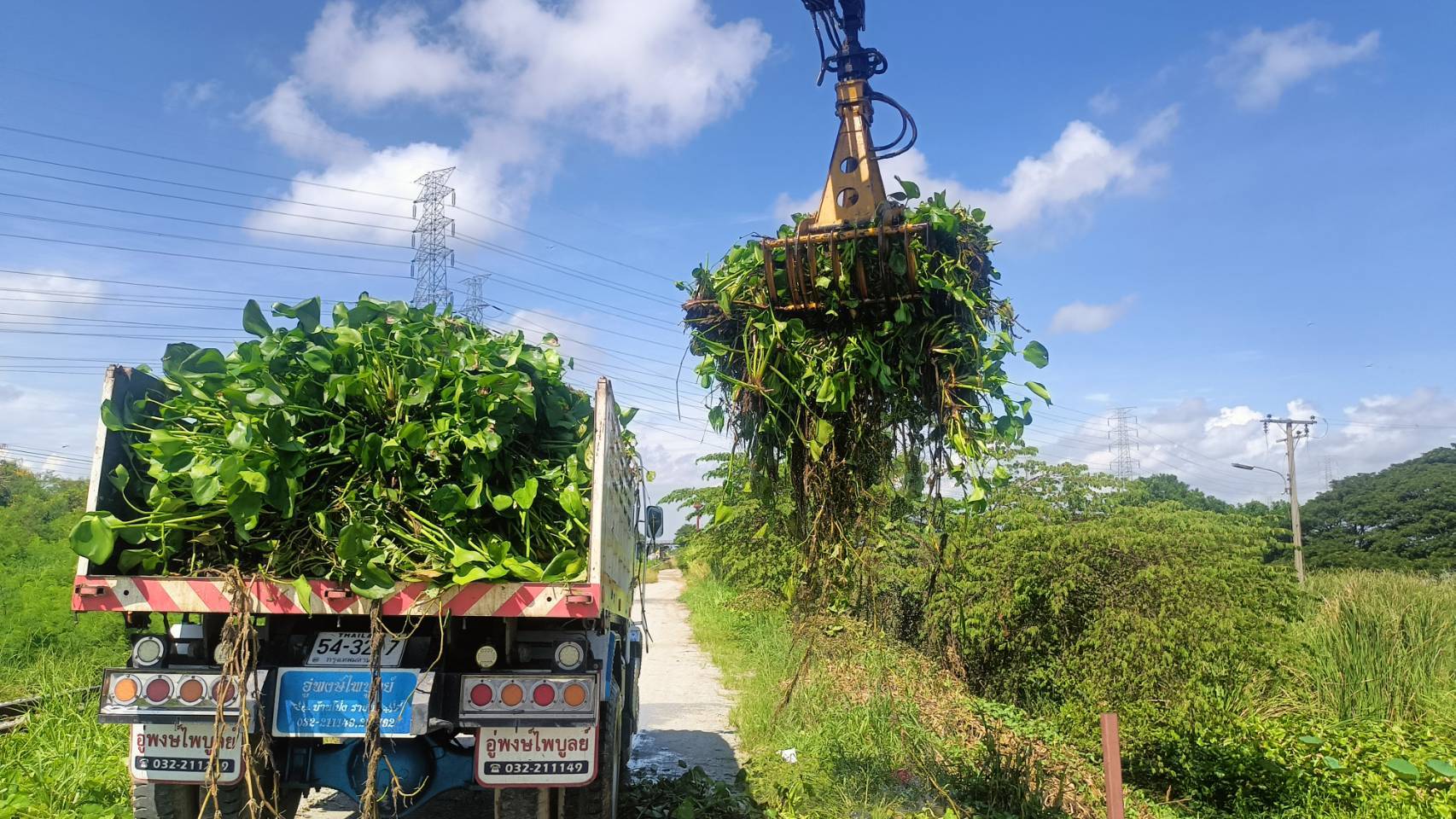 เจ้าหน้าที่ จัดเก็บวัชพืชคลองหลวงแพ่ง ช่วงสะพานรถไฟ พื้นที่เขตลาดกระบัง