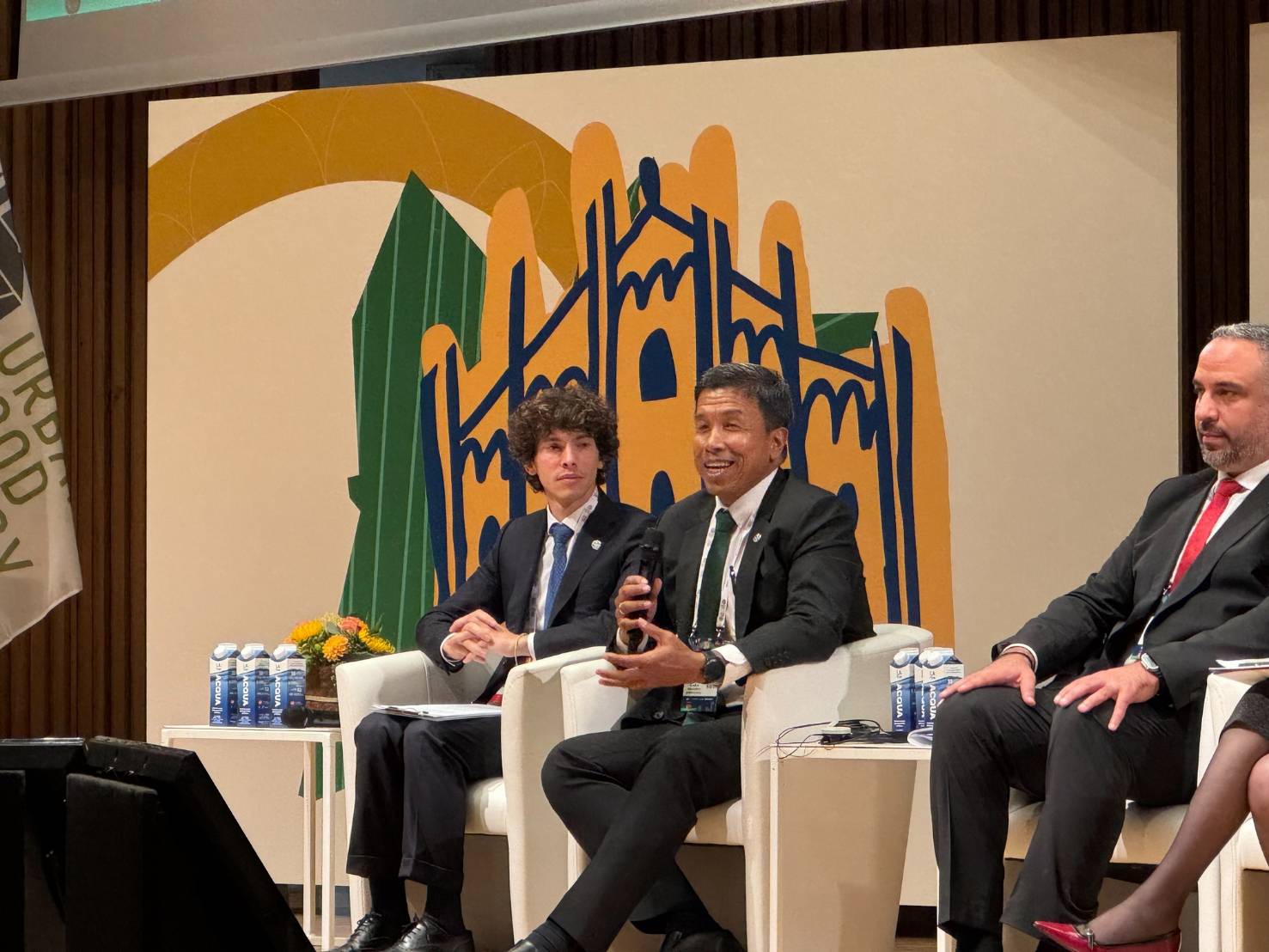 ผู้ว่าฯ ชัชชาติได้เข้าร่วม การอภิปรายระดับผู้นำเมือง ร่วมกับ Mr. Maher Canawati นายกเทศมนตรีเมืองเบธเลแฮม สาธารณรัฐปาเลสไตน์ Ms. Anna Scavuzzo นายกเทศมนตรีนครมิลาน สาธารณรัฐอิตาลี Ms. Audrey Pulvar รองนายกเทศมนตรีกรุงปารีส สาธารณรัฐฝรั่งเศส และ Mr. Manuel de Araújo นายกเทศมนตรีเมืองคูลิมาเน สาธารณรัฐโมซัมบิก โดยผู้ว่าฯ ชัชชาติได้ถ่ายทอดประสบการณ์ของกรุงเทพมหานครในการขับเคลื่อนนโยบายด้านอาหารอย่างเป็นรูปธรรม ซึ่งเริ่มจากจากการดูแลกลุ่มคนไร้บ้านช่วงหลังโควิด-19 ผ่านการจัดจุดแจกอาหารแบบนำกลับบ้าน จากนั้นได้นำไปสู่การจัดตั้งคณะทำงานพิเศษ (Special Team) ที่บูรณาการหน่วยงานด้านนโยบายอาหารต่าง ๆ เข้าด้วยกัน โดยมีที่ปรึกษาฯ พรพรหม เป็นผู้แทนผู้ว่าราชการกรุงเทพมหานครในคณะทำงาน แนวทางที่สอง คือ การจัดทำยุทธศาสตร์ (Strategy) โดยการออกนโยบายอาหารกรุงเทพมหานคร พ.ศ. 2566–2570 ภายใต้วิสัยทัศน์ “กรุงเทพมหานครเป็นเมืองอาหารแห่งความเสมอภาค มีคุณภาพ และยั่งยืนสำหรับทุกคน” พร้อมทั้งสร้างการมีส่วนร่วม (Synergy) จากทุกภาคส่วน ทั้งภาครัฐ เอกชน และประชาสังคม ตัวอย่างที่เป็นรูปธรรม คือ โครงการ BKK Food Bank Center ที่ดำเนินงานโดยไม่ใช้งบประมาณของรัฐ แต่ขับเคลื่อนด้วยความร่วมมือจากภาคีเครือข่ายหลายภาคส่วน สะท้อนถึงความเชื่อมั่นและพลังของการมีส่วนร่วมในสังคม