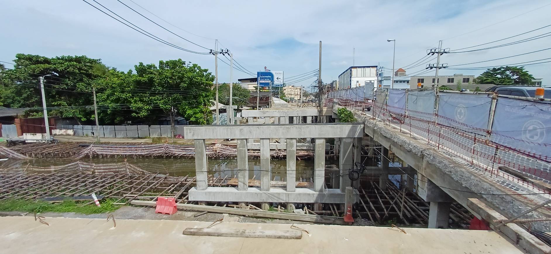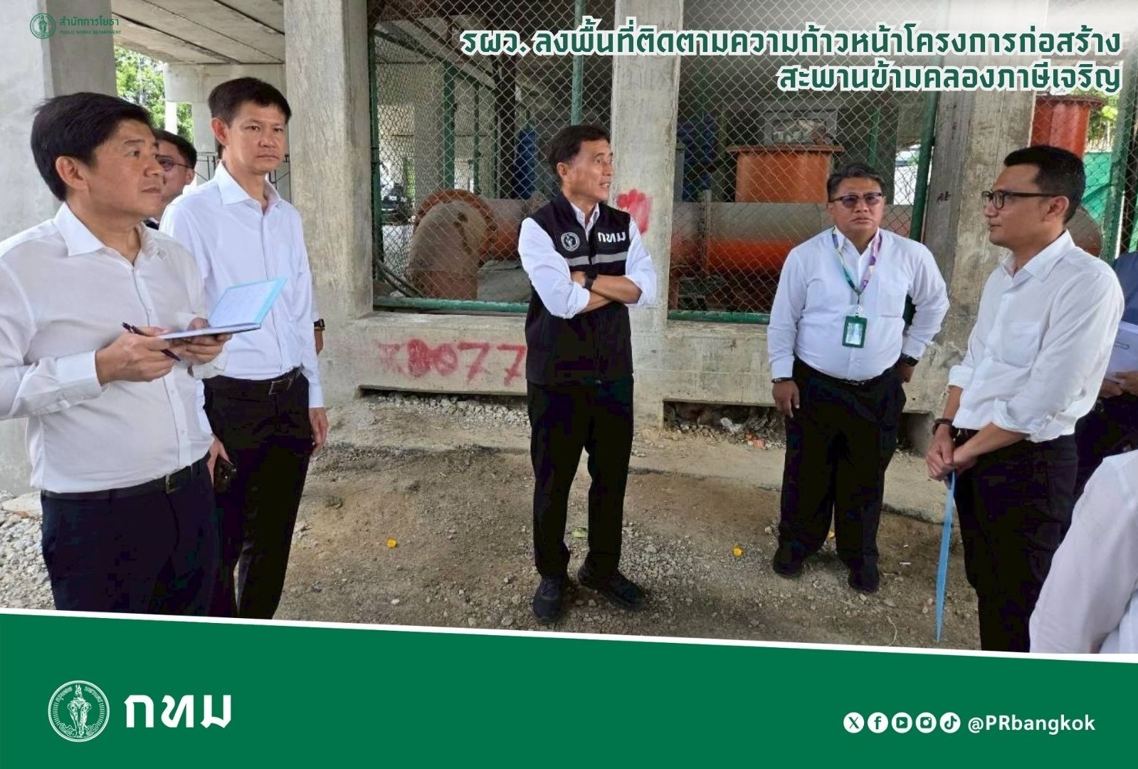 หลังจากนั้น รองผู้ว่าราชการกรุงเทพมหานคร ลงพื้นที่ติดตามความก้าวหน้าโครงการก่อสร้างสะพานข้ามคลองภาษีเจริญ ถนนมาเจริญ-ถนนบางบอน 5 ซึ่งโครงการก่อสร้างสะพานข้ามคลองภาษีเจริญ ถนนมาเจริญ-ถนนบางบอน 5 เป็นการก่อสร้างขยายสะพานข้ามคลองภาษีเจริญ เพื่อเพิ่มผิวจราจรบริเวณจุดตัดทางแยก ถนนเลียบคลองภาษีเจริญฝั่งเหนือ ทางแยกถนนเลียบคลองภาษีเจริญฝั่งใต้ และปรับปรุงทางเท้าพร้อมระบบระบายน้ำ ระบบไฟฟ้าแสงสว่าง ป้ายและเครื่องหมายจราจร และงานที่เกี่ยวข้อง รวมทั้งก่อสร้างสะพานลอยคนเดินข้ามคลองภาษีเจริญ ปัจจุบันผลการดำเนินการร้อยละ 31.03 คาดว่าจะสามารถเปิดใช้งานได้ภายในเดือนมีนาคม 2569 ทั้งนี้ รองผู้ว่าราชการกรุงเทพมหานคร ได้กำชับให้ผู้รับจ้างเร่งรัดดำเนินการให้แล้วเสร็จโดยเร็ว และสั่งการให้ผู้ควบคุมงานควบคุมการก่อสร้างให้เป็นไปตามแผนงานโดยเคร่งครัด รวมถึงหาแนวทางในการเร่งรัดการก่อสร้างให้แล้วเสร็จตามกำหนด