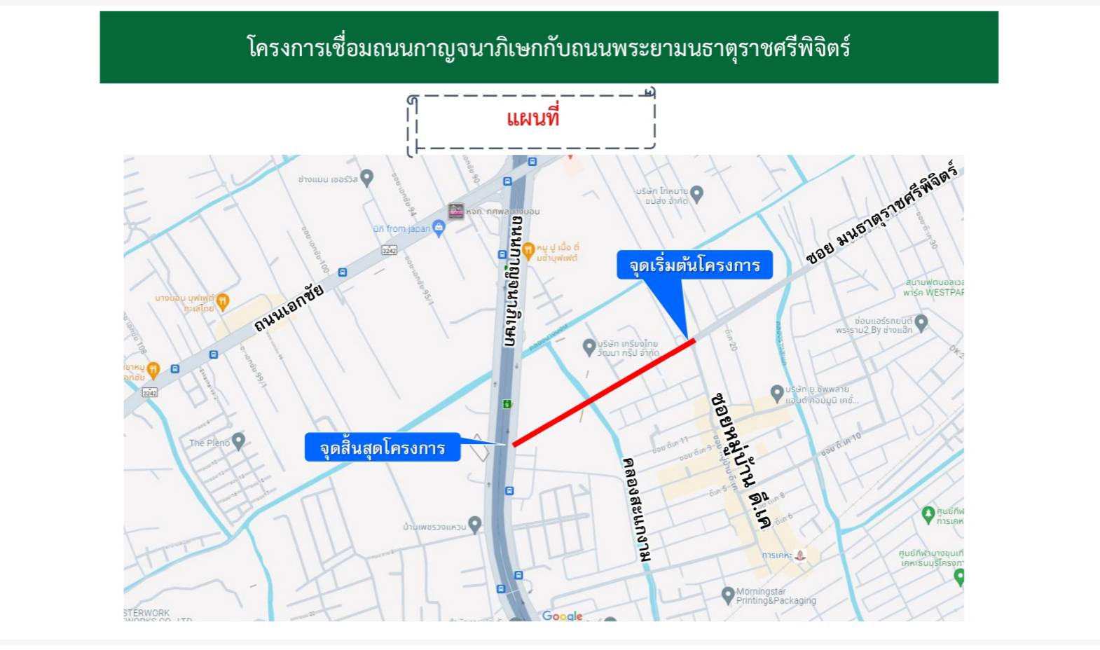 จากนั้น รองผู้ว่าราชการกรุงเทพมหานคร ร่วมกับนายณรงค์ศักดิ์ ม่วงศิริ ส.ก.เขตบางบอน และนายสารัช ม่วงศิริ ส.ก.เขตบางขุนเทียน พร้อมด้วยสำนักการโยธาและสำนักงานเขตบางบอน ลงพื้นที่ถนนพระยามนธาตุราชศรีพิจิตร์ เขตบางบอน เพื่อผลักดันโครงการเชื่อมถนนพระยามนธาตุราชศรีพิจิตร์-กาญจนาภิเษก