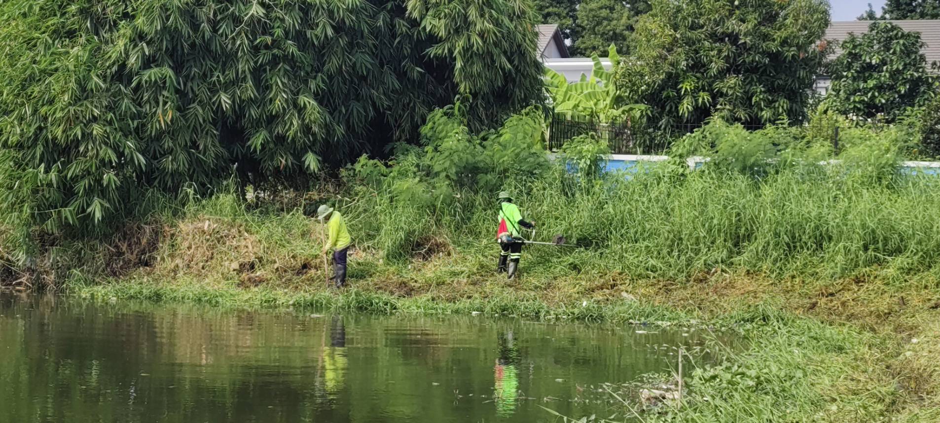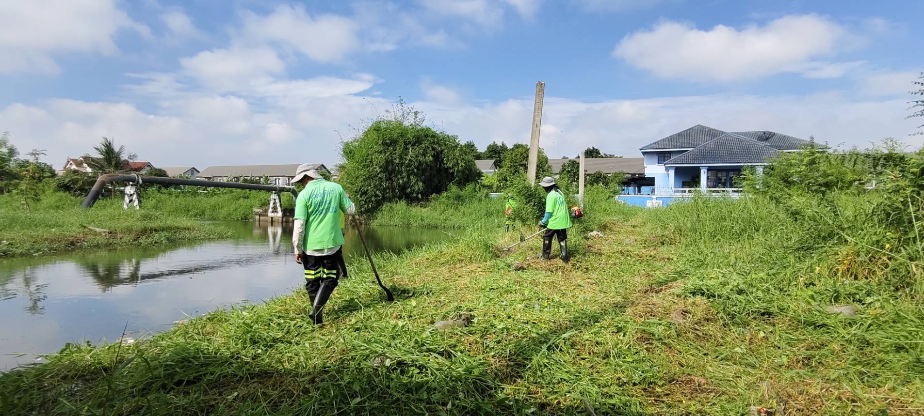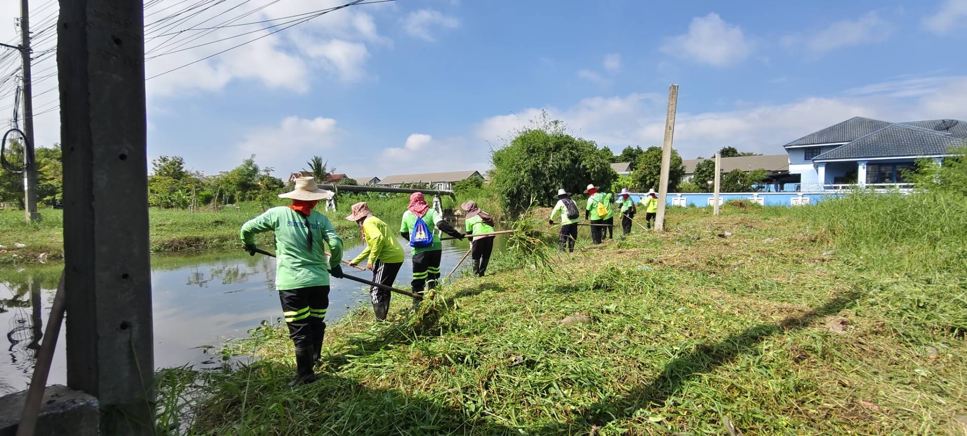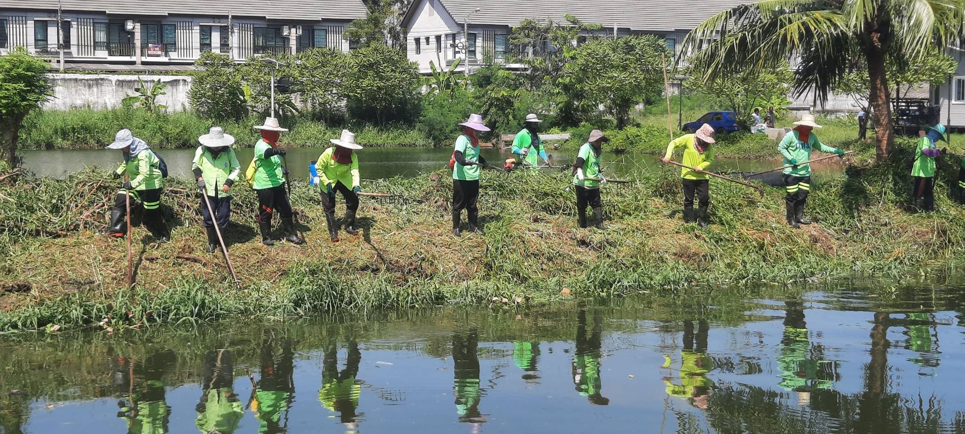 เจ้าหน้าที่ เก็บวัชพืชและขยะคลองปักหลัก ช่วงถนนกาญจนาภิเษก44 เขตประเวศ
