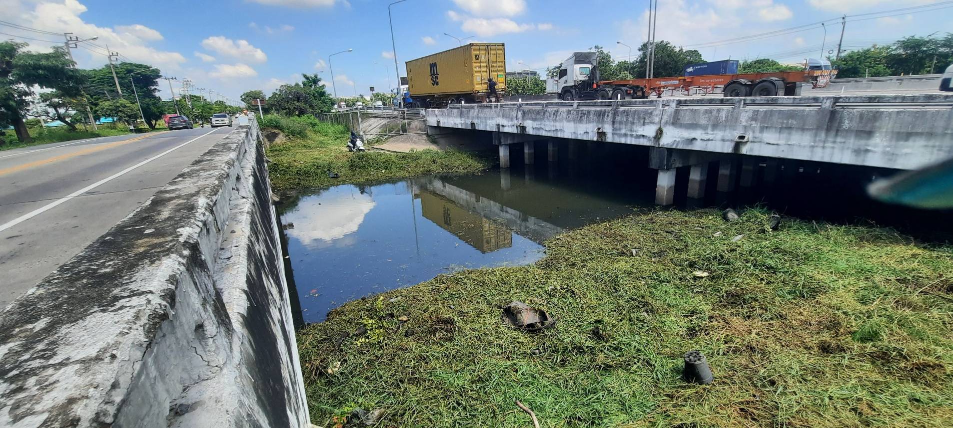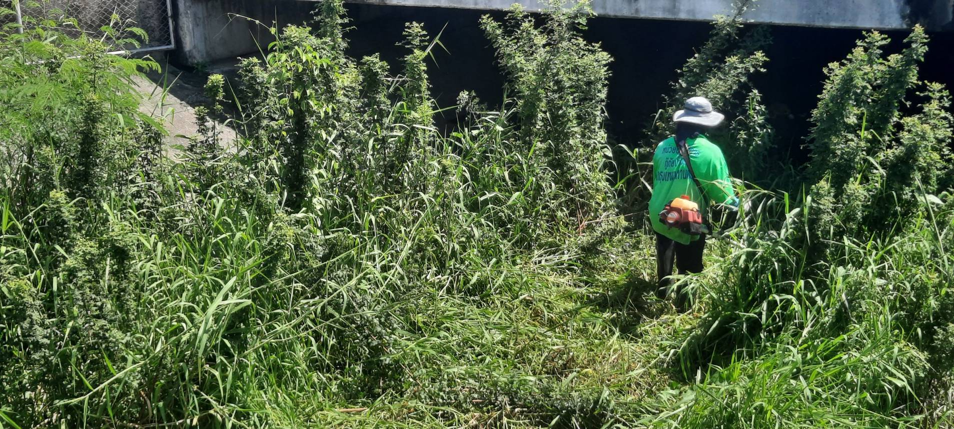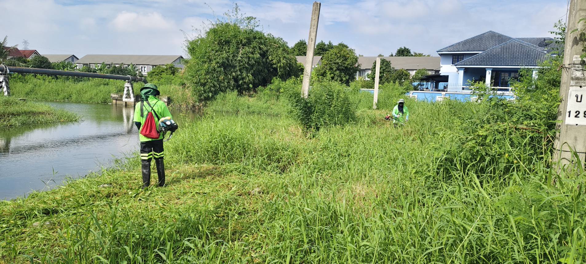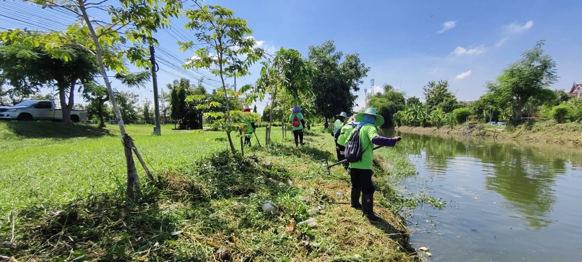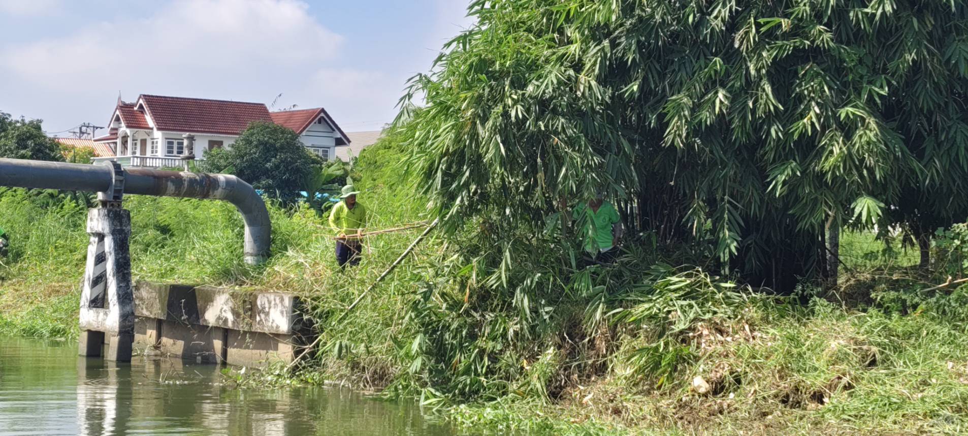 เจ้าหน้าที่ เก็บวัชพืชและขยะคลองปักหลัก ช่วงถนนกาญจนาภิเษก44 เขตประเวศ