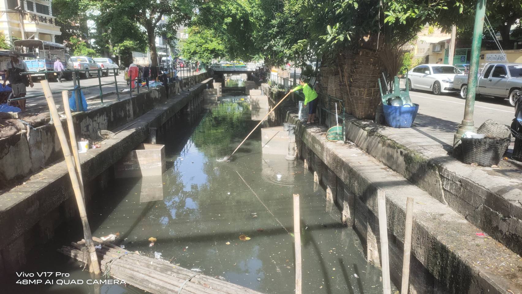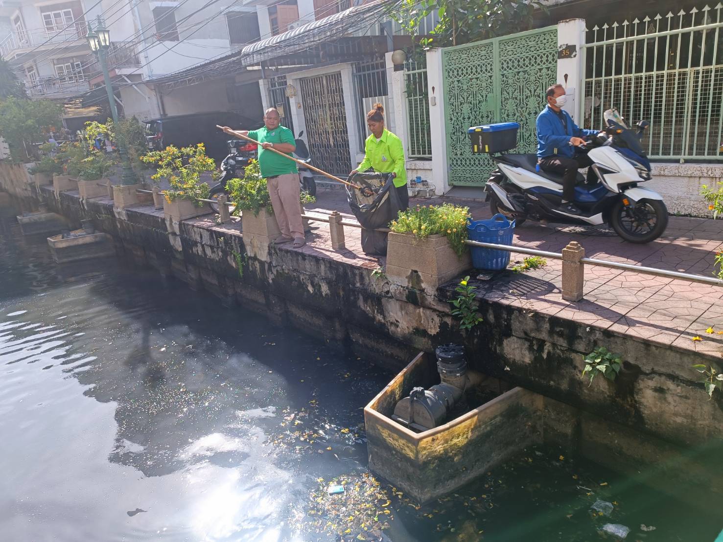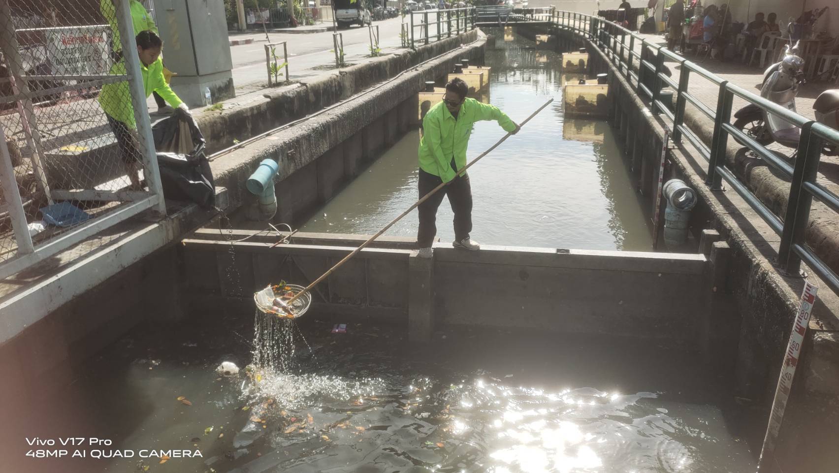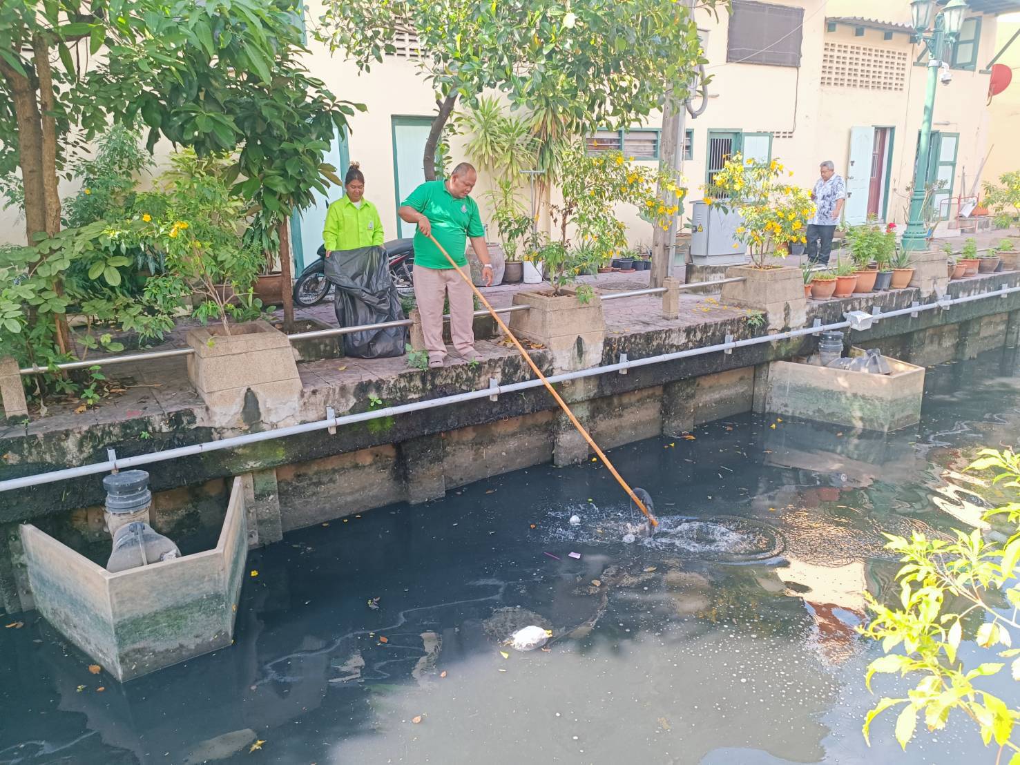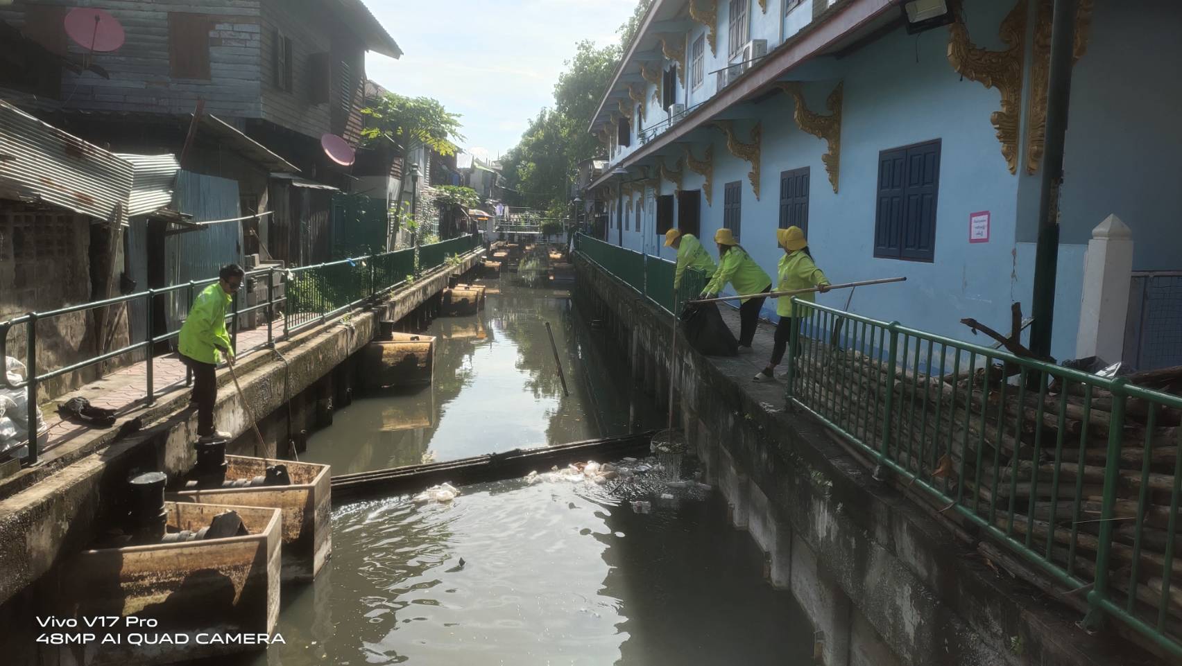 เจ้าหน้าที่ เก็บขยะในคลองคูเมืองเดิม-คลองวัดเทพธิดาราม-คลองวัดราชบพิธ เขตพระนคร น้ำหนักขยะประมาณ0.1ตัน