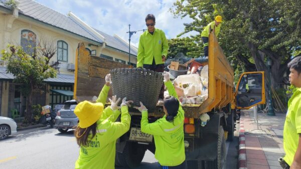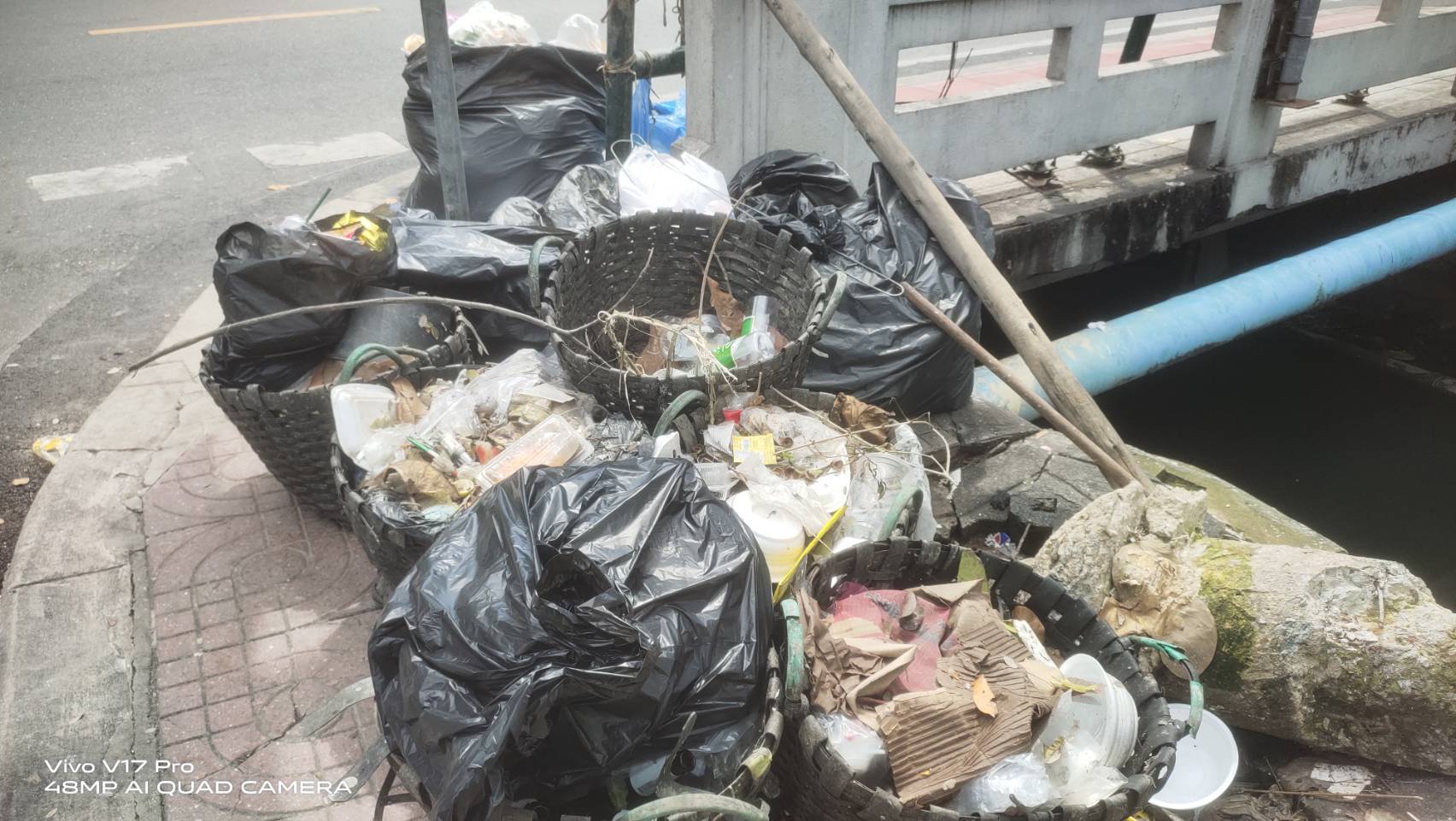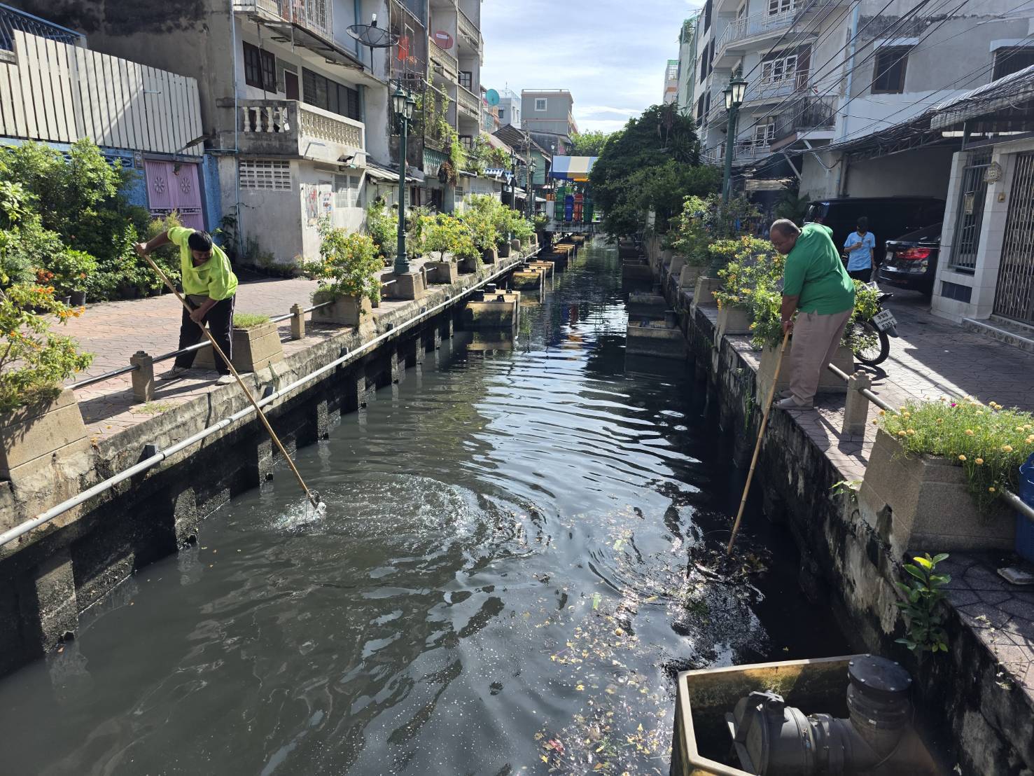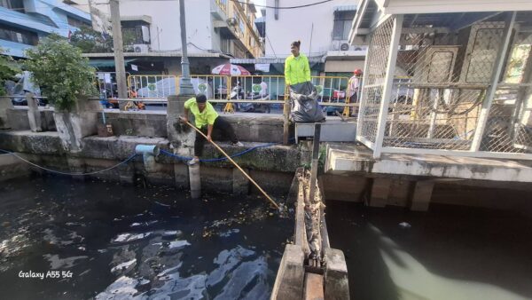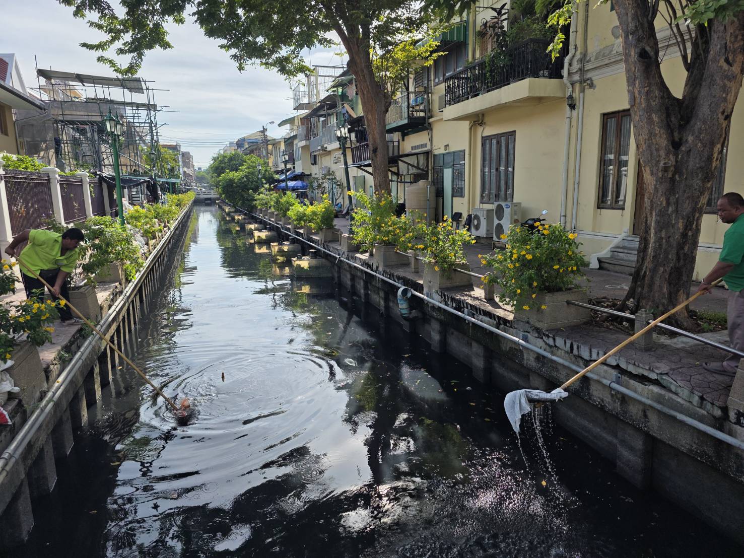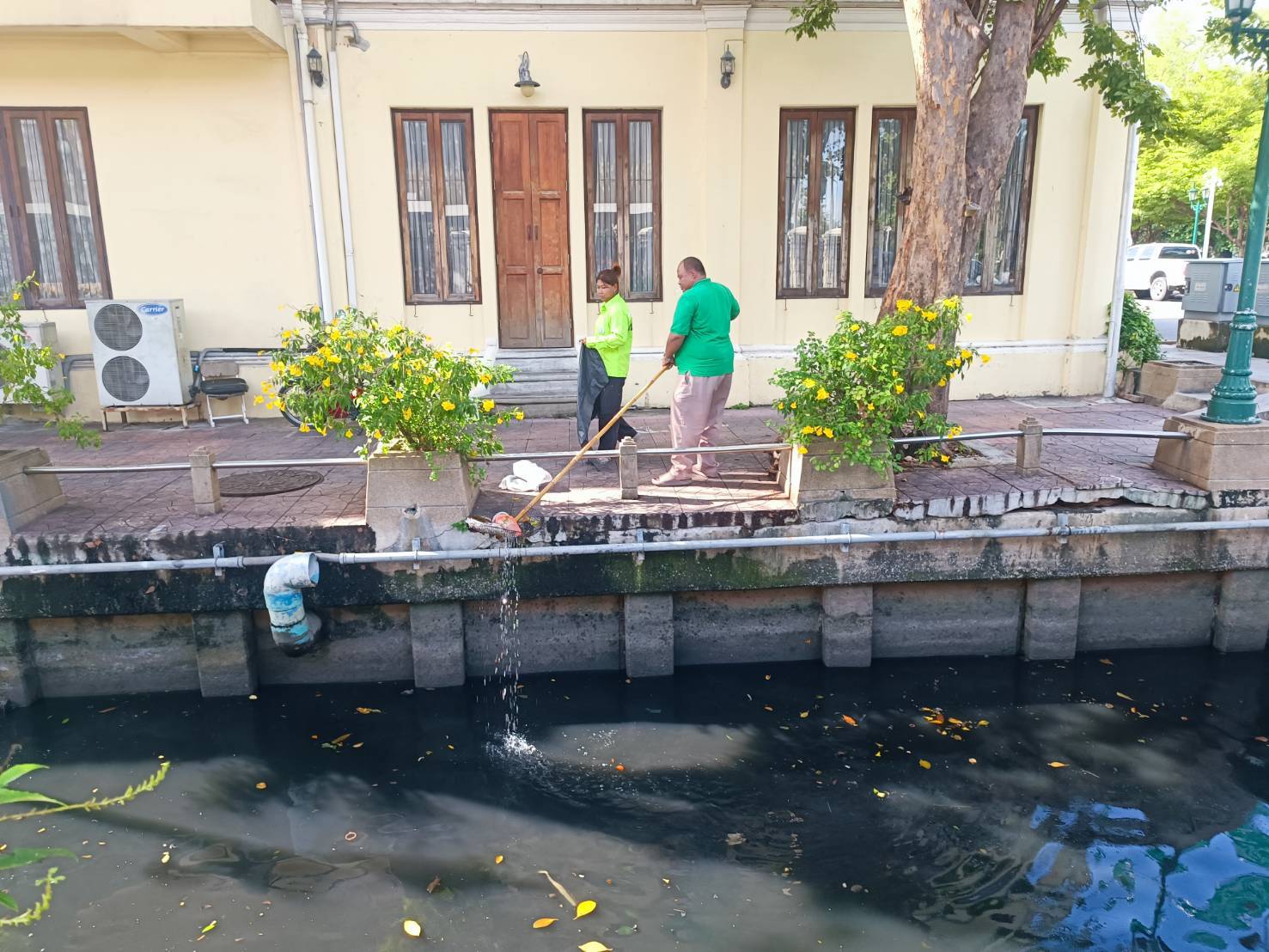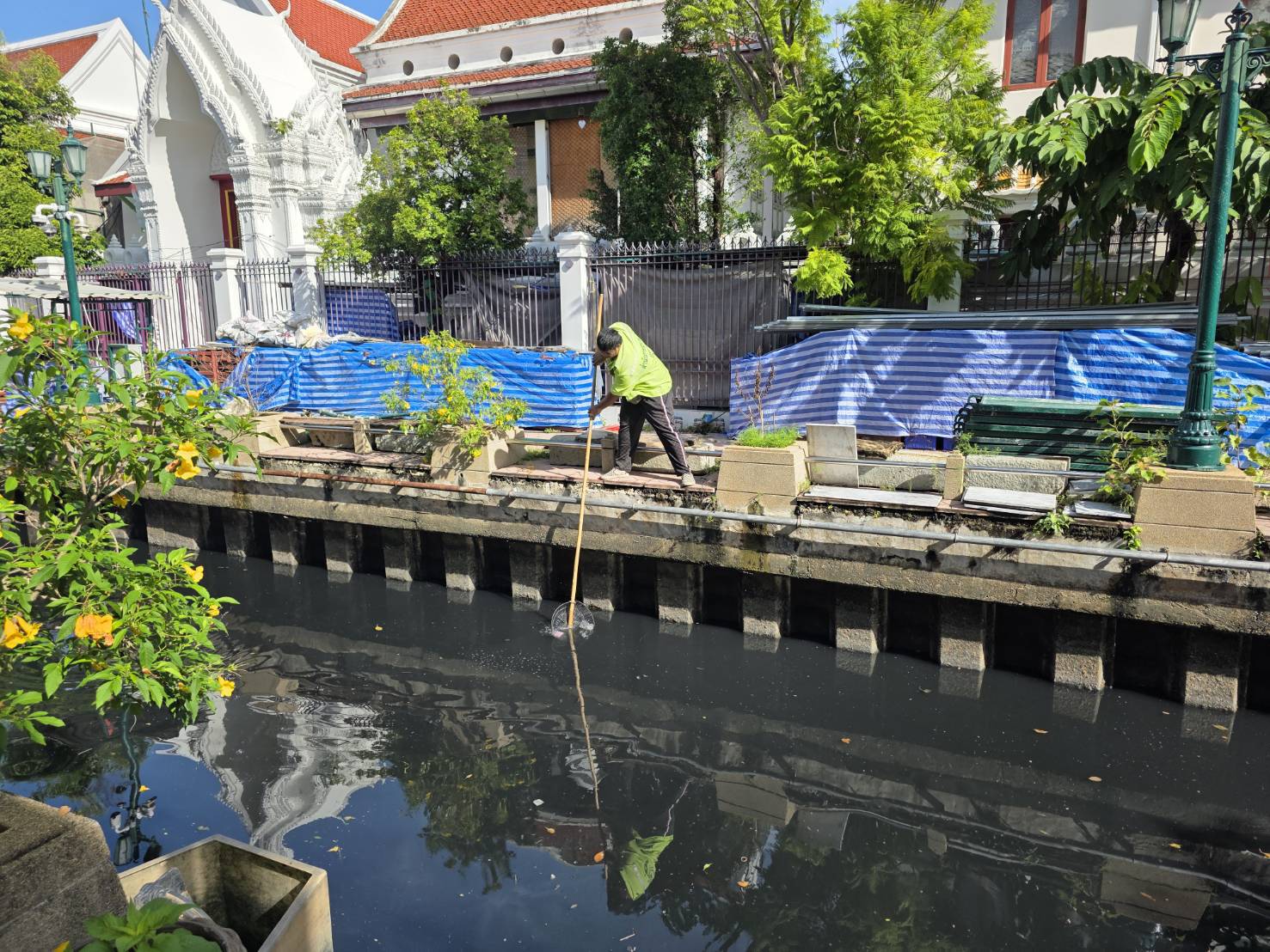 เจ้าหน้าที่ เก็บขยะในคลองคูเมืองเดิม-คลองวัดเทพธิดาราม-คลองวัดราชบพิธ เขตพระนคร น้ำหนักขยะประมาณ0.1ตัน