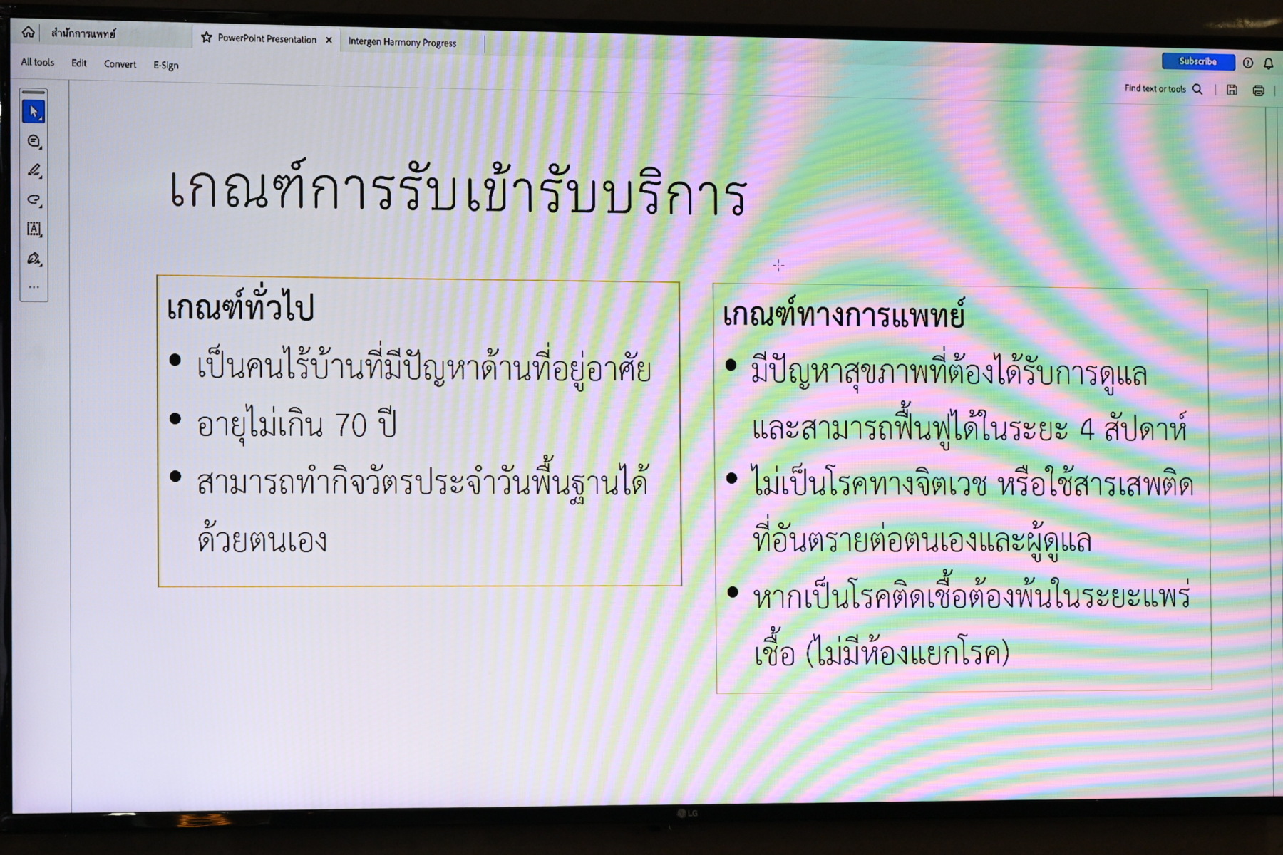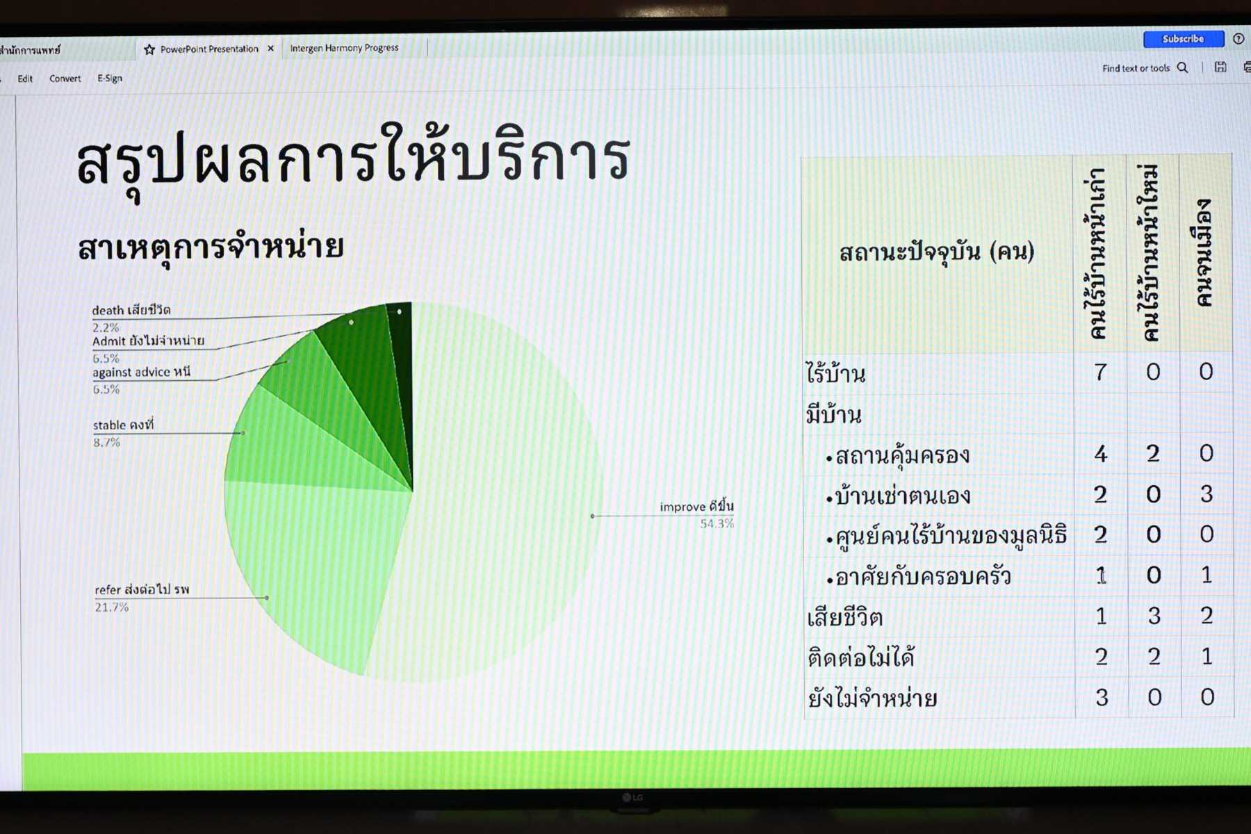 - นโยบายที่พักพิงชั่วคราวทางการแพทย์สำหรับคนไร้บ้าน ให้คนไร้บ้านเข้าถึงบริการสุขภาพและความเป็นธรรมด้านสุขภาพ โดยทีมสุขภาวะข้างถนน ซึ่งแนวคิดของบ้านพักพิงชั่วคราวทางการแพทย์สำหรับคนไร้บ้าน คือ บ้านพักระยะสั้นสำหรับผู้ป่วยในระยะเฉียบพลันหรือระยะกลาง (ระยะพักฟื้น) ที่ยังต้องได้รับการดูแลต่อและไม่สามารถอยู่ในพื้นที่สาธารณะหรือบ้านพักฉุกเฉินได้ แต่ไม่จำเป็นต้องรักษาในโรงพยาบาล ซึ่งปัจจุบันให้บริการแล้วจำนวน 4 เตียง รวมถึงมีการหารือถึงโมเดลและขั้นตอนที่ชัดเจนการดูแลสุขภาพในบ้านอิ่มใจเพิ่มเติม เช่น จัดตั้งห้องพยาบาลหรือมีบุคลากรทางการแพทย์คัดกรองและดูแลผู้เข้าพัก