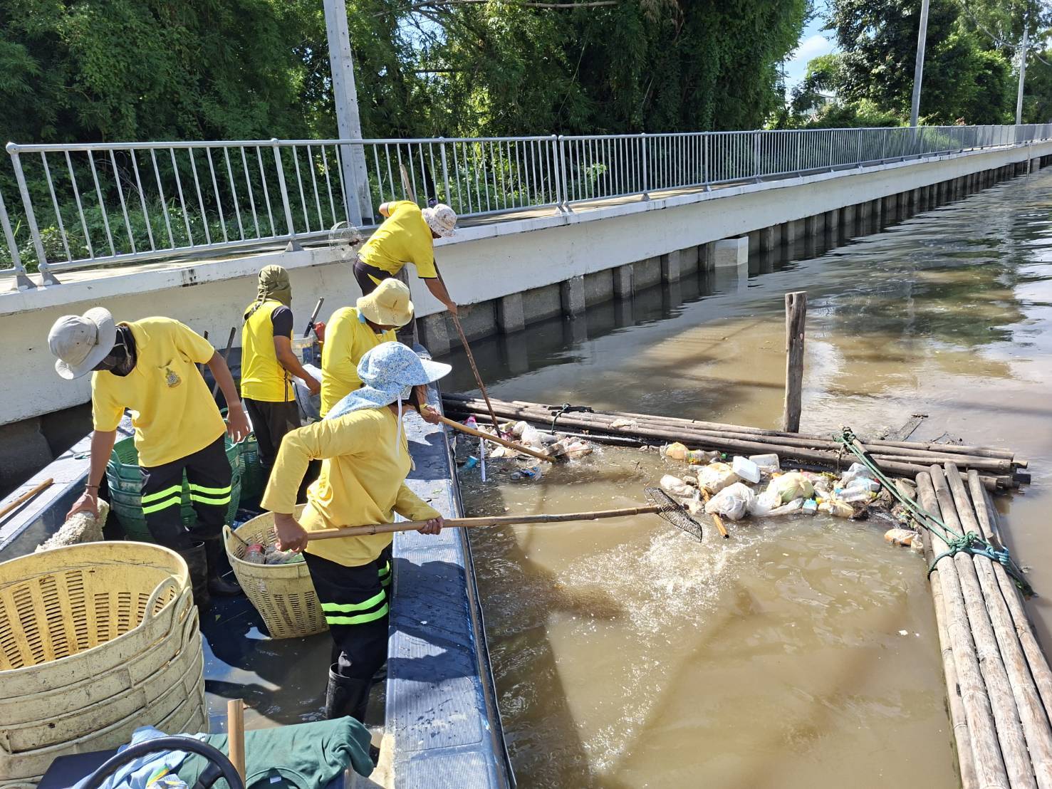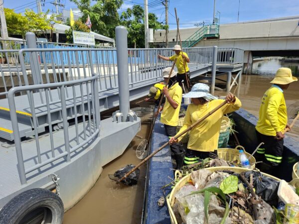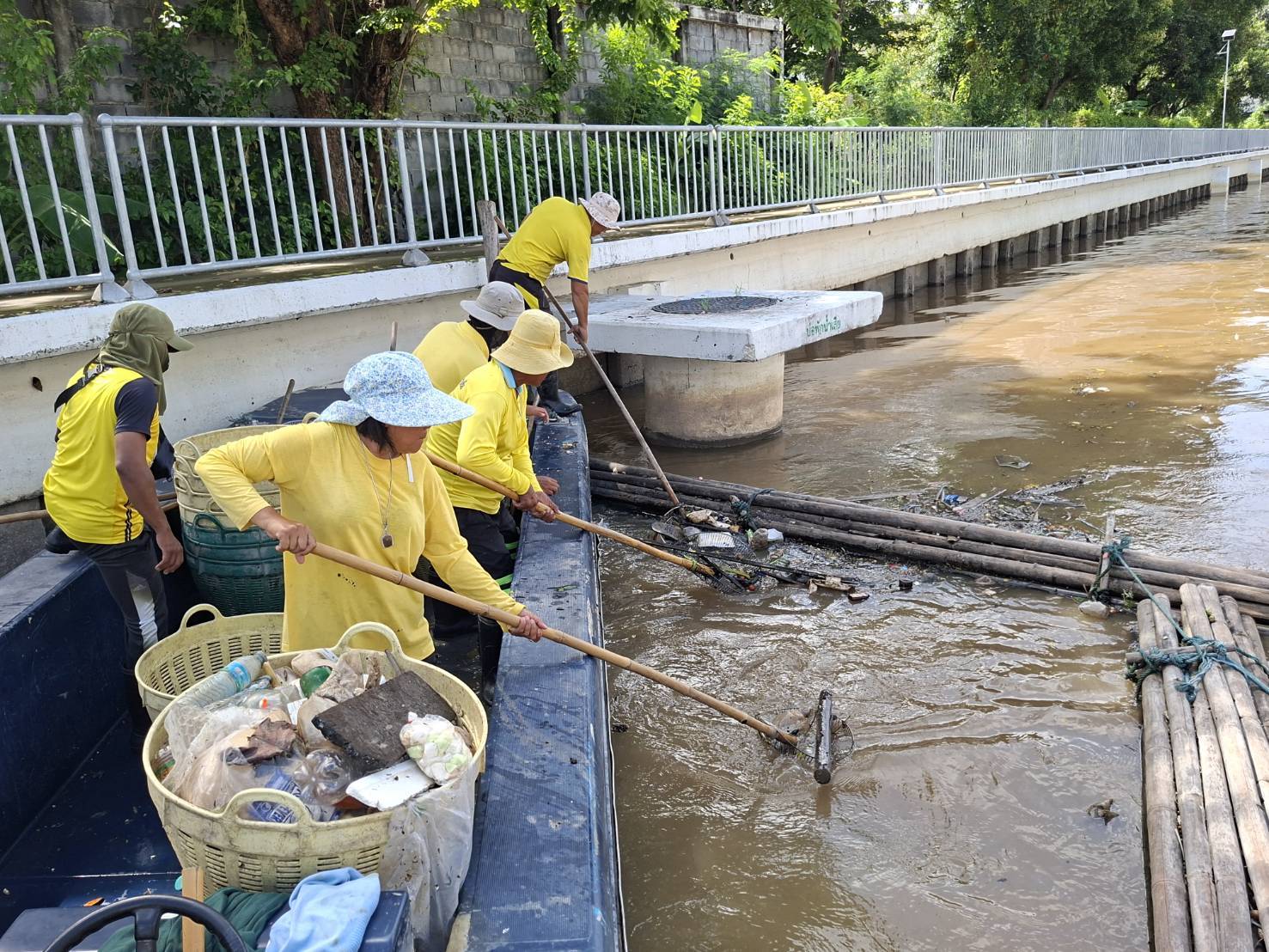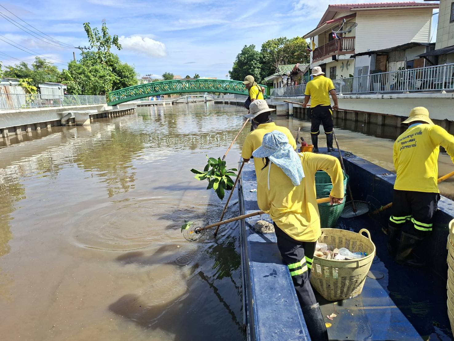 เจ้าหน้าที่ เก็บขยะและวัชพืชคลองเปรมประชากรช่วงชุมชนตึกแดงบางซื่อเขตบางซื่อถึงสะพานงามวงศ์วานเขตจตุจักร ปริมาณขยะ 0.5ตัน
