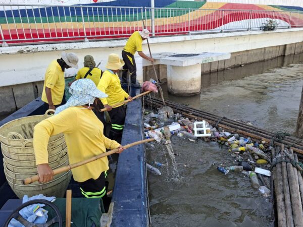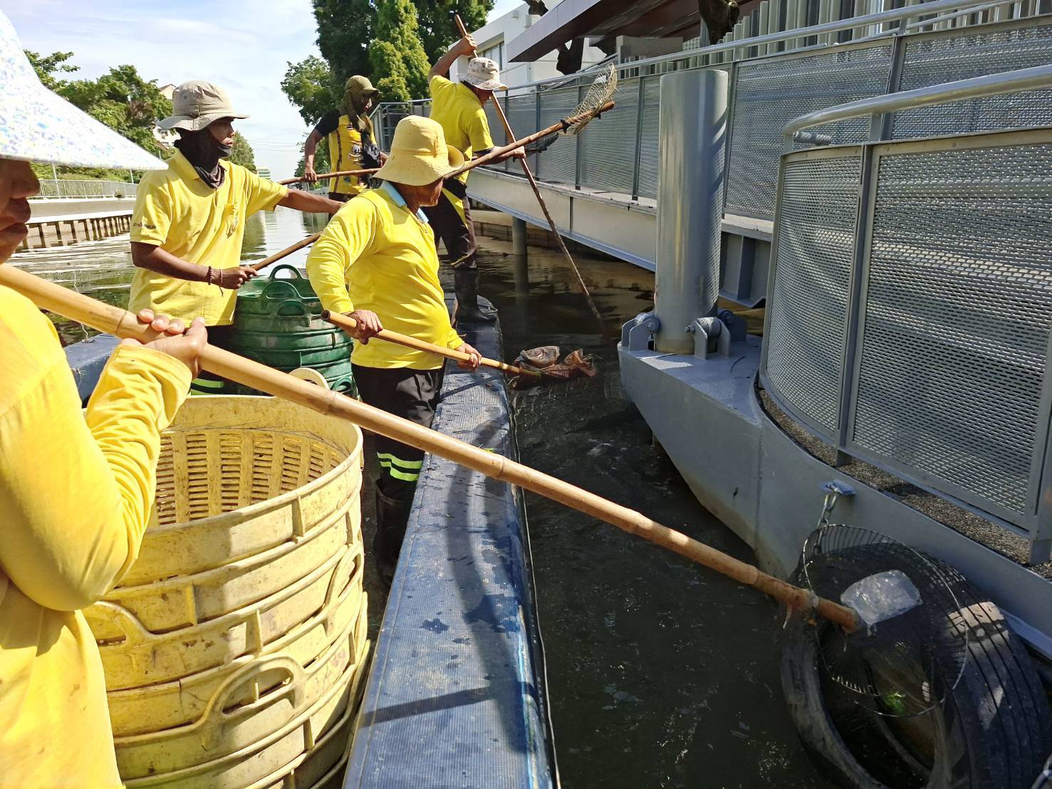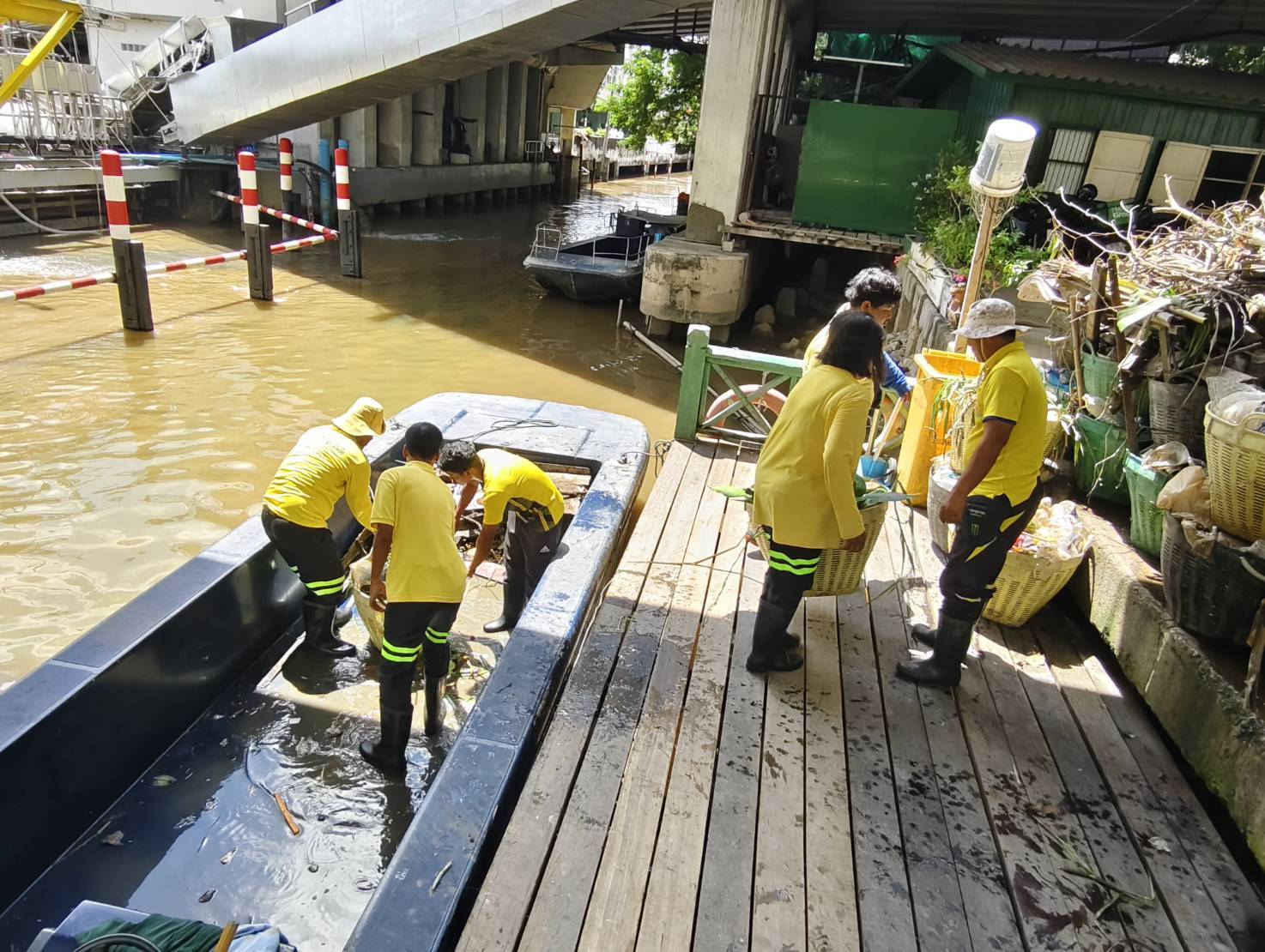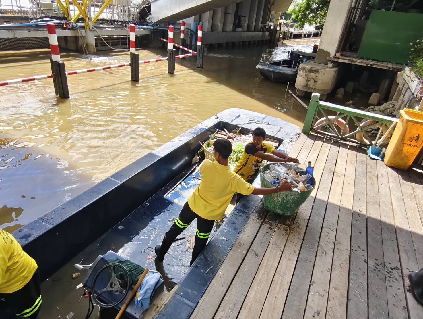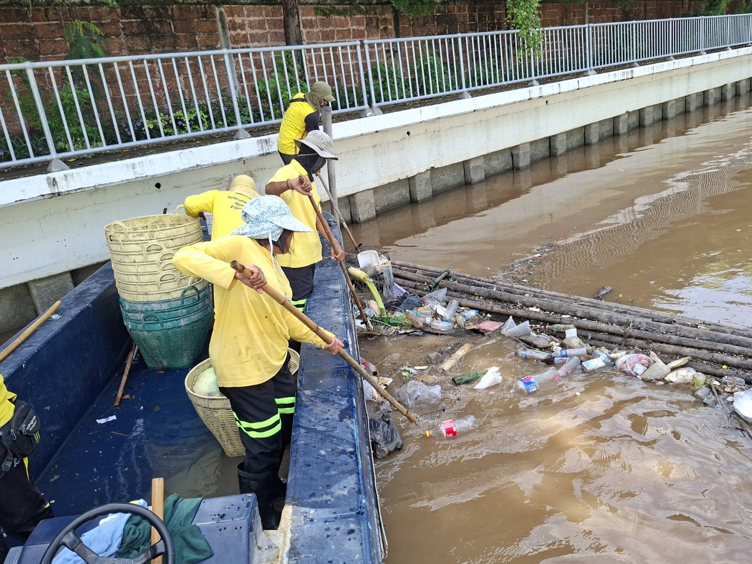 เจ้าหน้าที่ เก็บขยะและวัชพืชคลองเปรมประชากรช่วงชุมชนตึกแดงบางซื่อเขตบางซื่อถึงสะพานงามวงศ์วานเขตจตุจักร ปริมาณขยะ 0.5ตัน