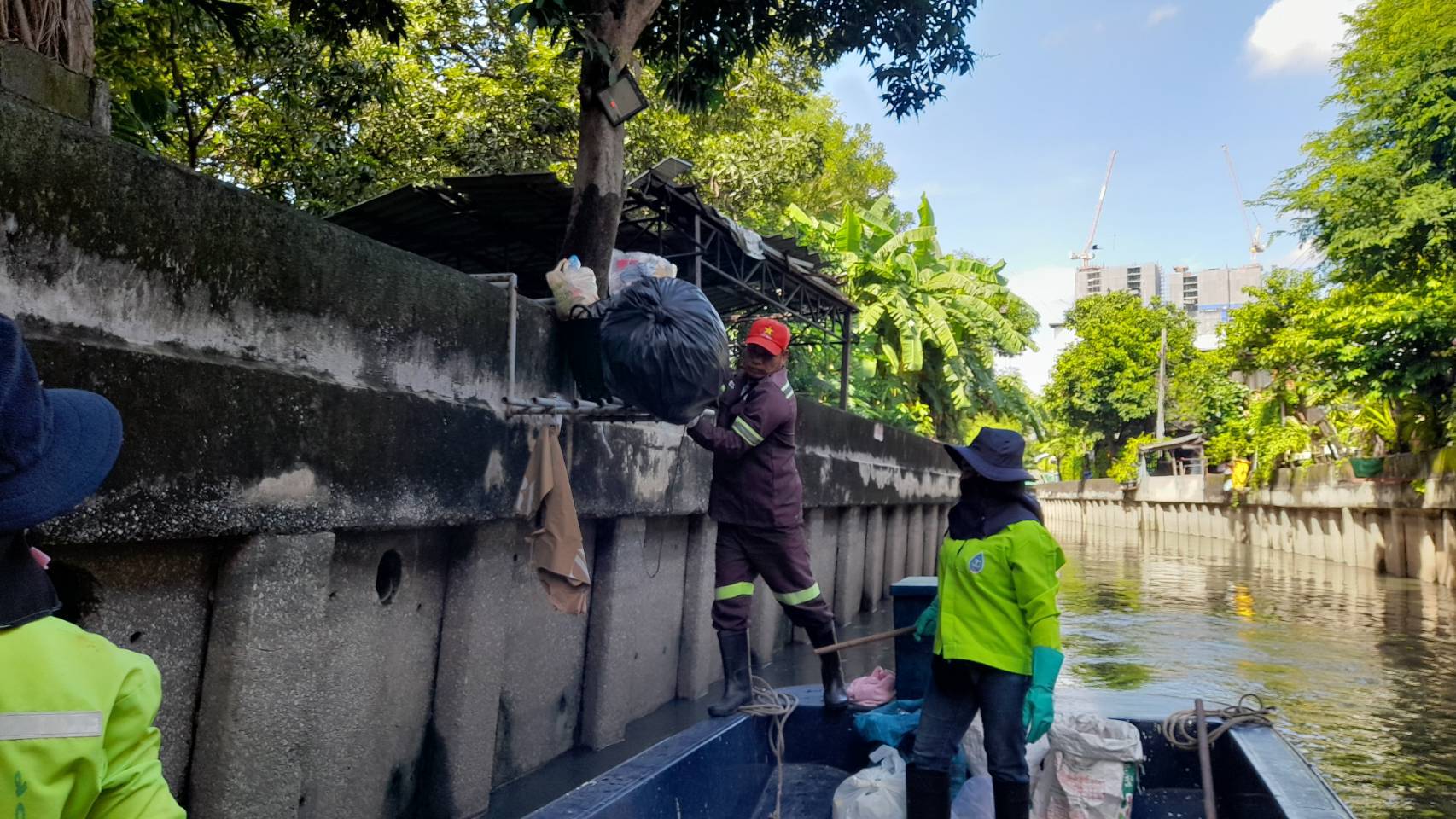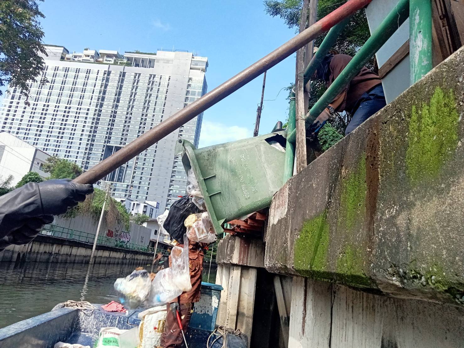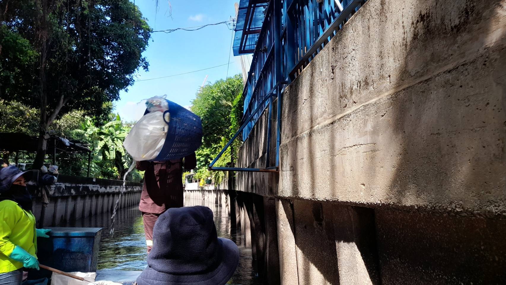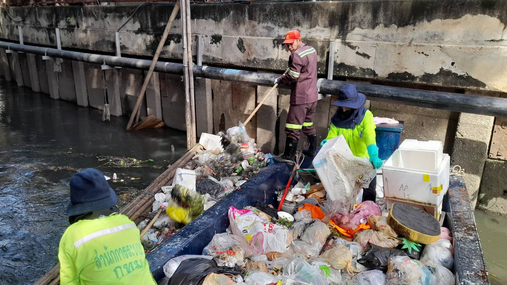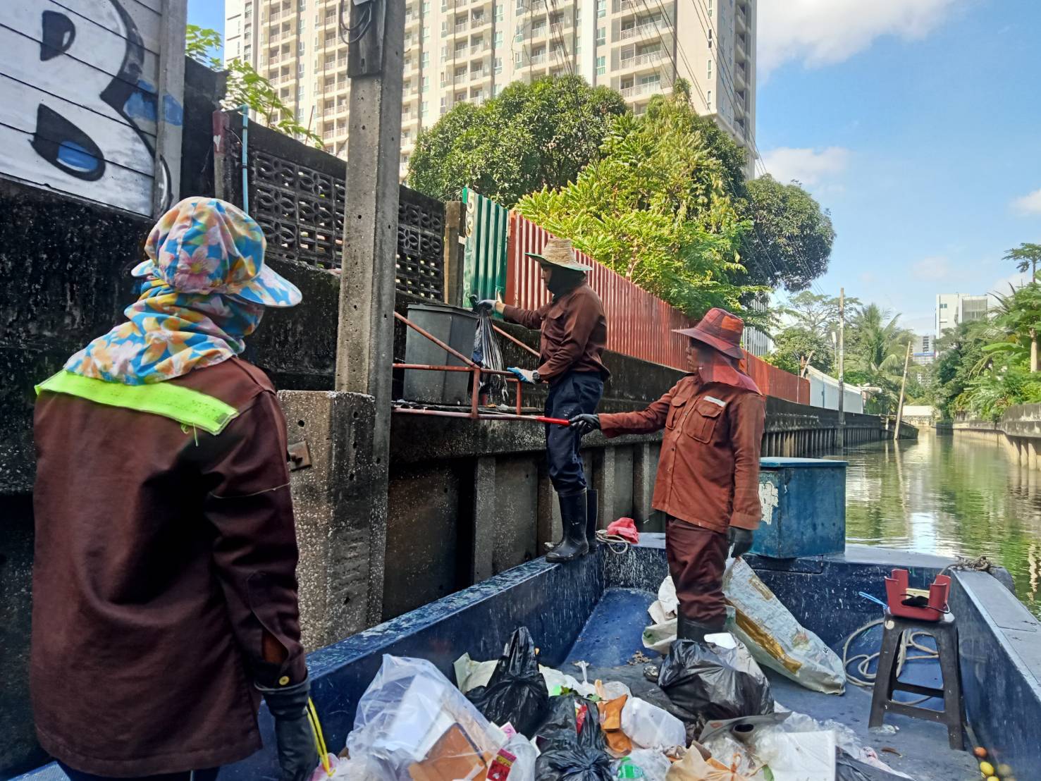 เจ้าหน้าที่ เก็บขยะแนวสันเขื่อนและตักขยะในคลองสามเสน เขตห้วยขวาง เขตดินแดงและเขตราชเทวี