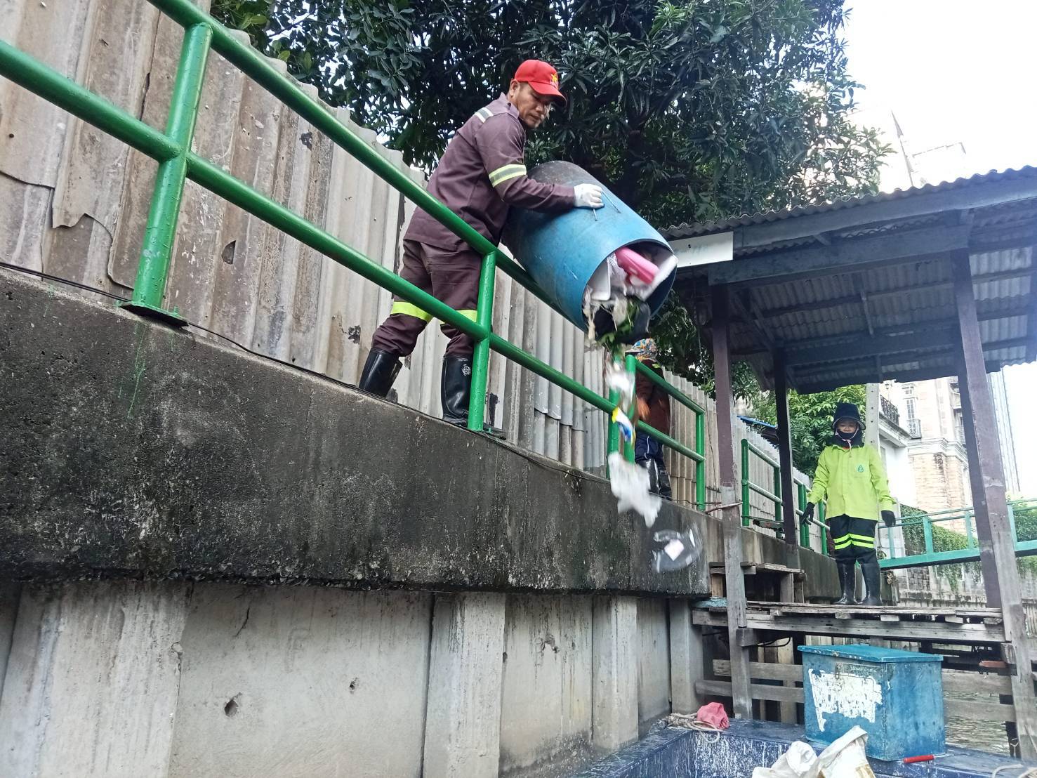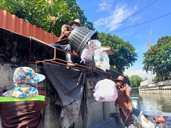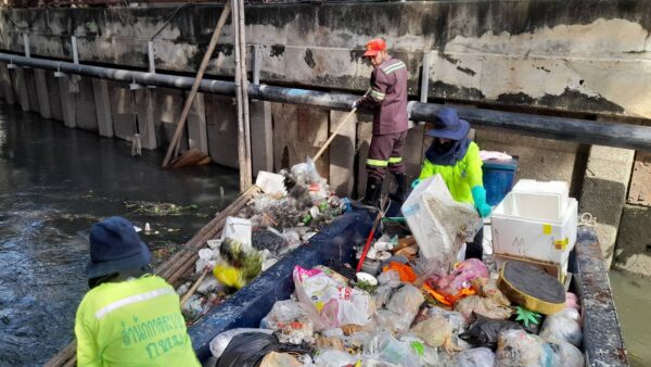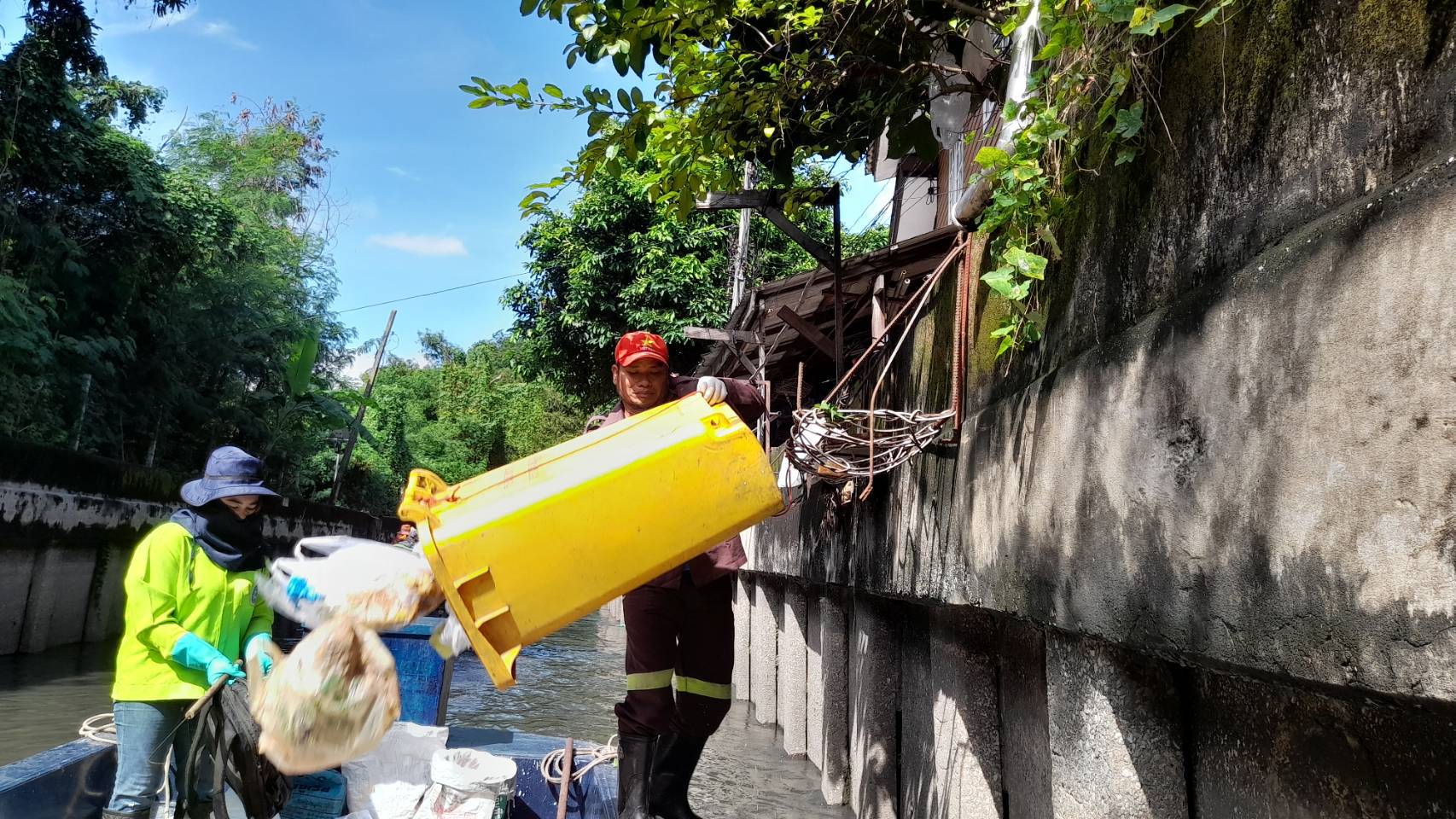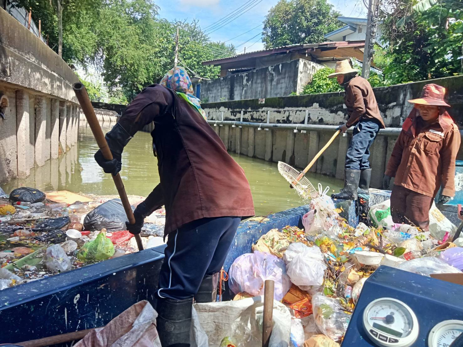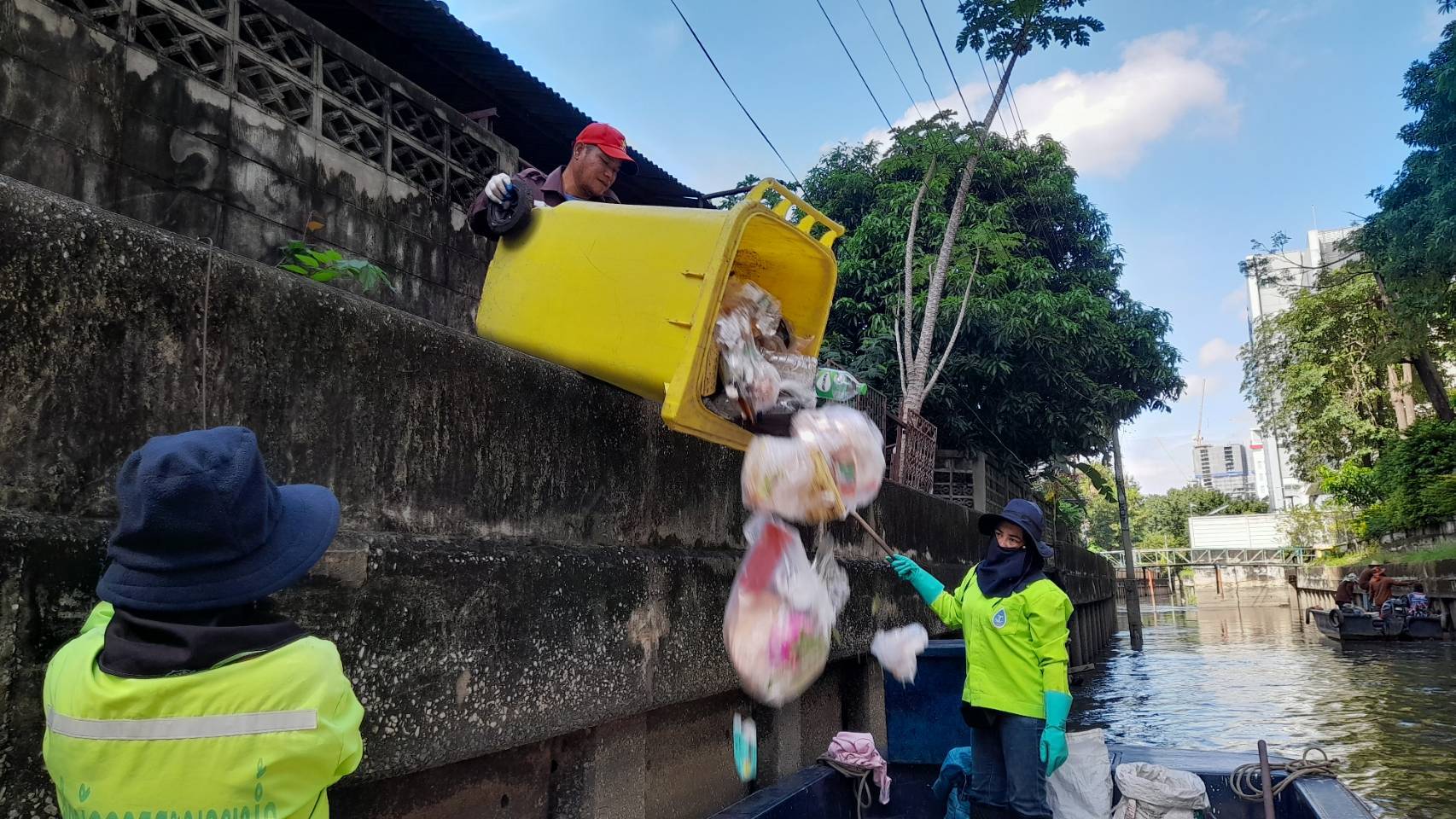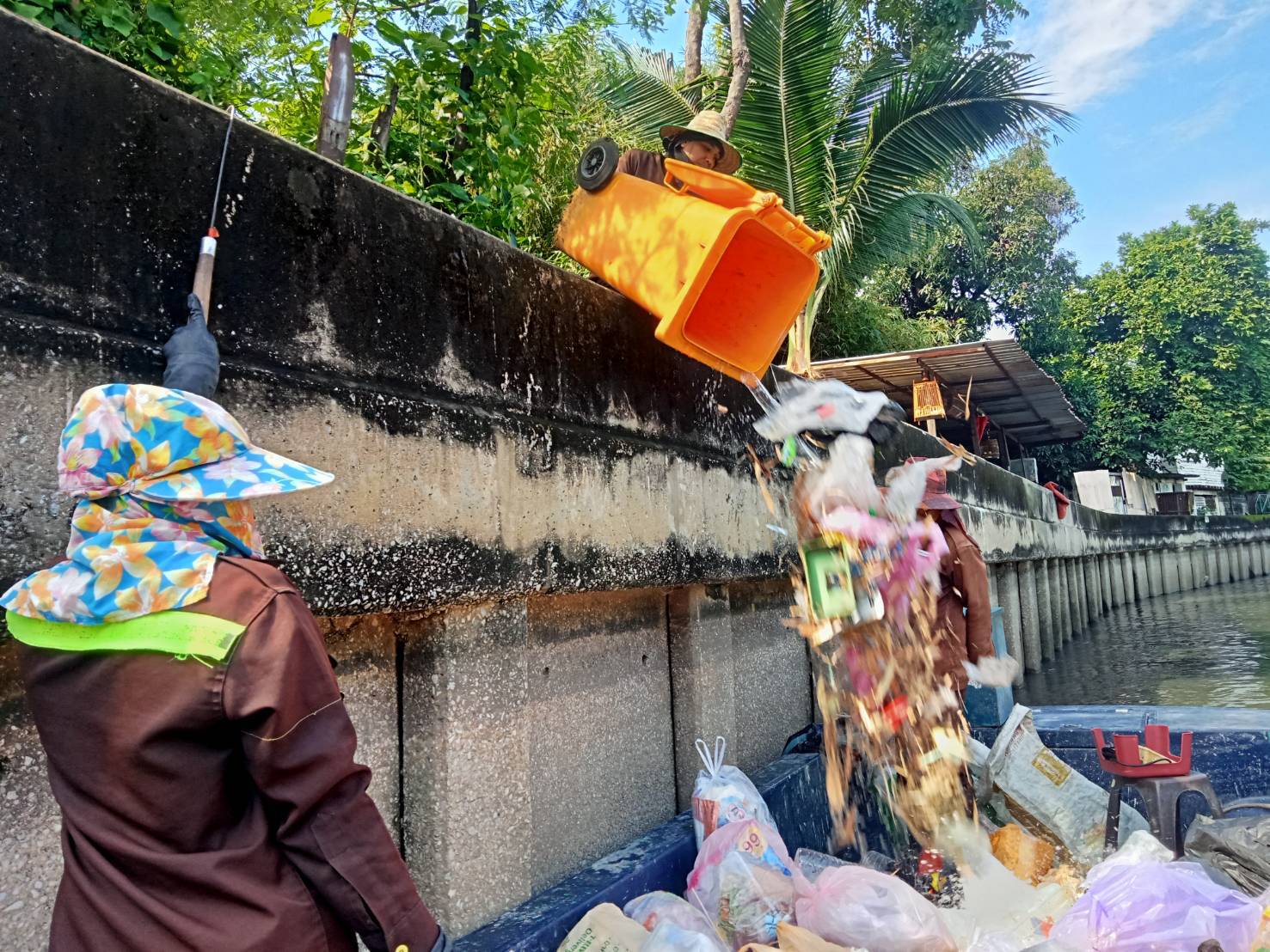เจ้าหน้าที่ เก็บขยะแนวสันเขื่อนและตักขยะในคลองสามเสน เขตห้วยขวาง เขตดินแดงและเขตราชเทวี