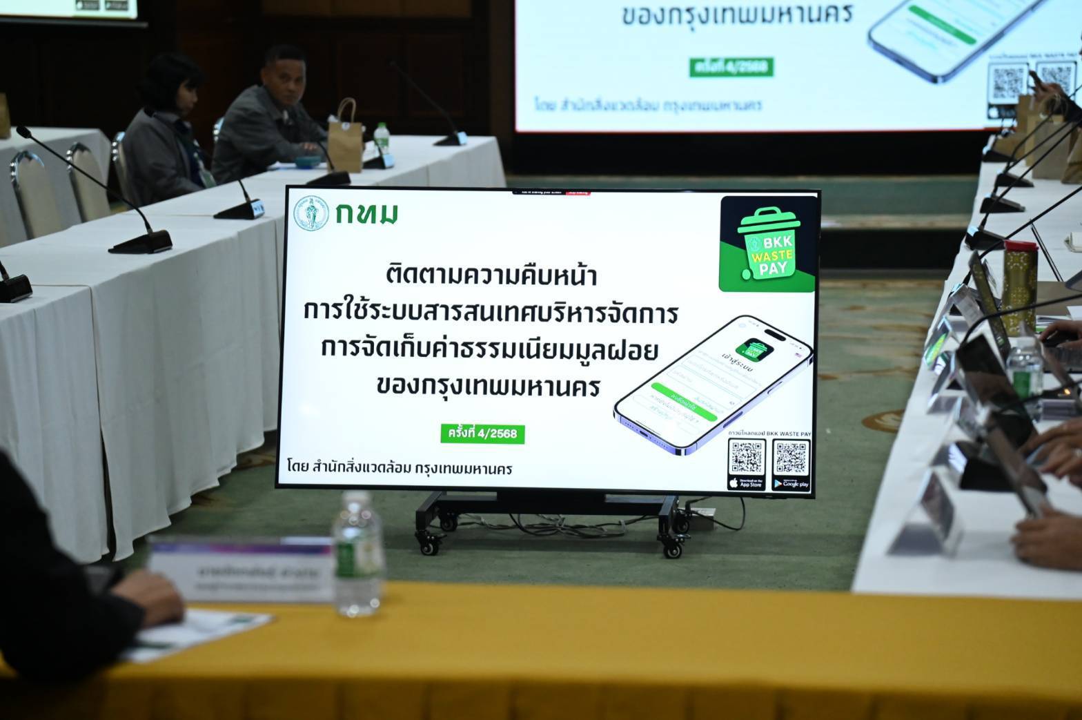 (17 ต.ค. 68) เวลา 09.00 น. นายจักกพันธุ์ ผิวงาม รองผู้ว่าราชการกรุงเทพมหานคร เป็นประธานการประชุมติดตามความคืบหน้าการใช้ระบบสารสนเทศบริหารจัดการการจัดเก็บค่าธรรมเนียมมูลฝอยของกรุงเทพมหานคร ครั้งที่ 4/2568 ภายใต้โครงการบ้านนี้ไม่เทรวม : แยกขยะลดค่าธรรมเนียม ตามข้อบัญญัติกรุงเทพมหานคร เรื่อง ค่าธรรมเนียมการให้บริการในการจัดการสิ่งปฏิกูลหรือมูลฝอยตามกฎหมายว่าด้วยการสาธารณสุข พ.ศ. 2568 ซึ่งมีผลบังคับใช้แล้ว เมื่อวันที่ 1 ตุลาคม 2568